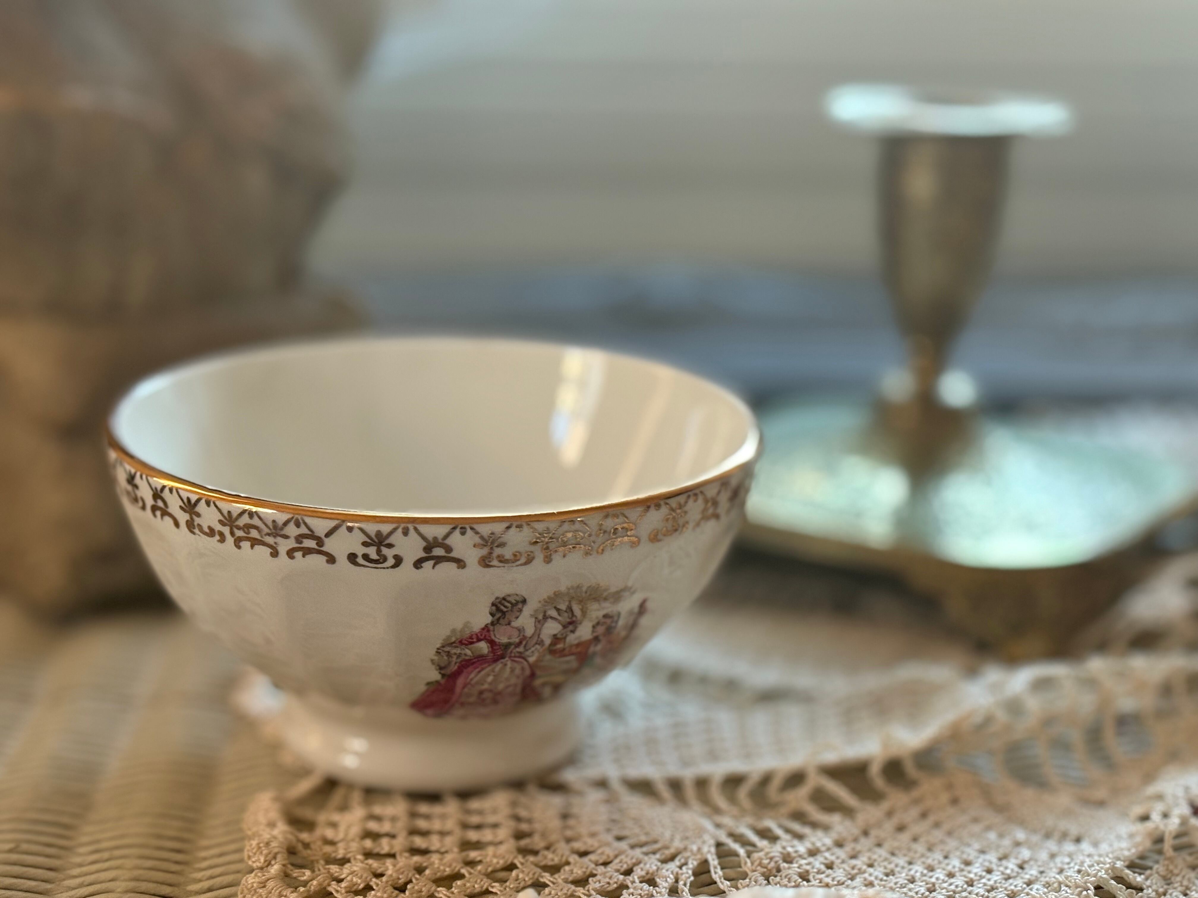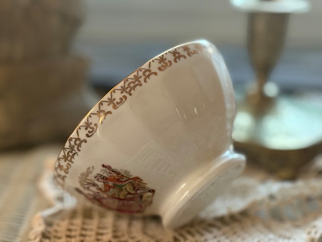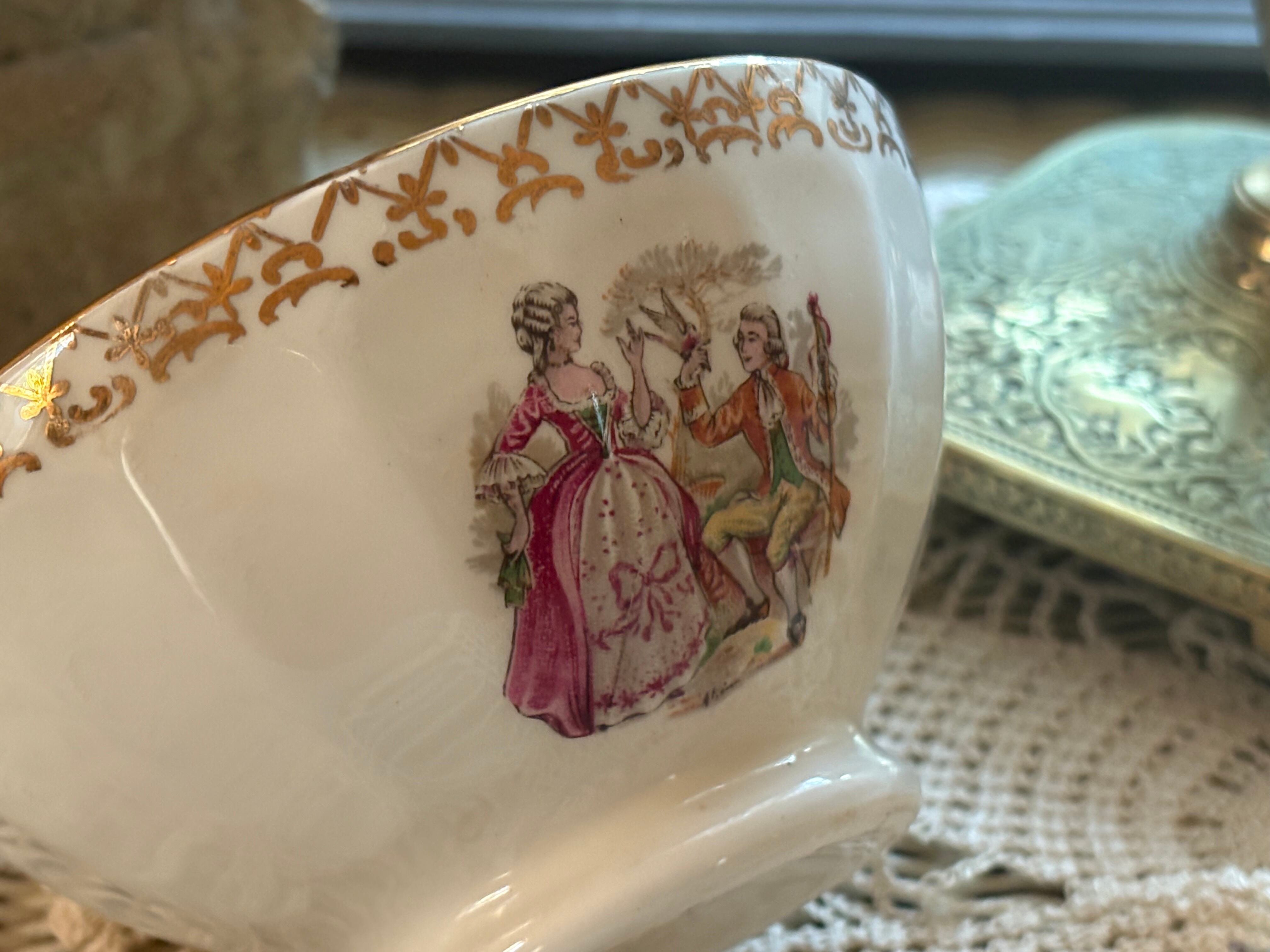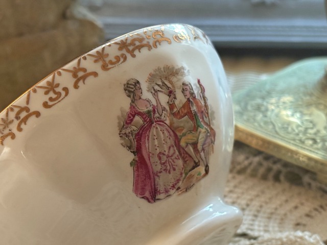 フランスアンティーク カフェオレボウル 貴族柄 カップル画 金彩 テーブルウェア インテリア フラワーベース 撮影小物