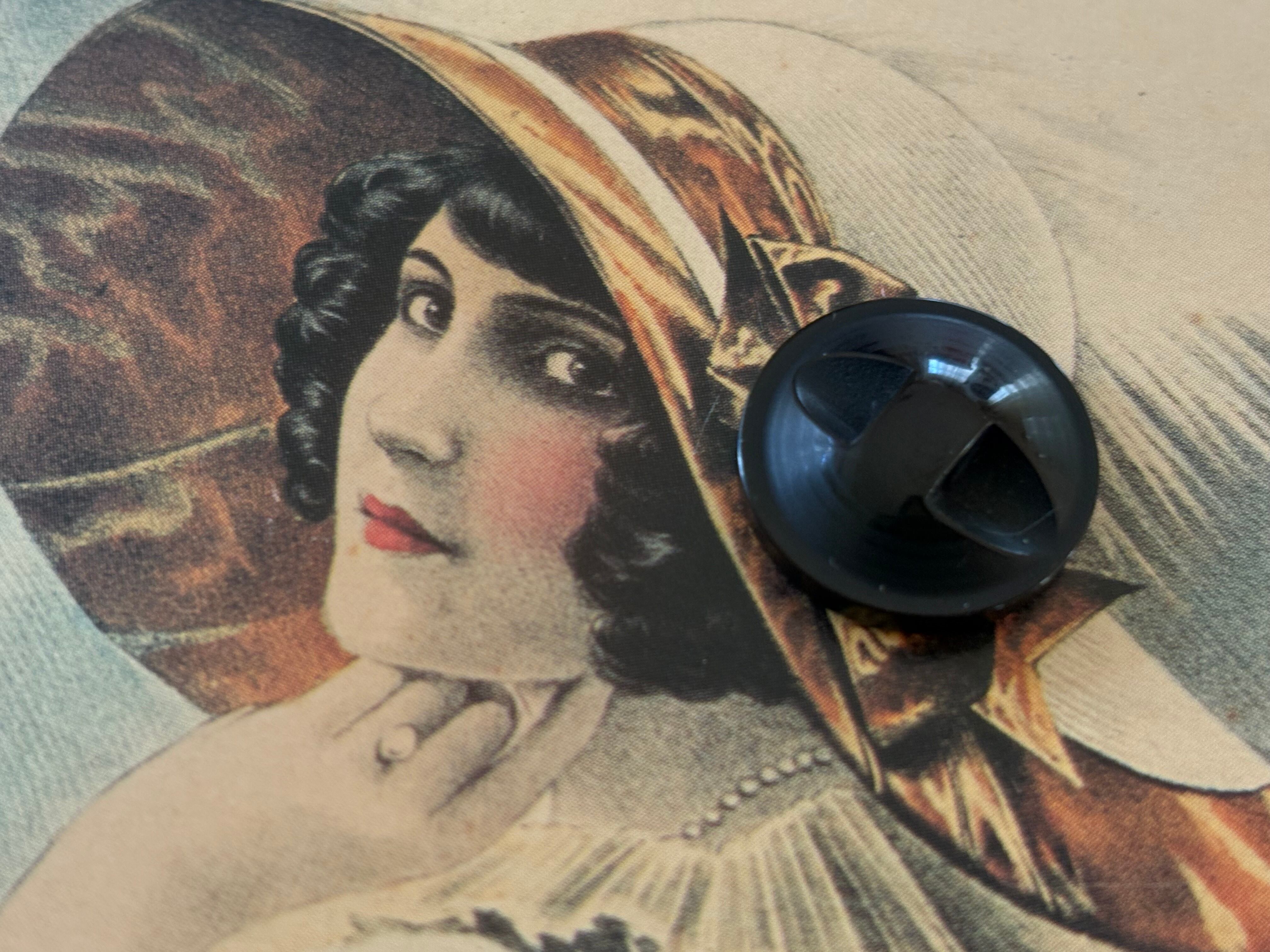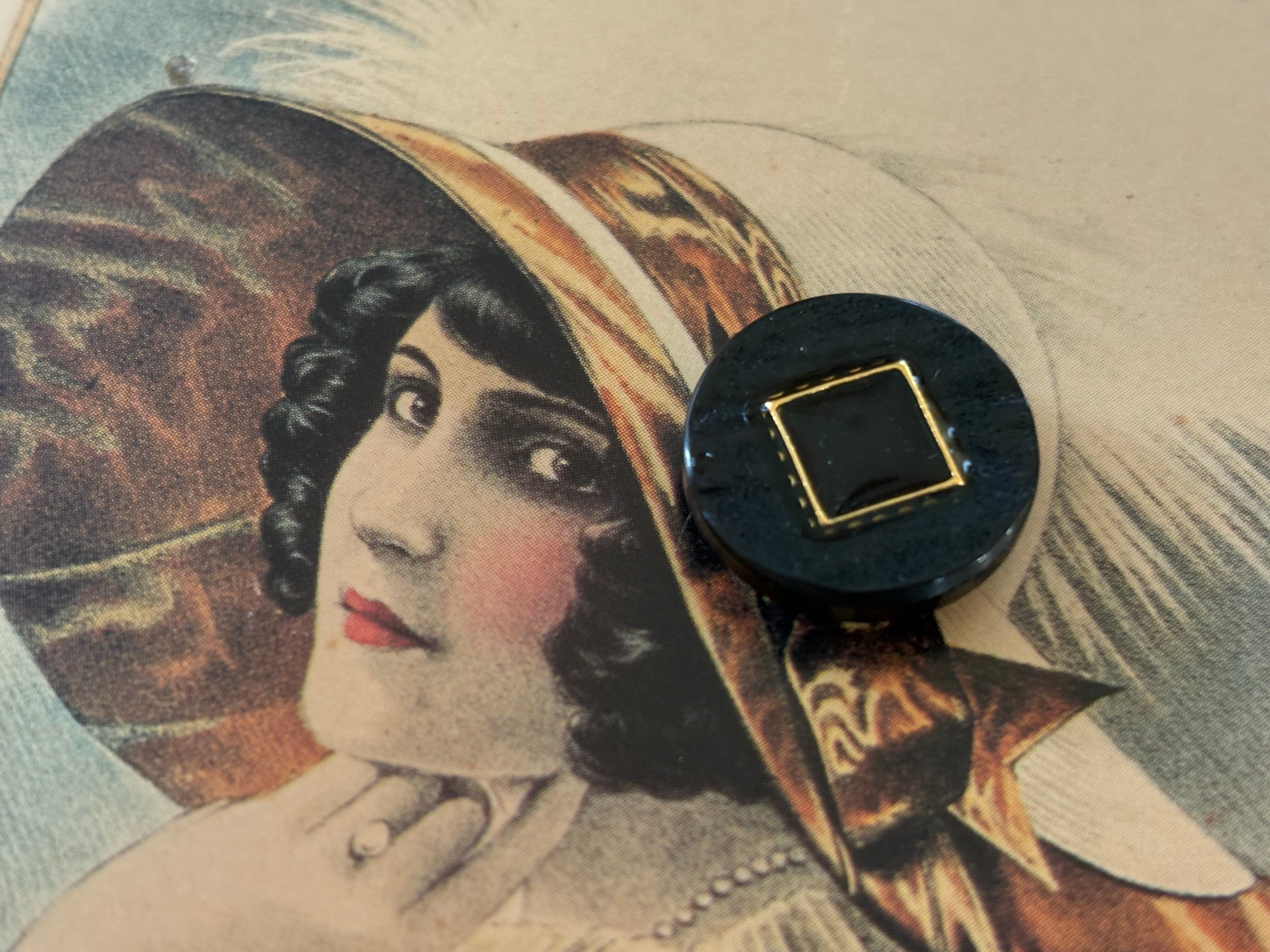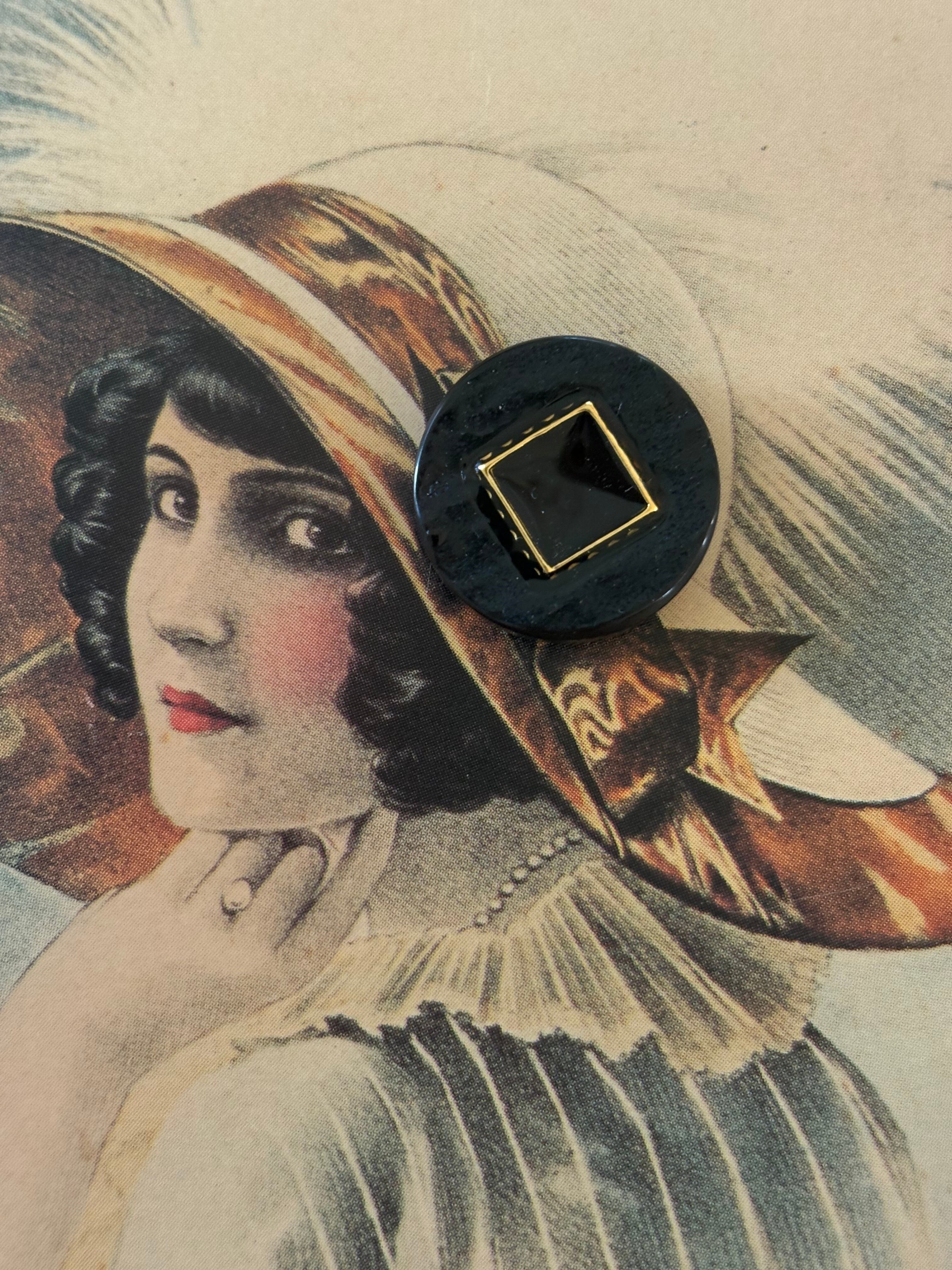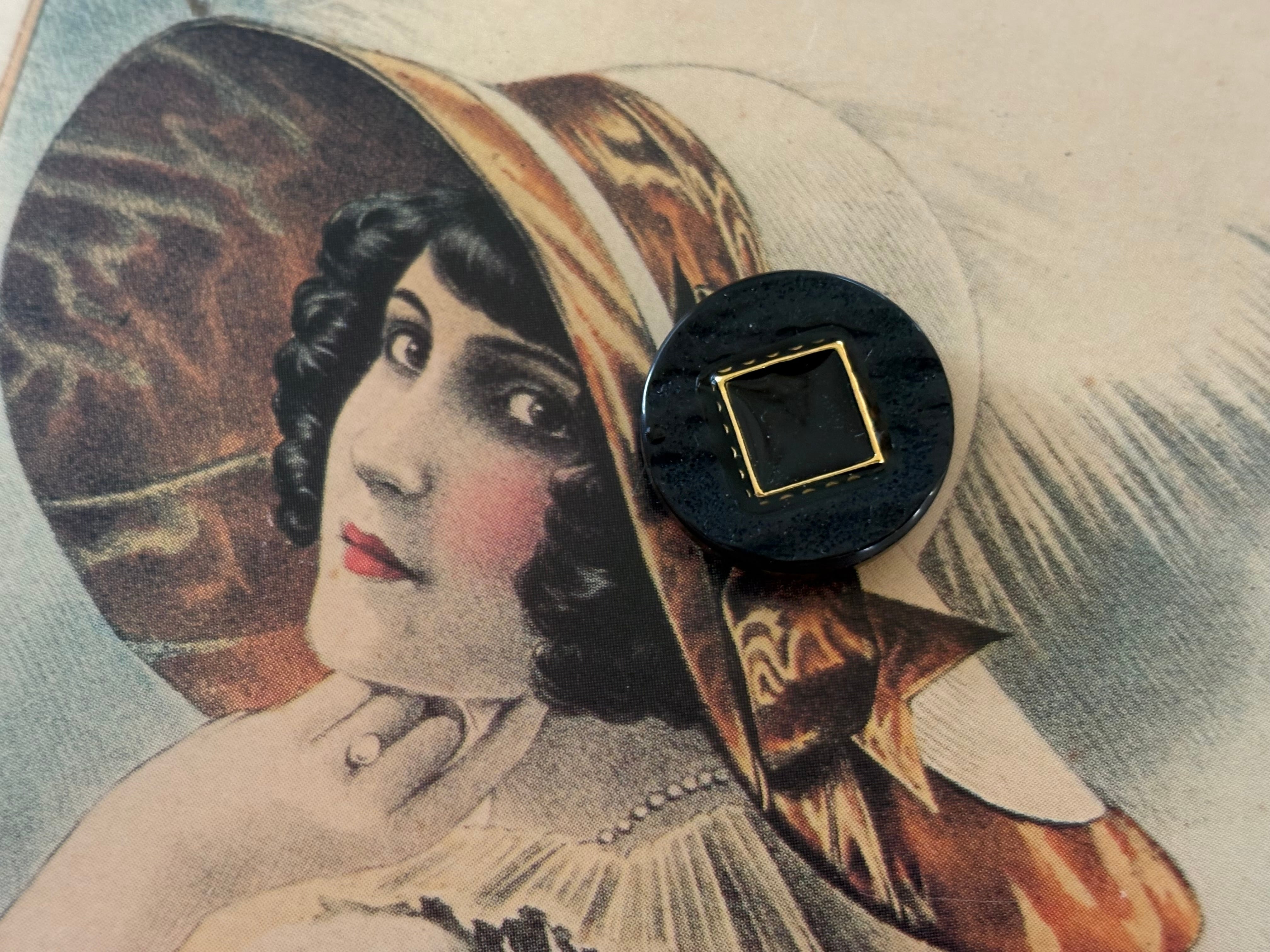 シックに美しく輝くブラックカラーのレトロボタンです。
