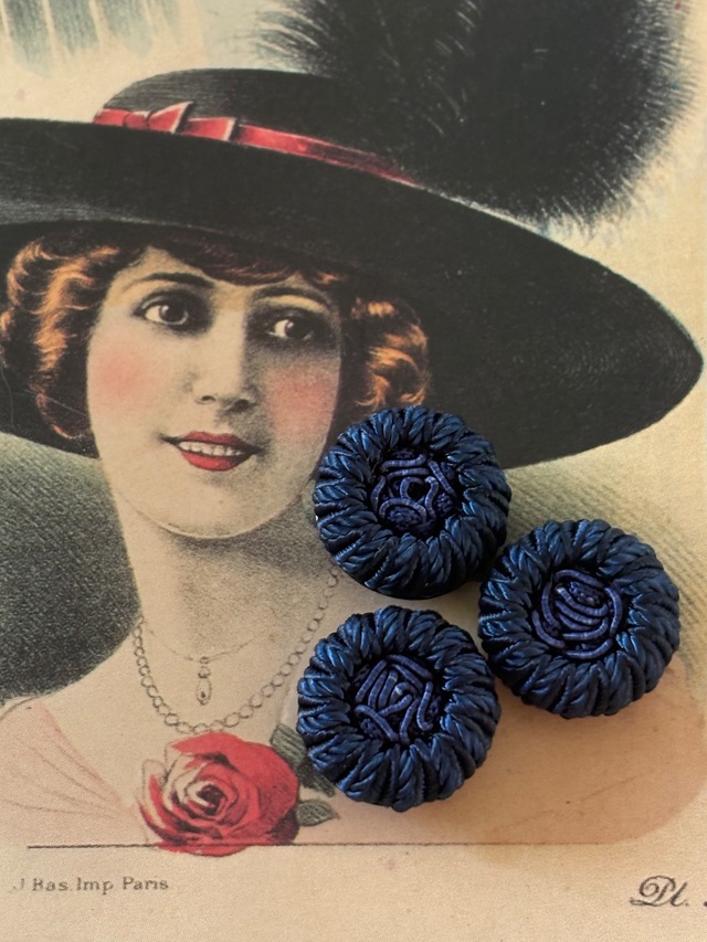 Japanese Vintage ボタン 17mm button コードボタン ネイビー デッドストック アクセサリーパーツ 装飾材 カルトナージュ