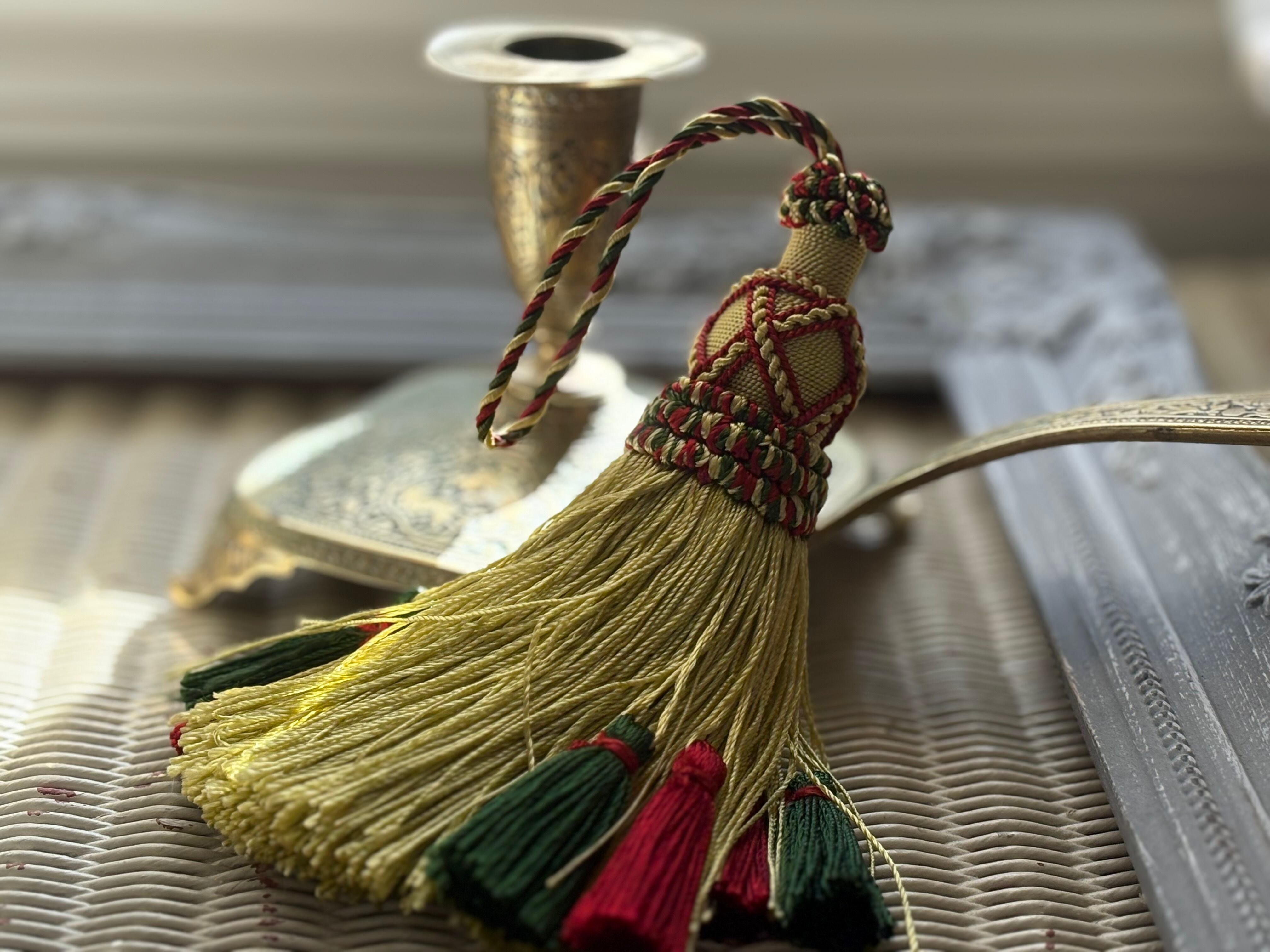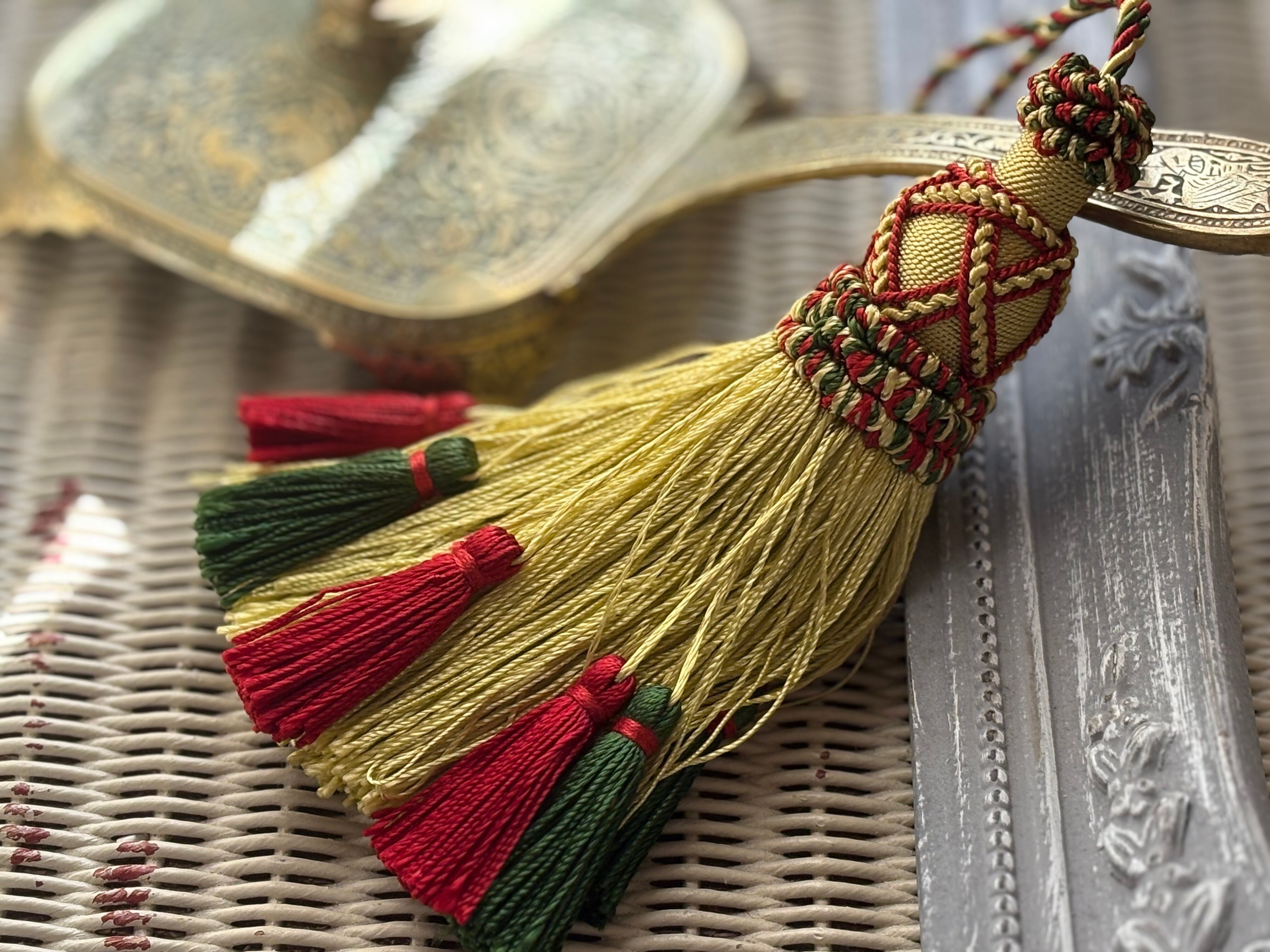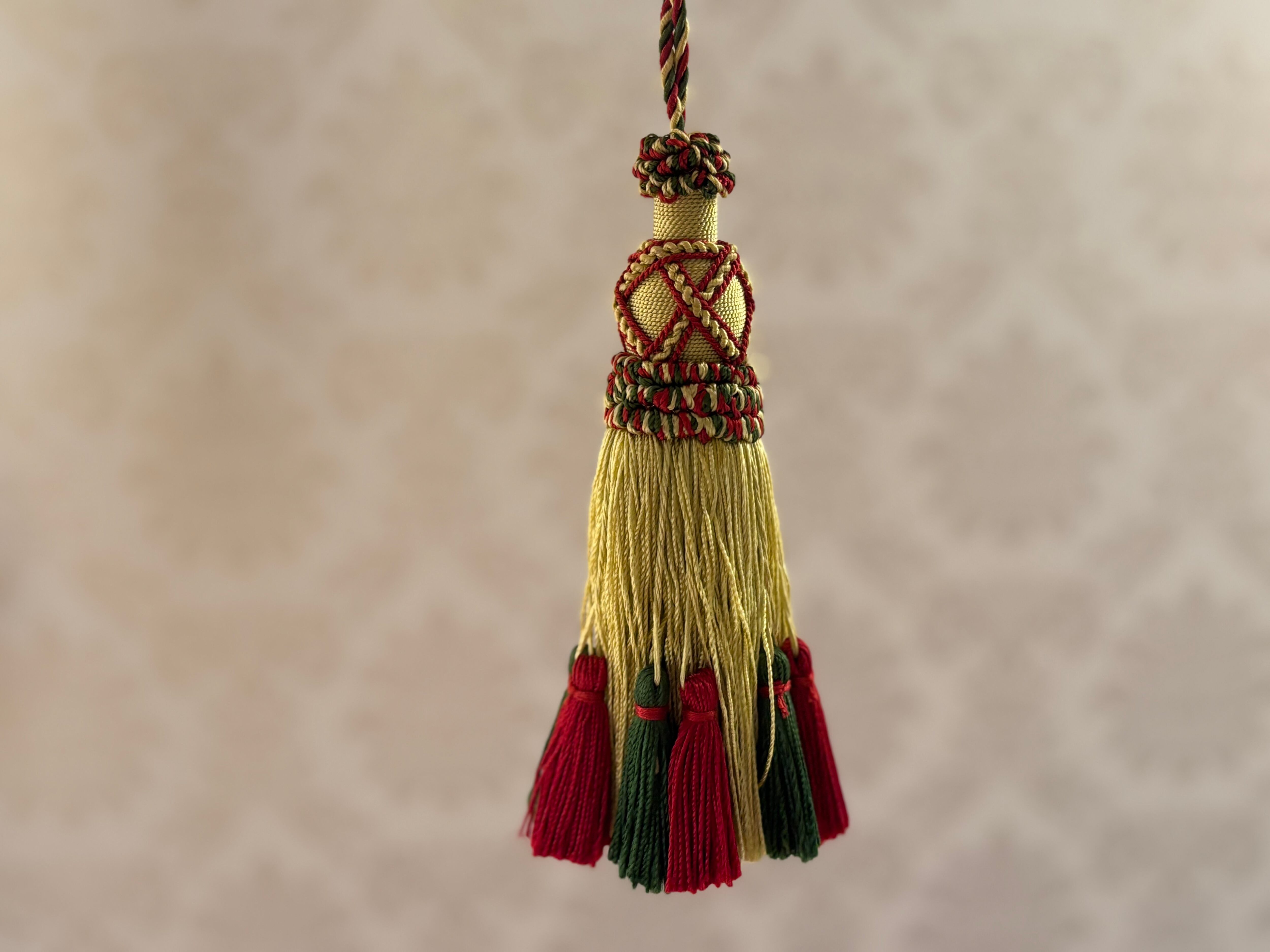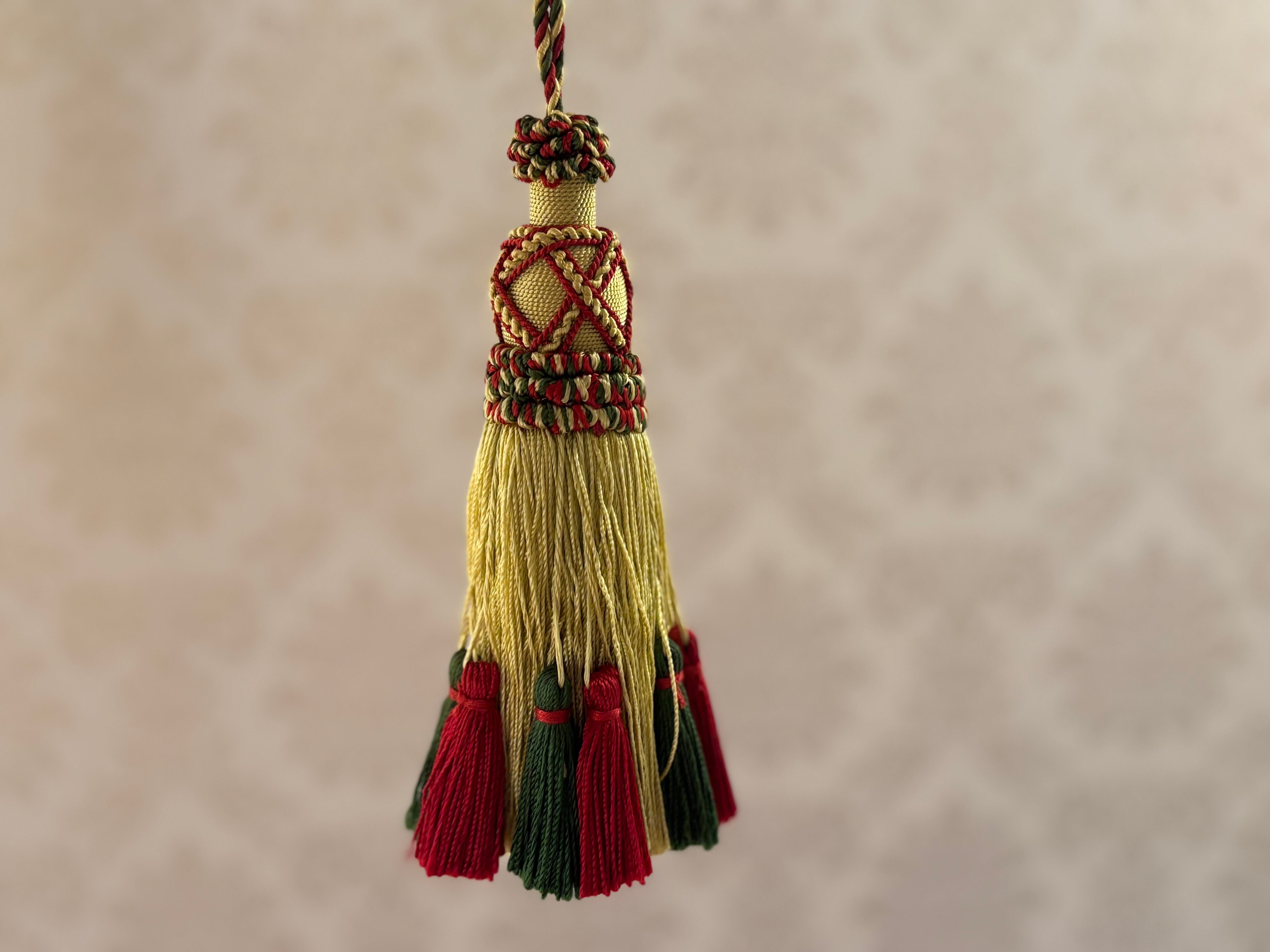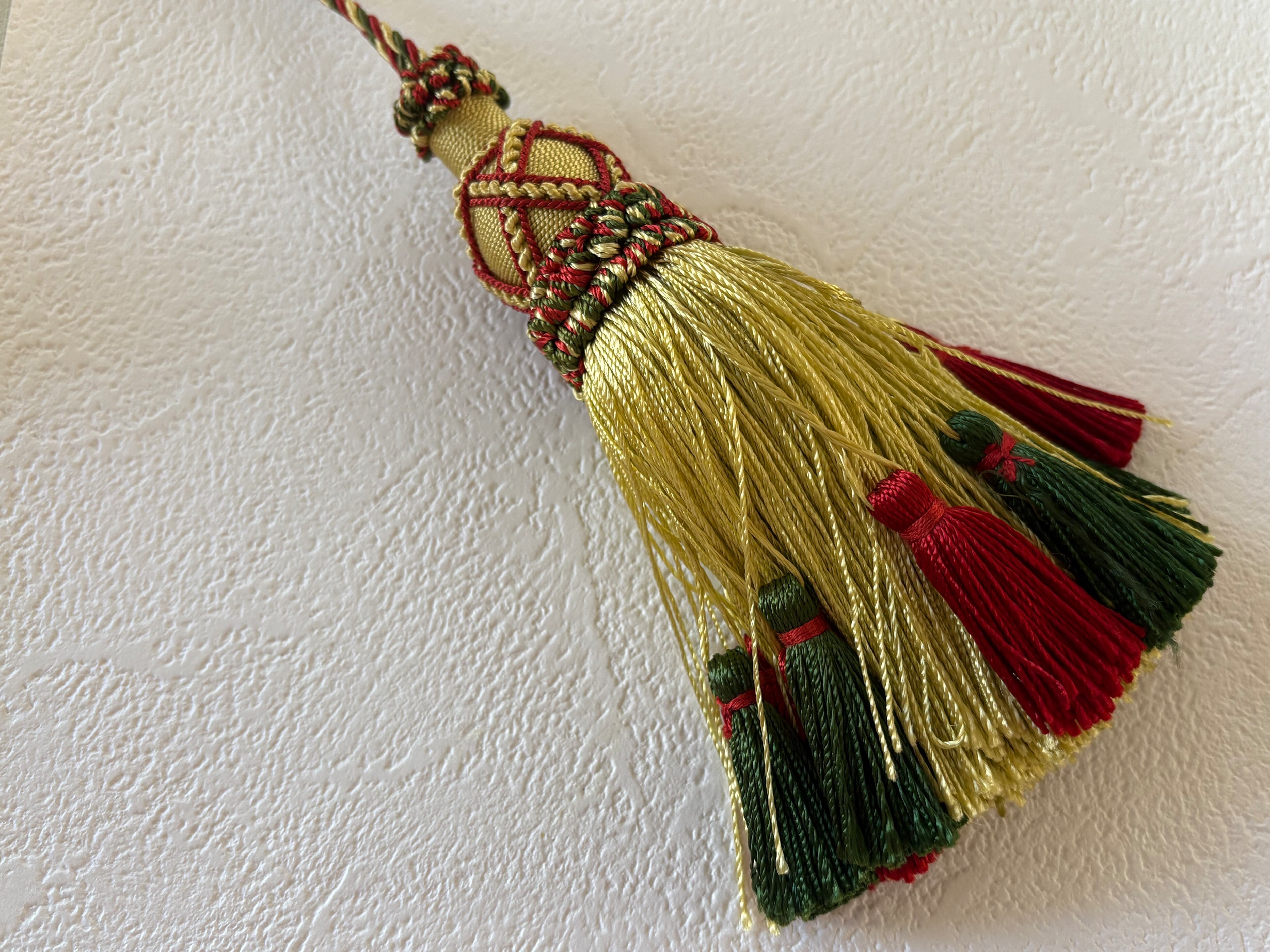 輸入デザインタッセル クリスマスカラー イエローグリーン×グリーン×レッド 14.5cm インテリアタッセル カルトナージュ スツール 茶箱