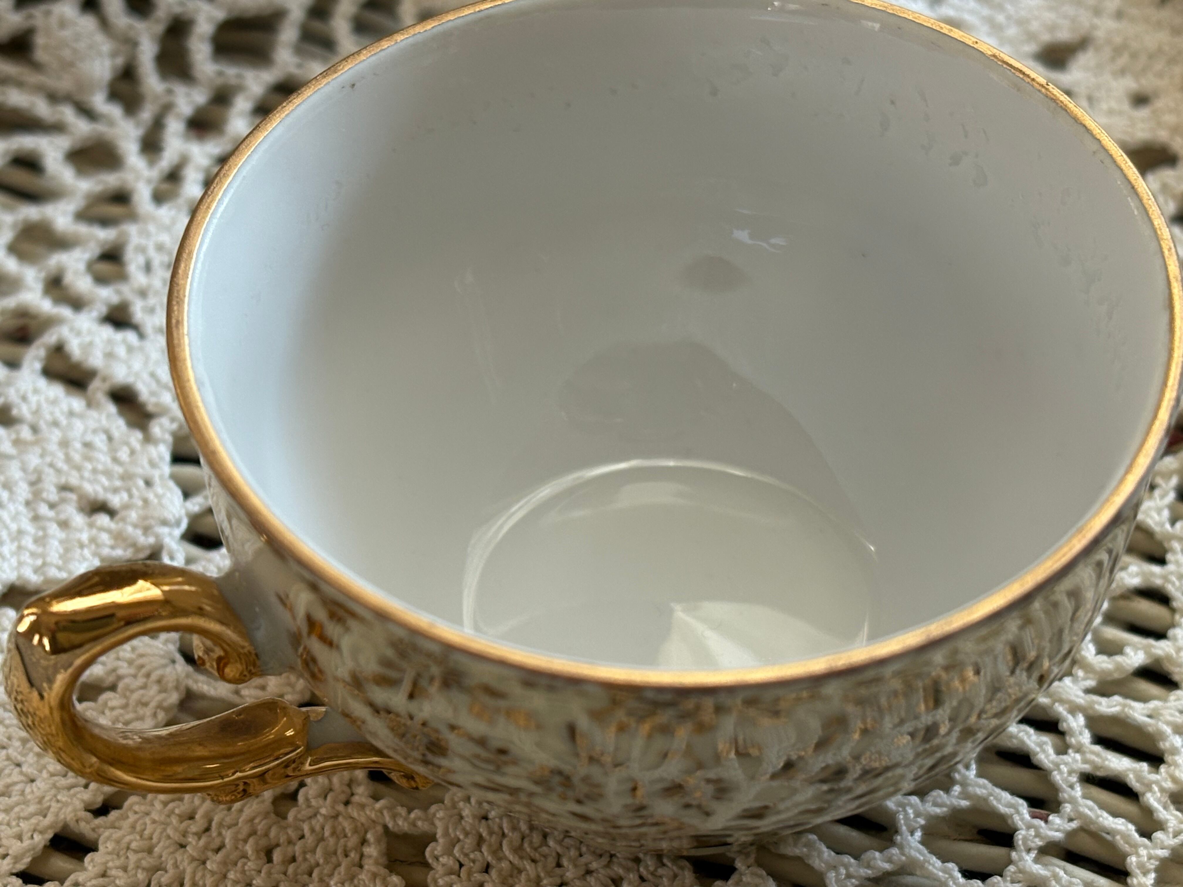 カップ全体にゴールドの小花が散りばめられたチンツ柄にロマンスのデザイン。