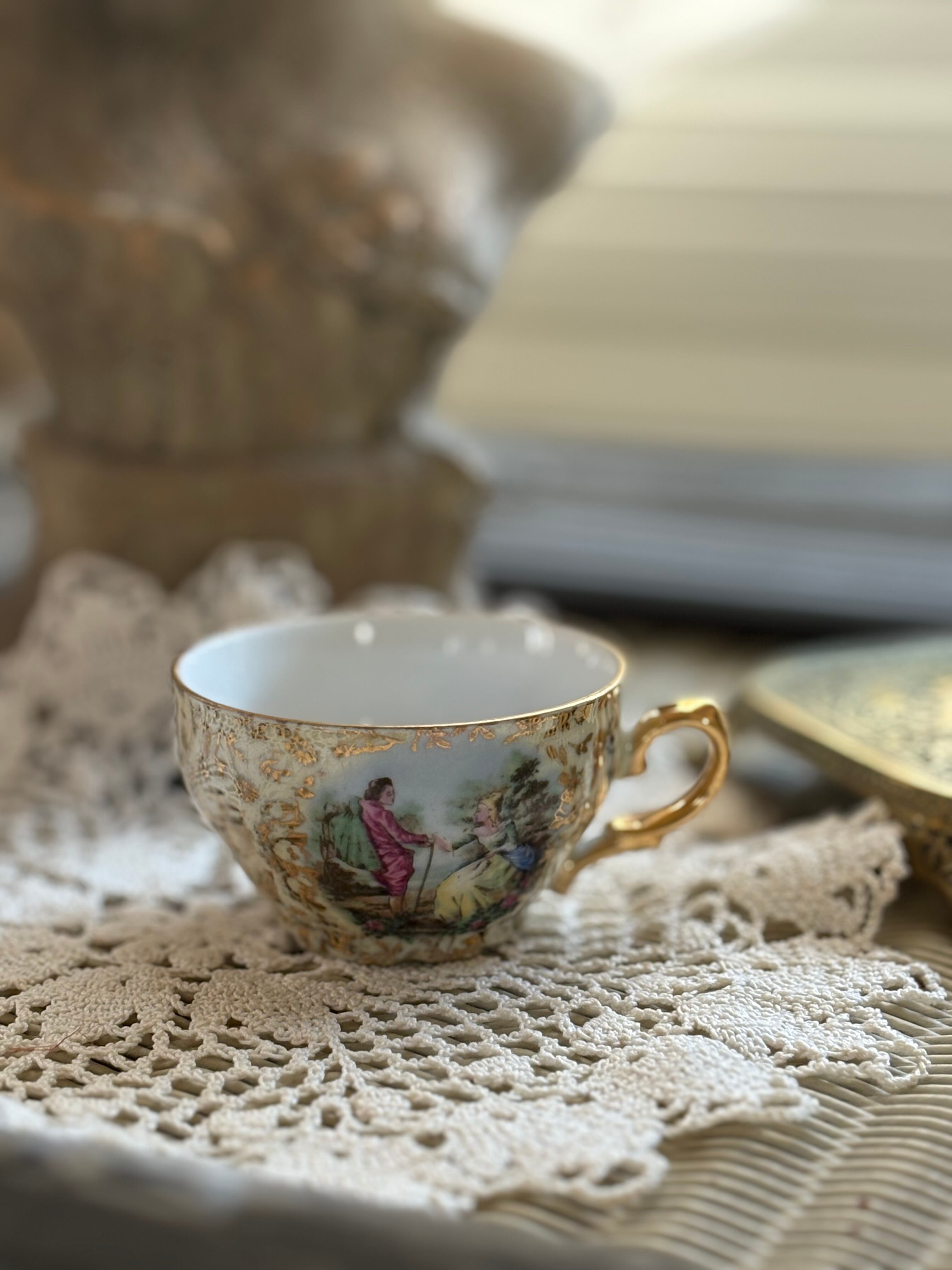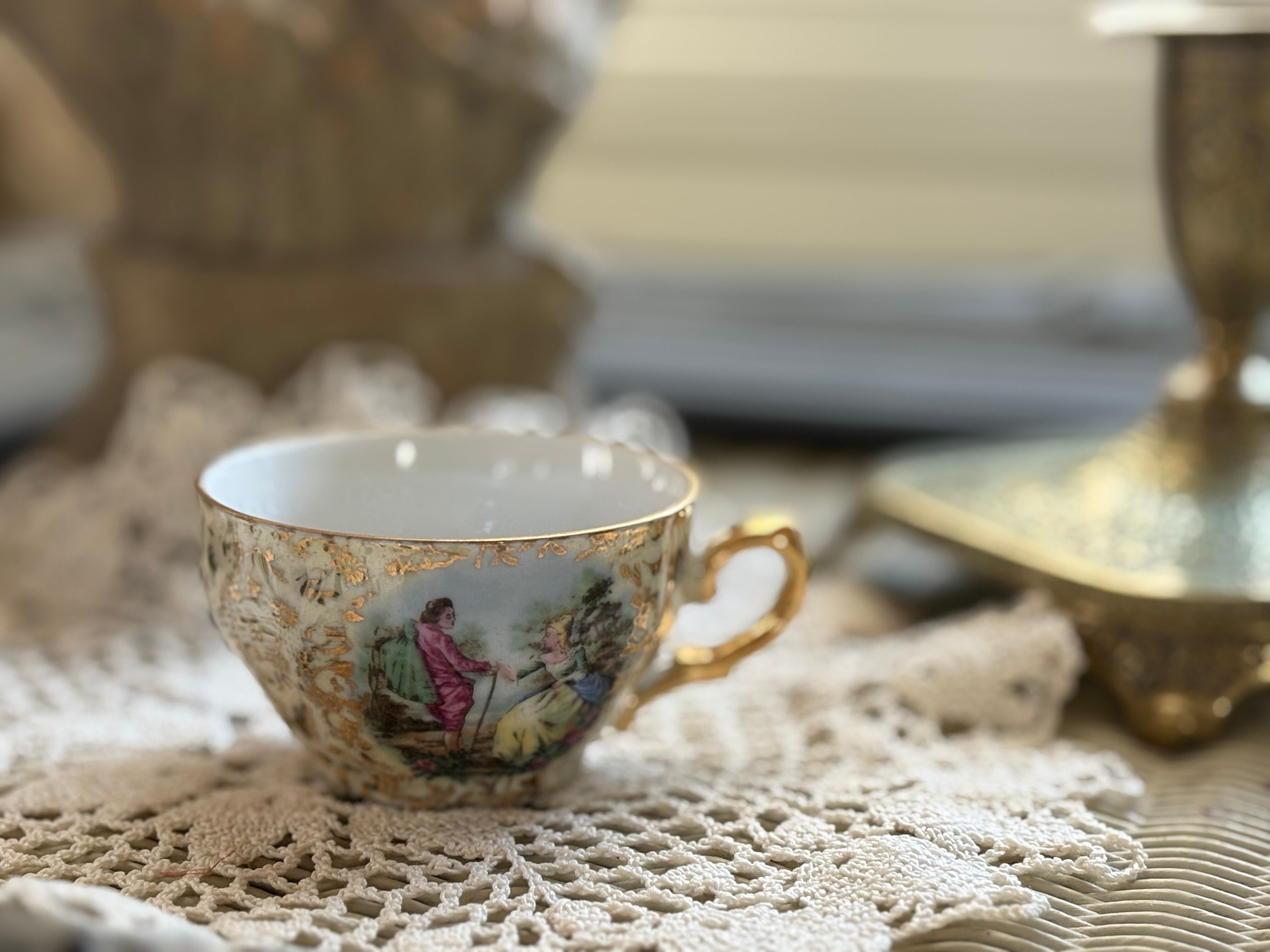Vintage 小さなカップ ロマンス チンツ柄 インテリア 花柄 金彩 フラワーベース 撮影小物 インテリア小物