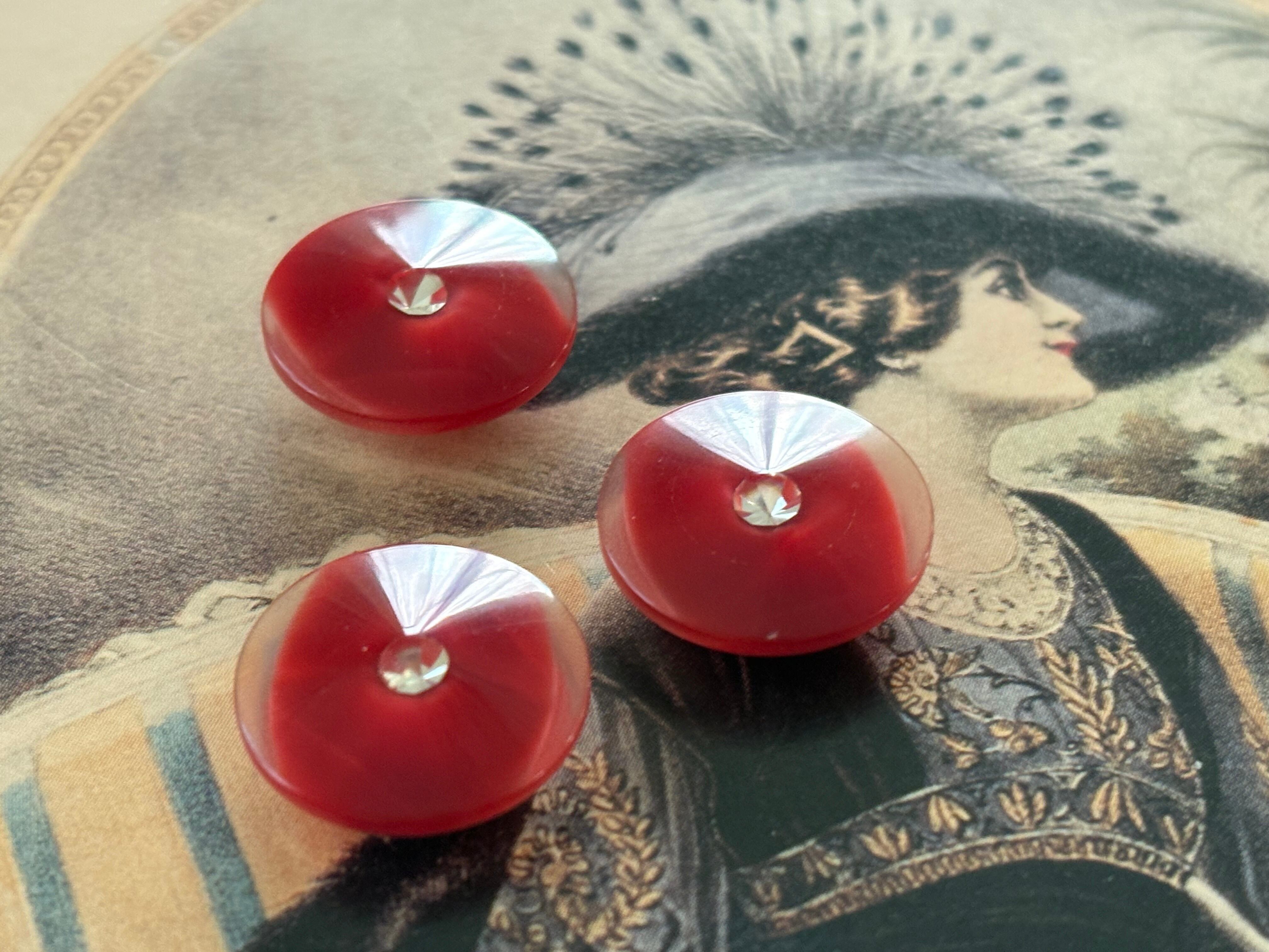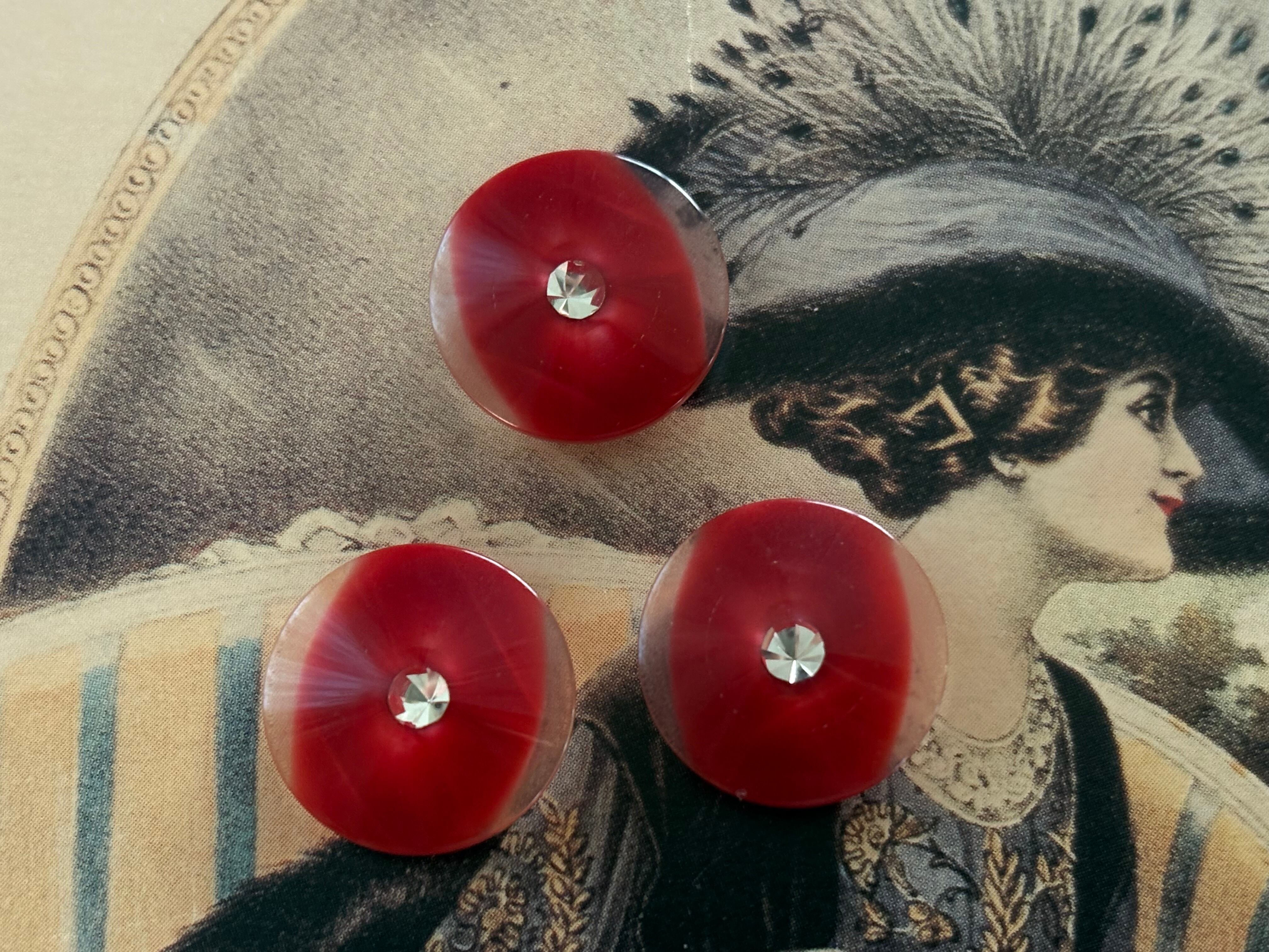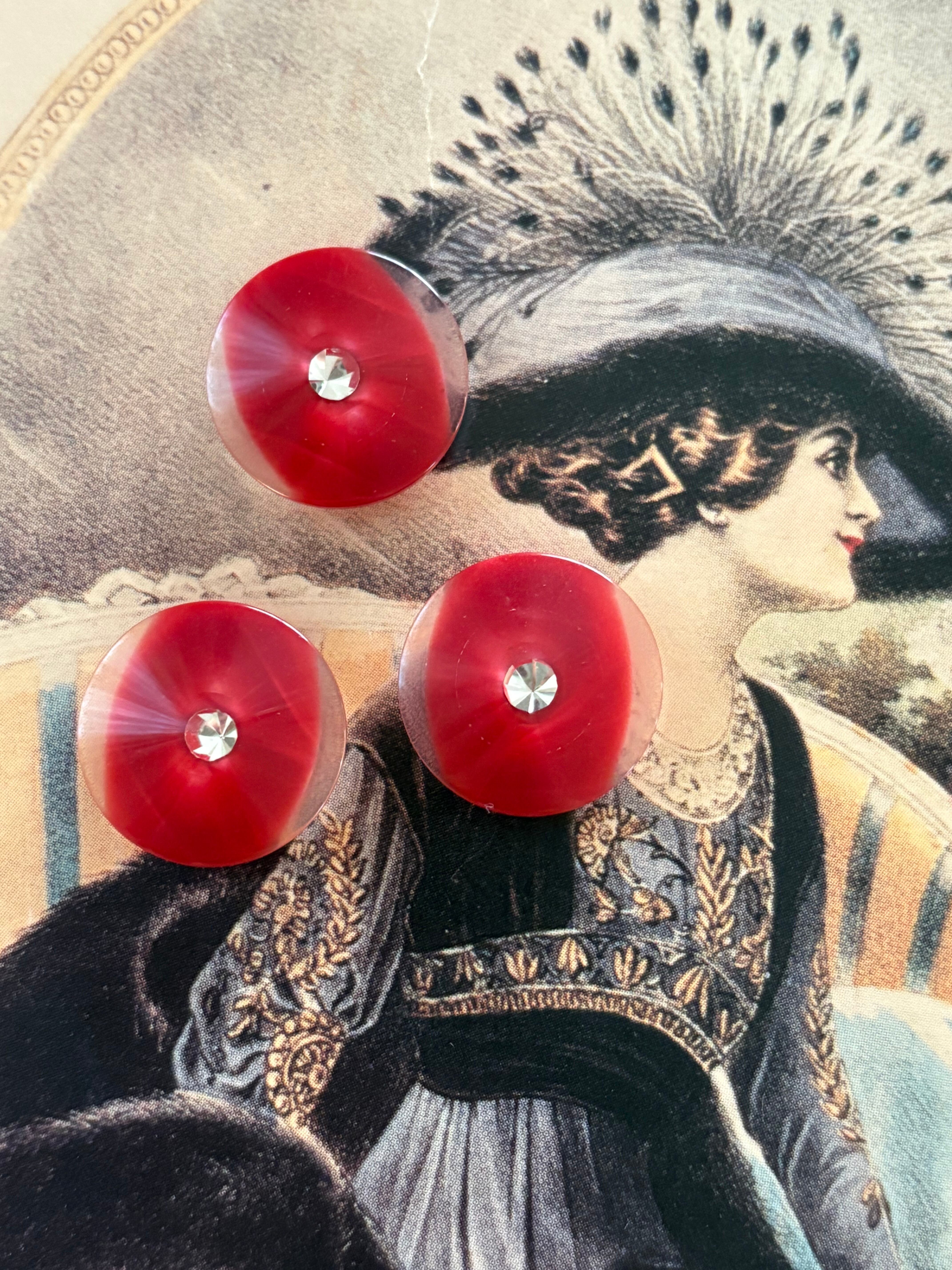 Japanese Vintage ボタン 16mm 樹脂ボタン レッド×クリア ストーン 昭和レトロ アクセサリーパーツ 装飾材