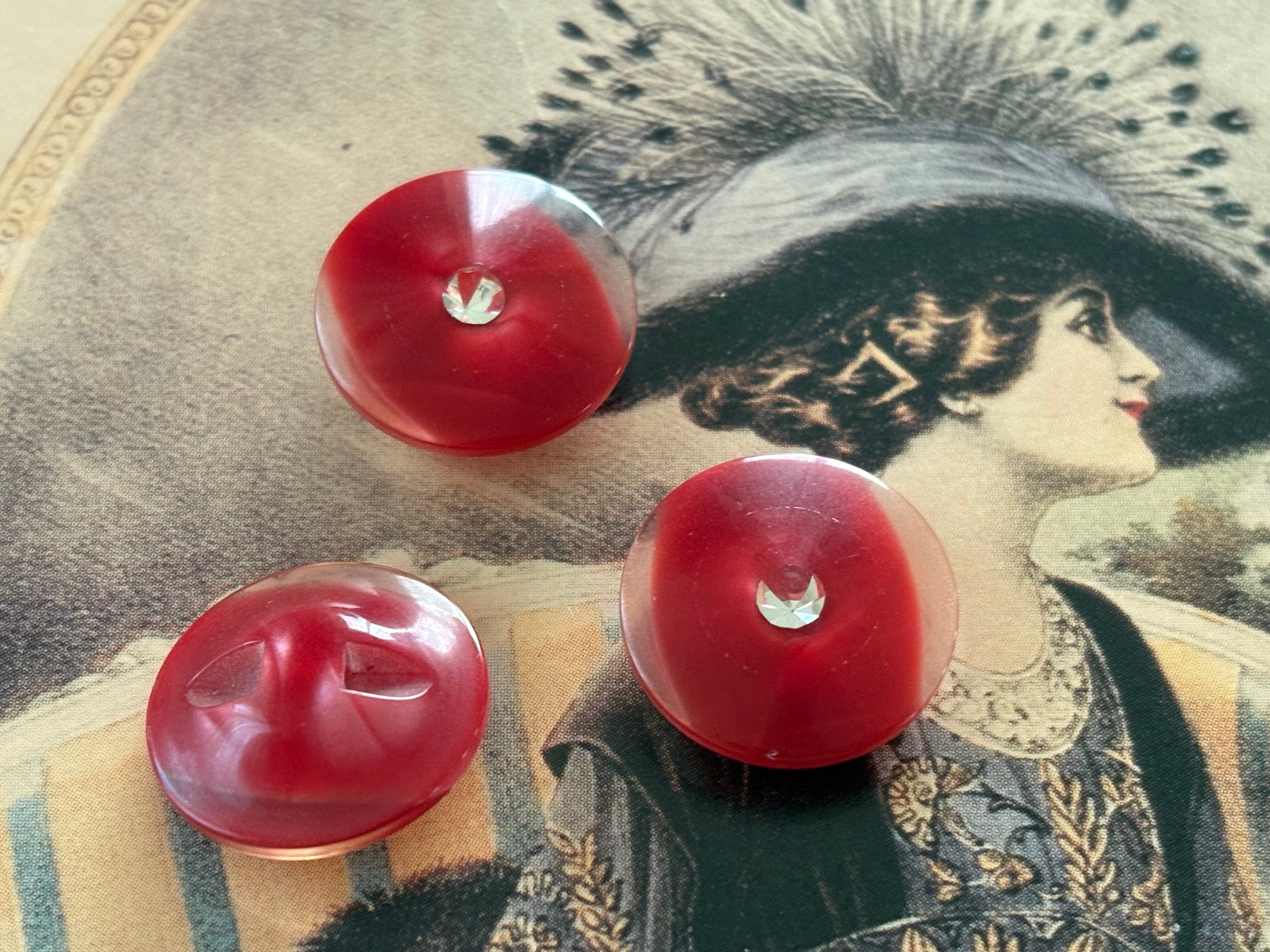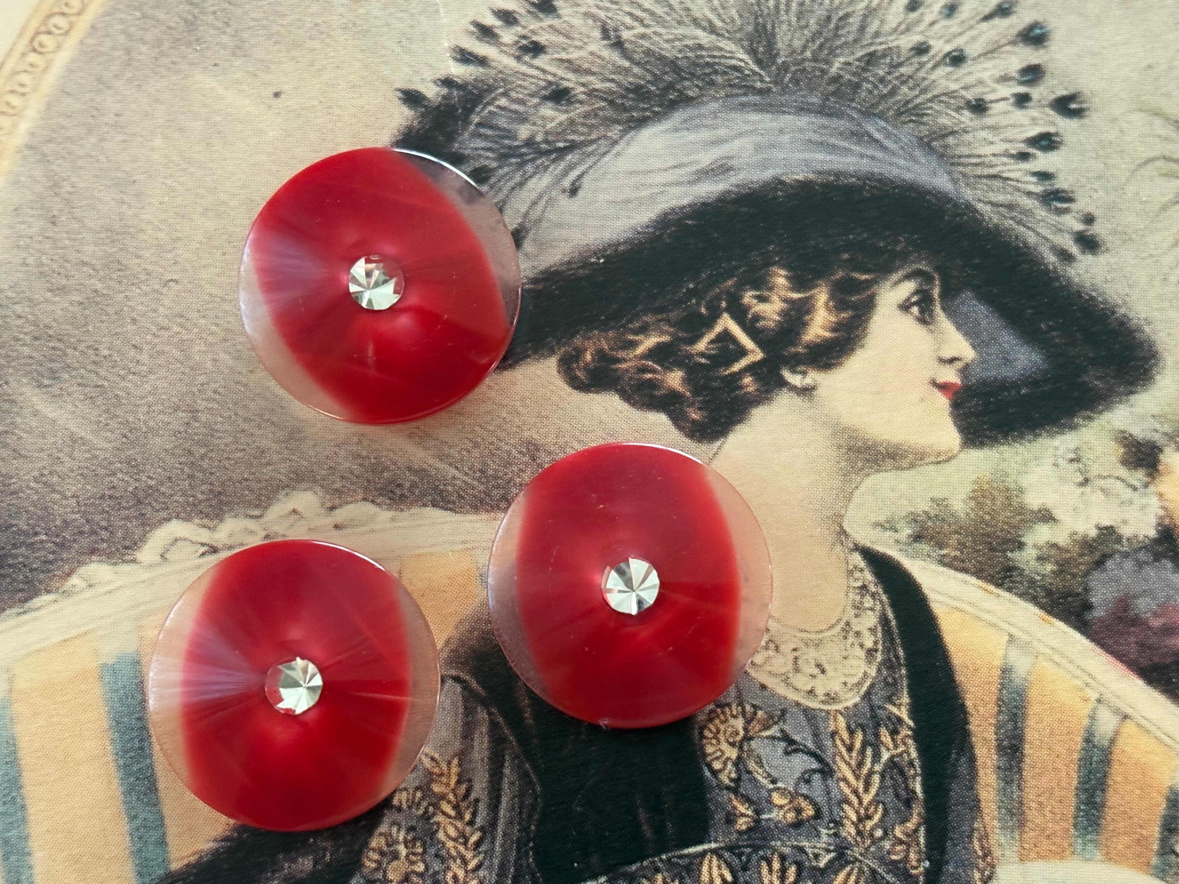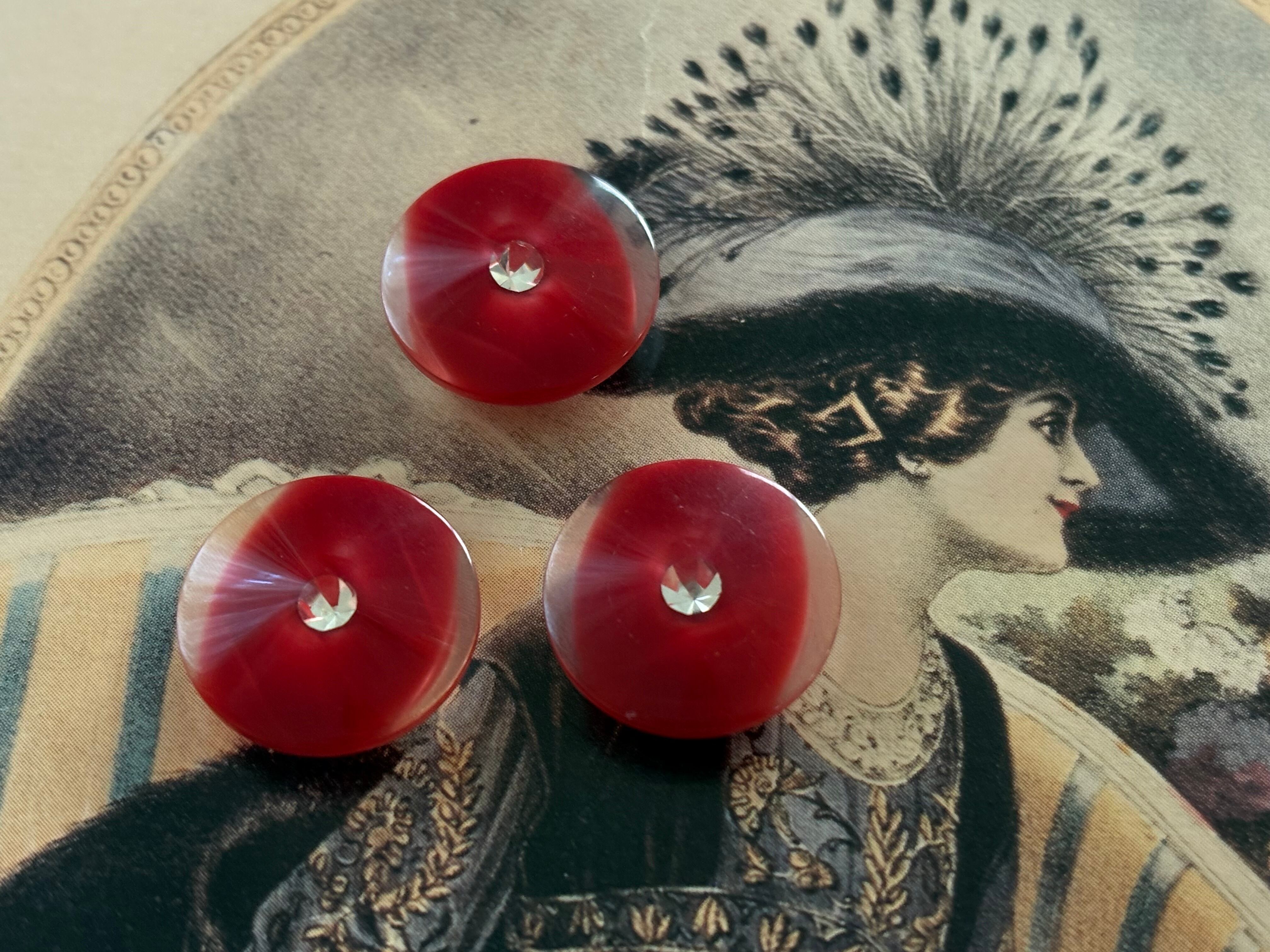 Japanese Vintage ボタン 16mm 樹脂ボタン レッド×クリア ストーン 昭和レトロ アクセサリーパーツ 装飾材