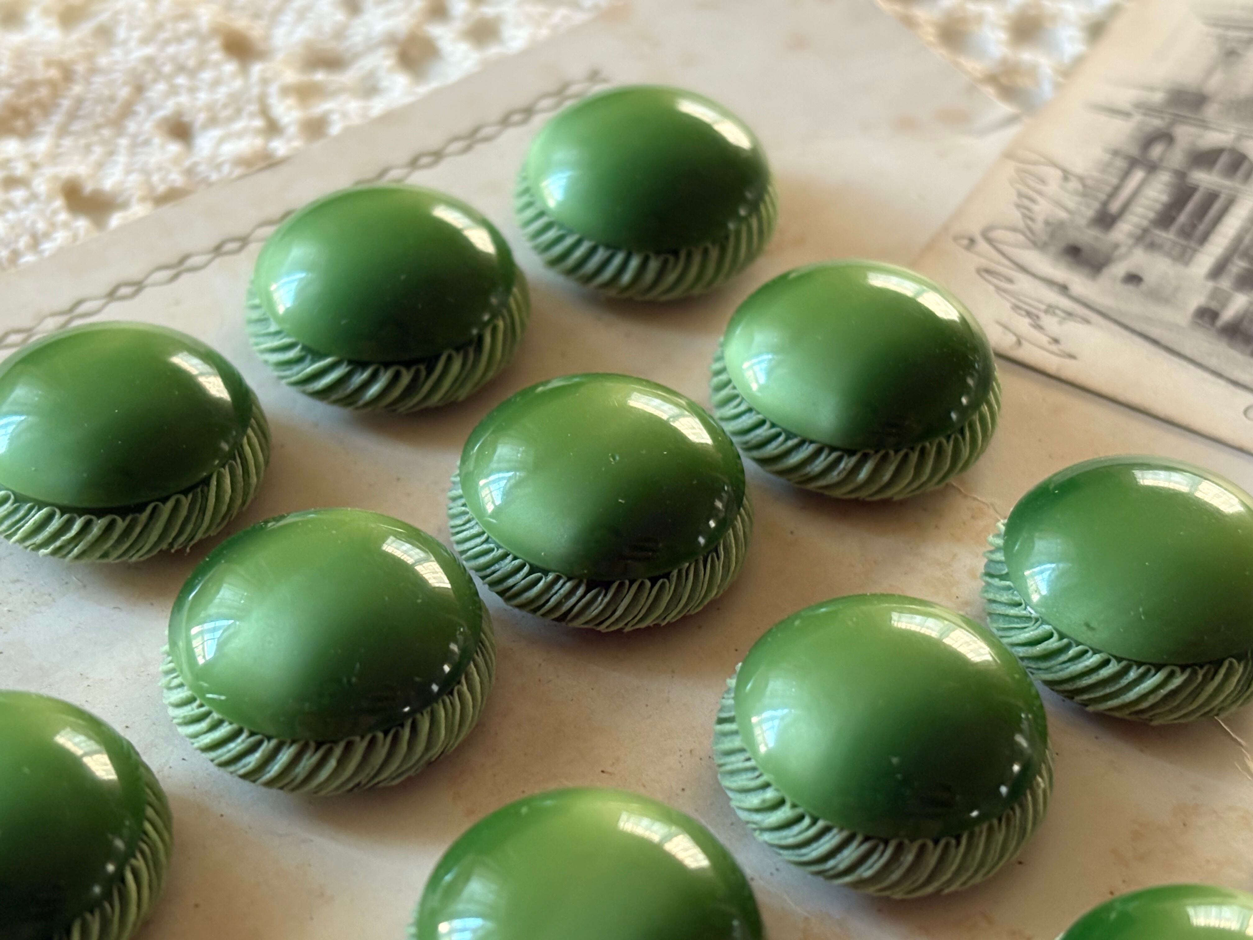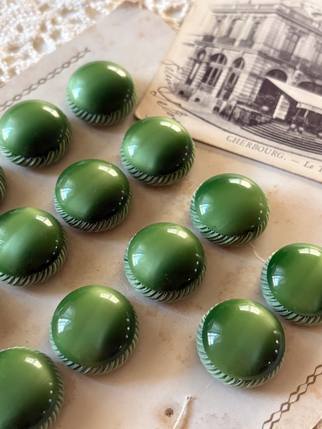 フランスVintage ヴィンテージボタン アセテート 20mm グリーン 1960年代 ドーム型 デッドストック アクセサリーパーツ デコレーション材