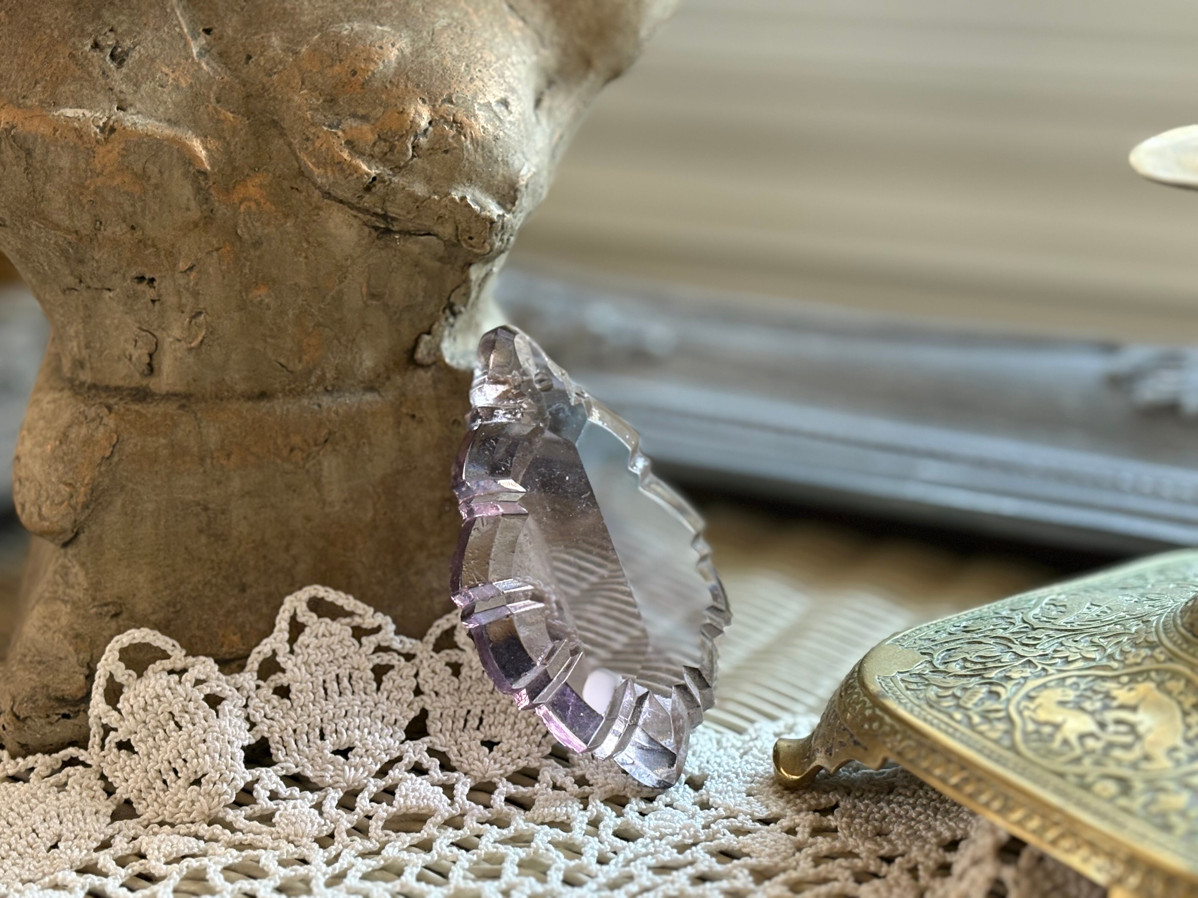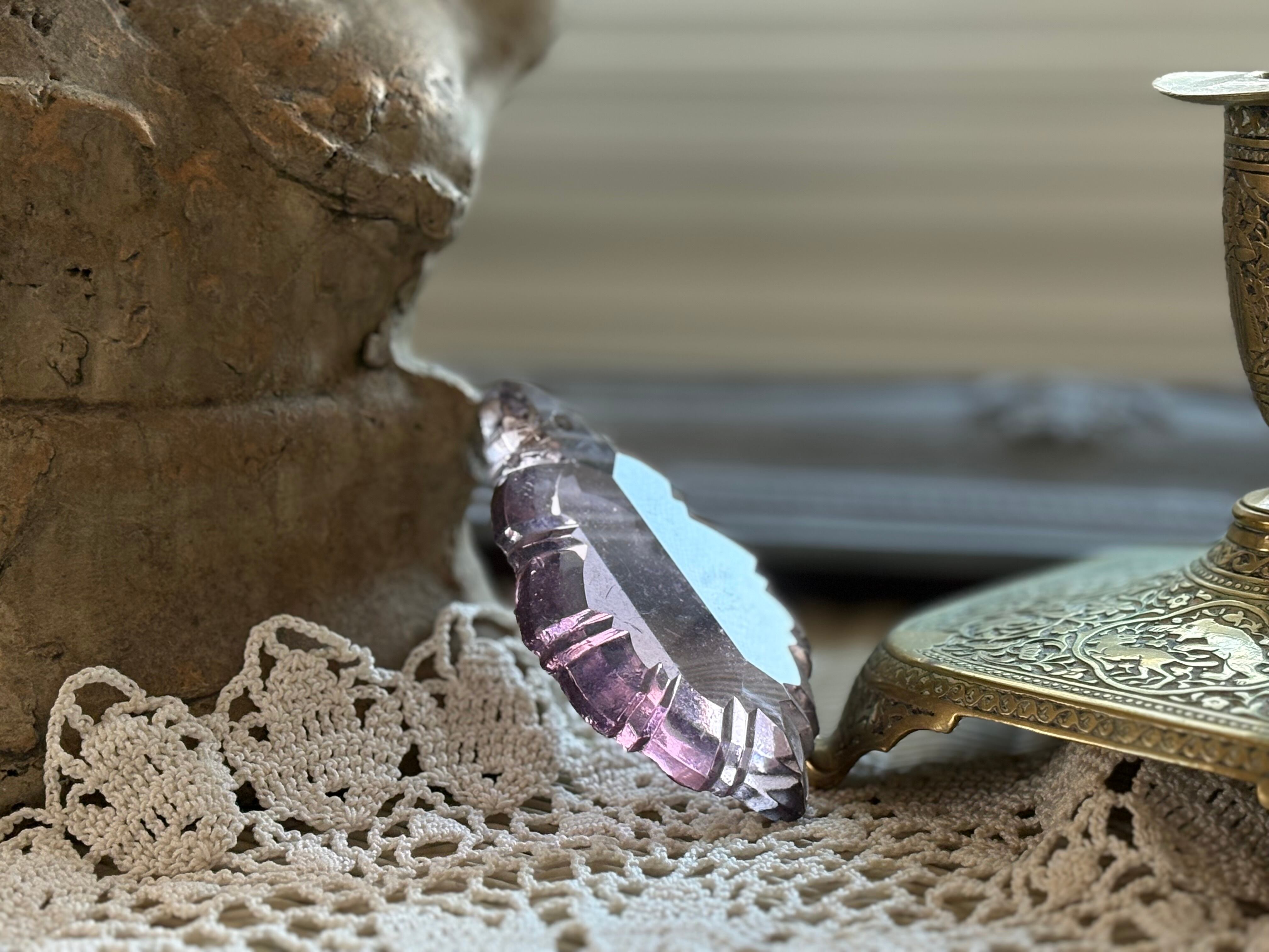 英国アンティーク シャンデリアパーツ サンキャッチャー パープル ガラス カットガラス インテリア小物 オブジェ ペーパーウェイト