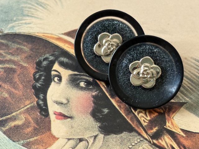 Japanese Vintage ボタン ホワイト×シルバー 21mm カメリア フラワー昭和レトロ アクセサリーパーツ 装飾材 カルトナージュ