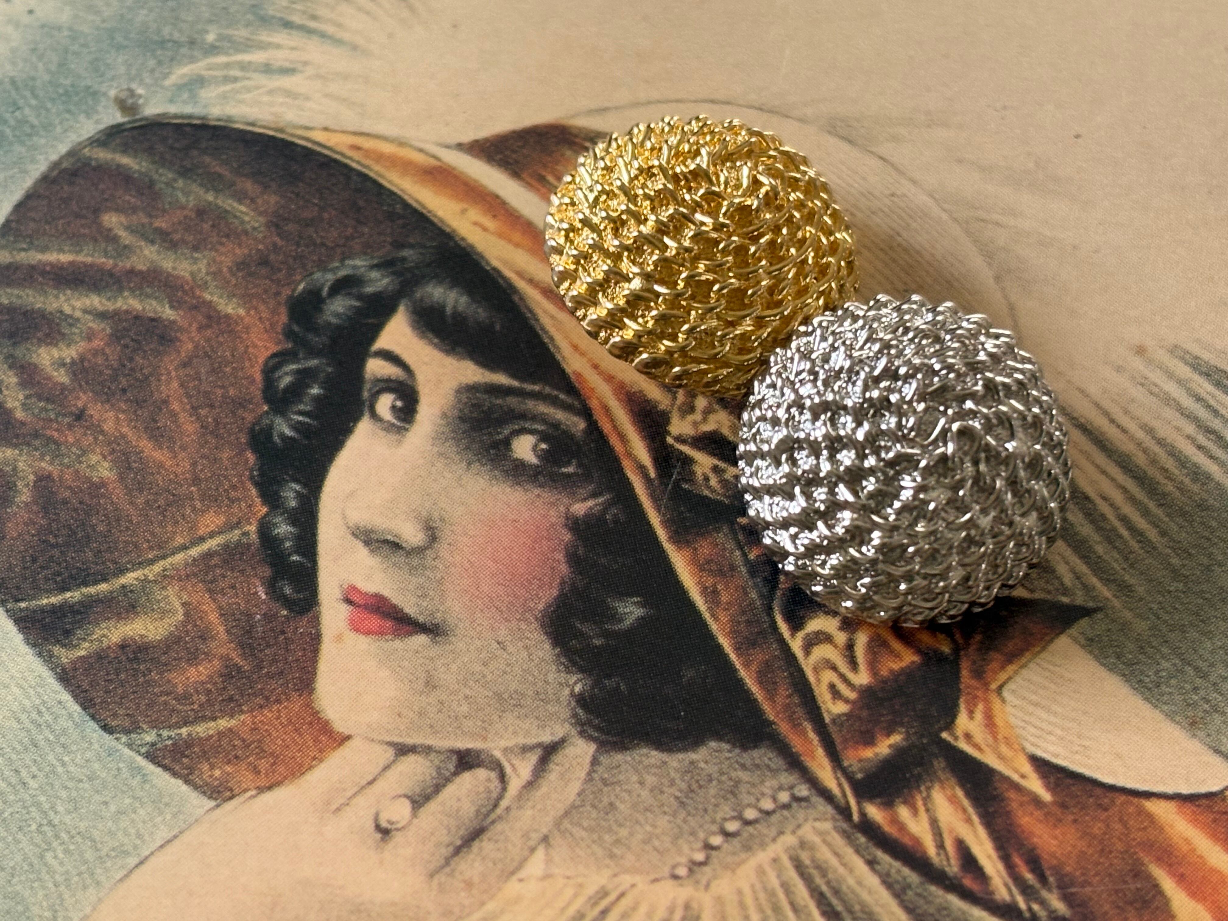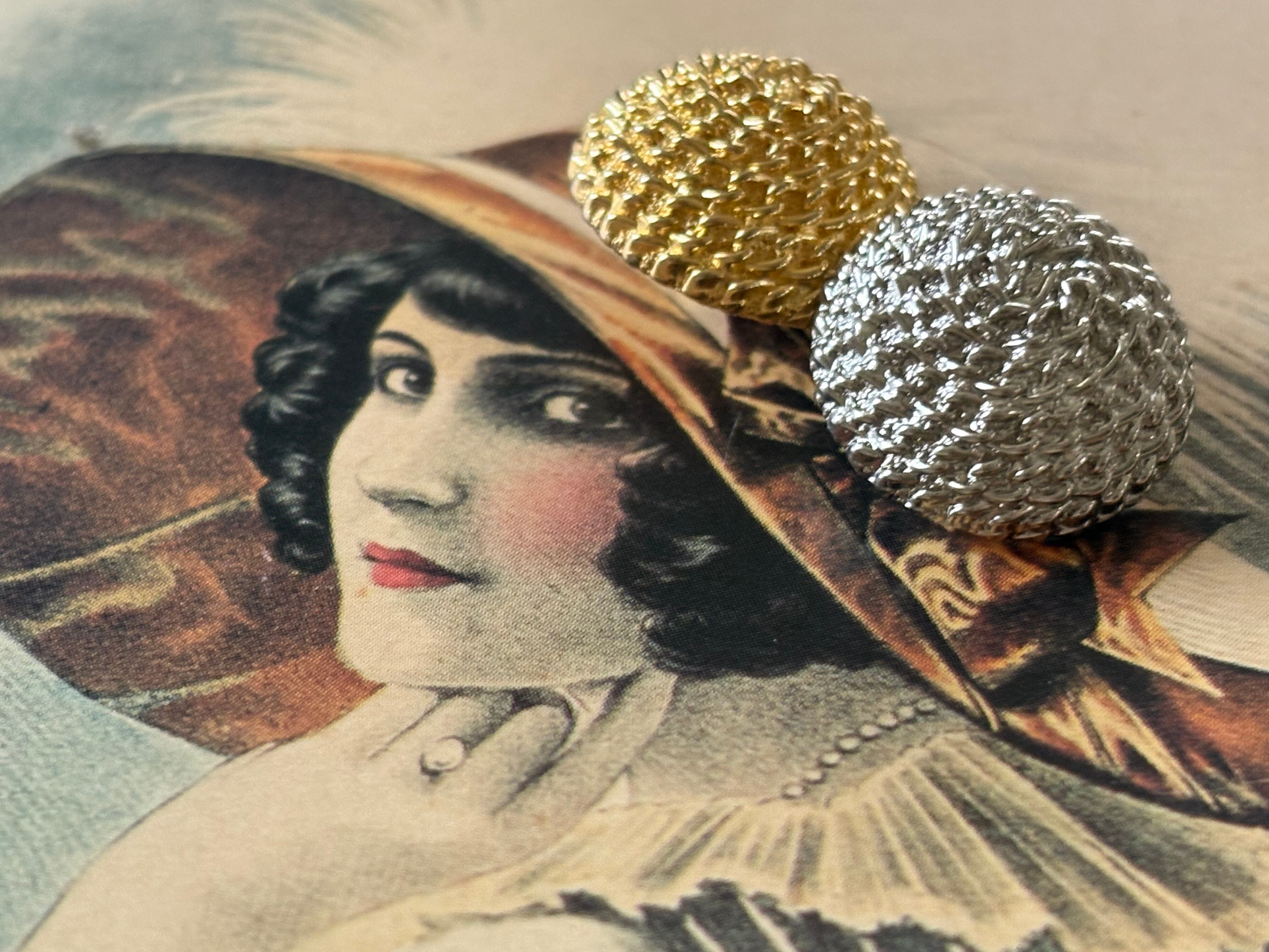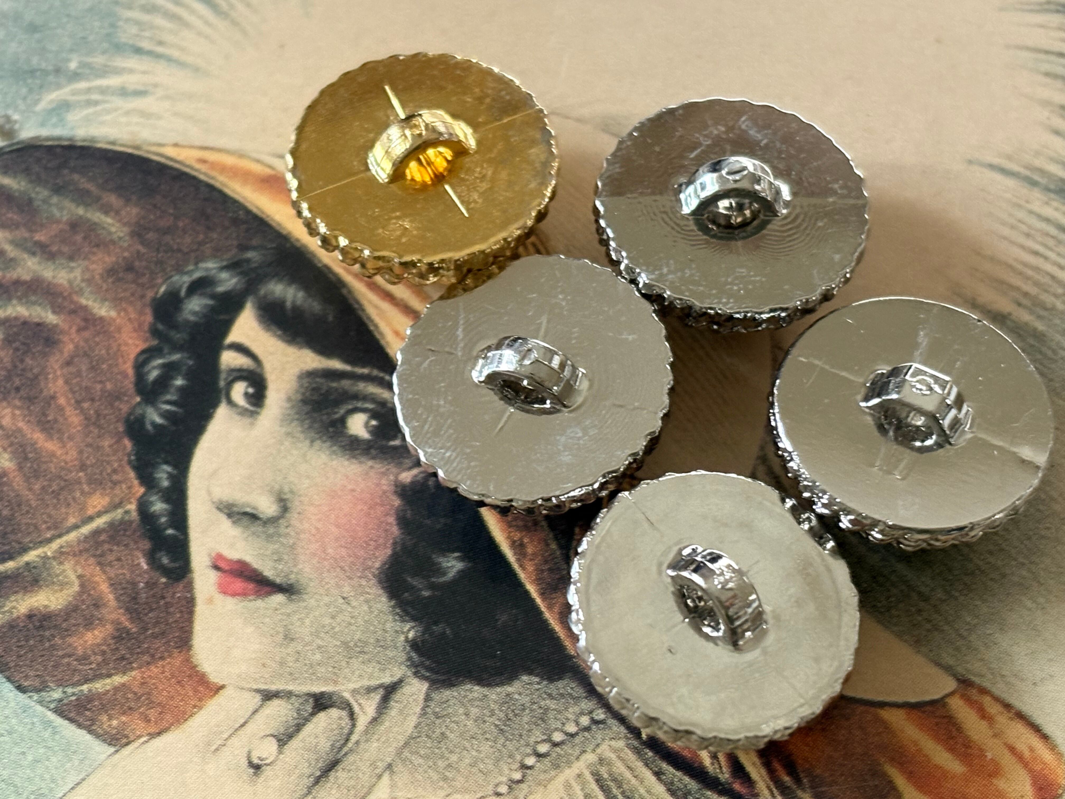Japanese Vintage ボタン 16mm ドーム型 チェーン シルバー/ゴールド アクセサリーパーツ 装飾材
