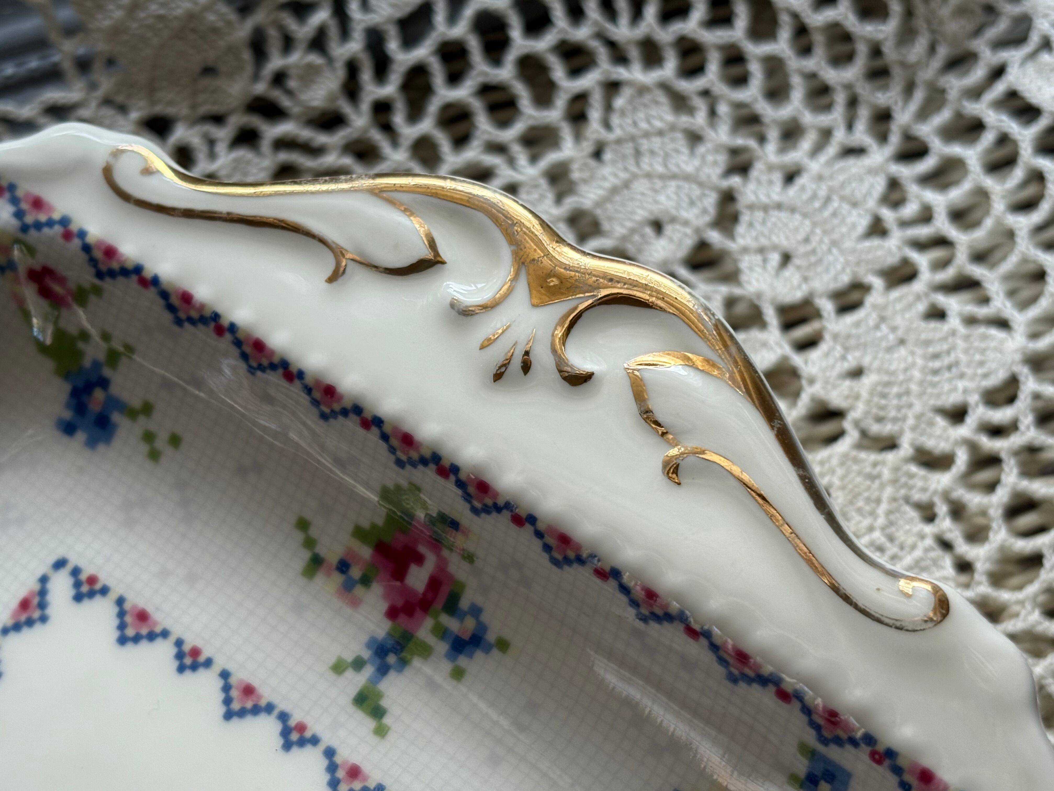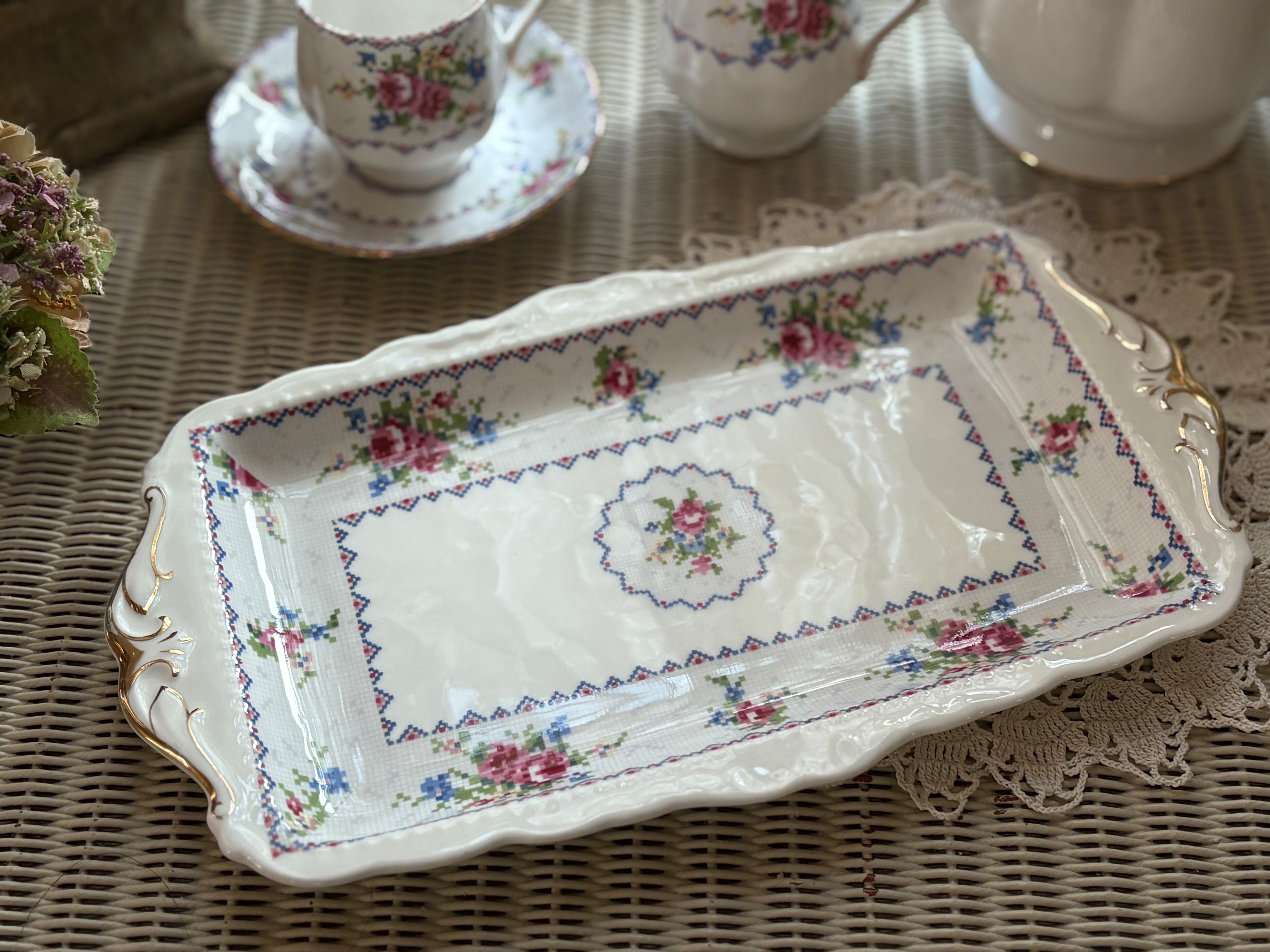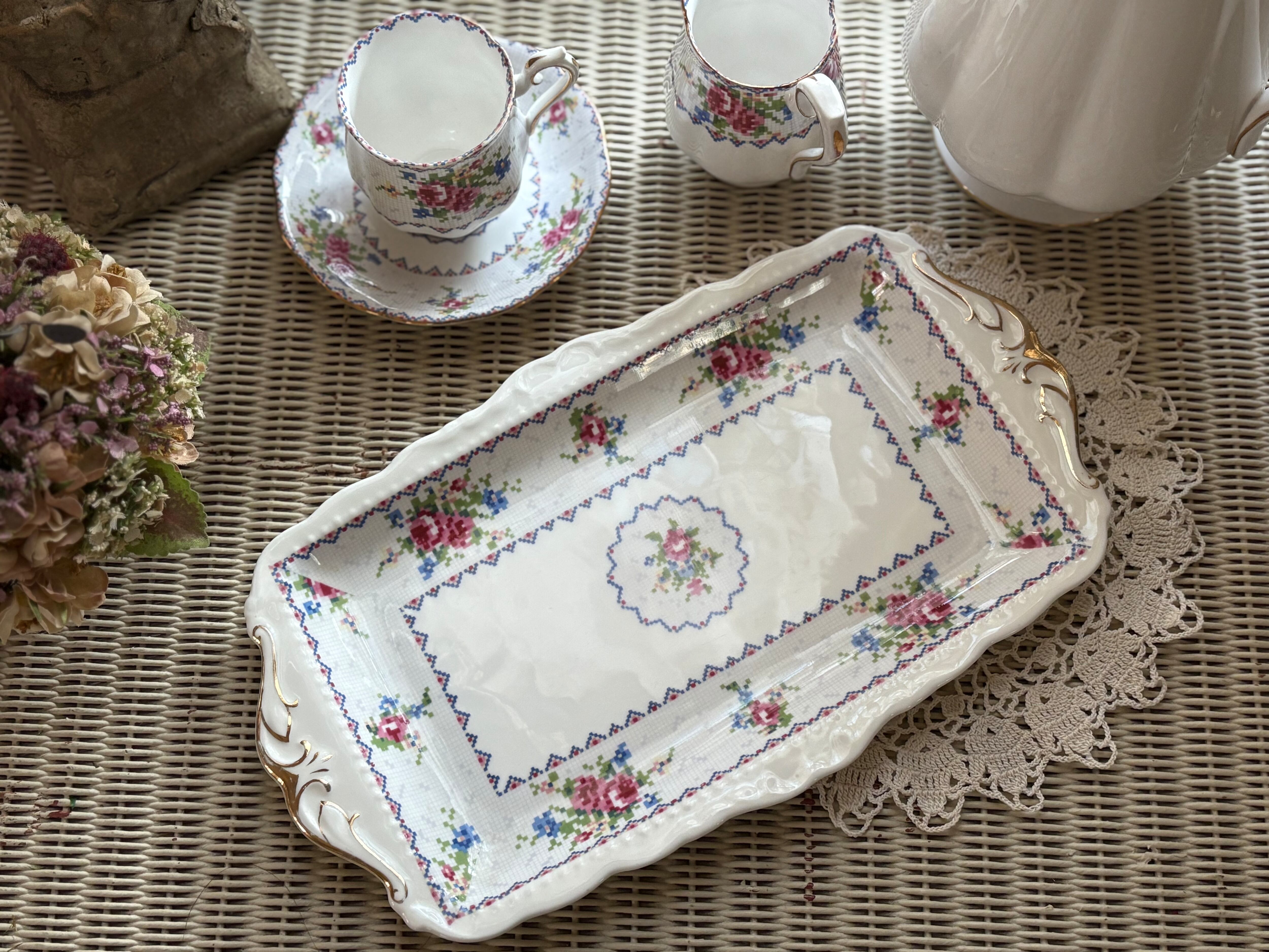 英国Vintage ROYAL ALBERT ロイヤルアルバート 廃盤 プチポワン サンドイッチプレート 刺繍柄 テーブルウェア