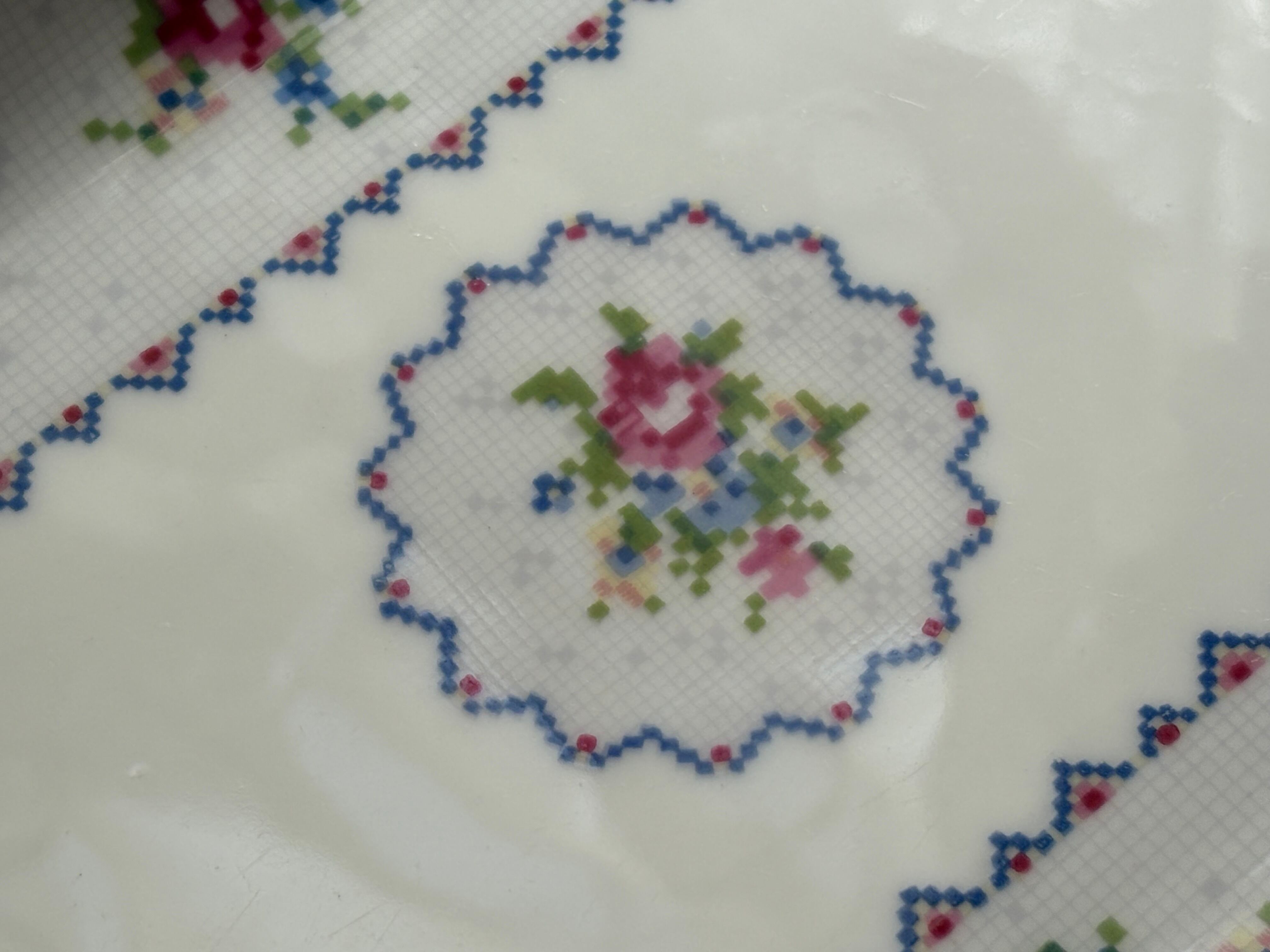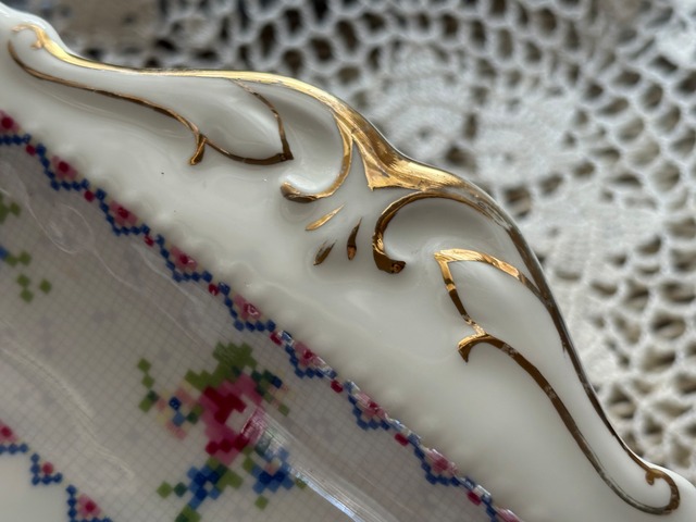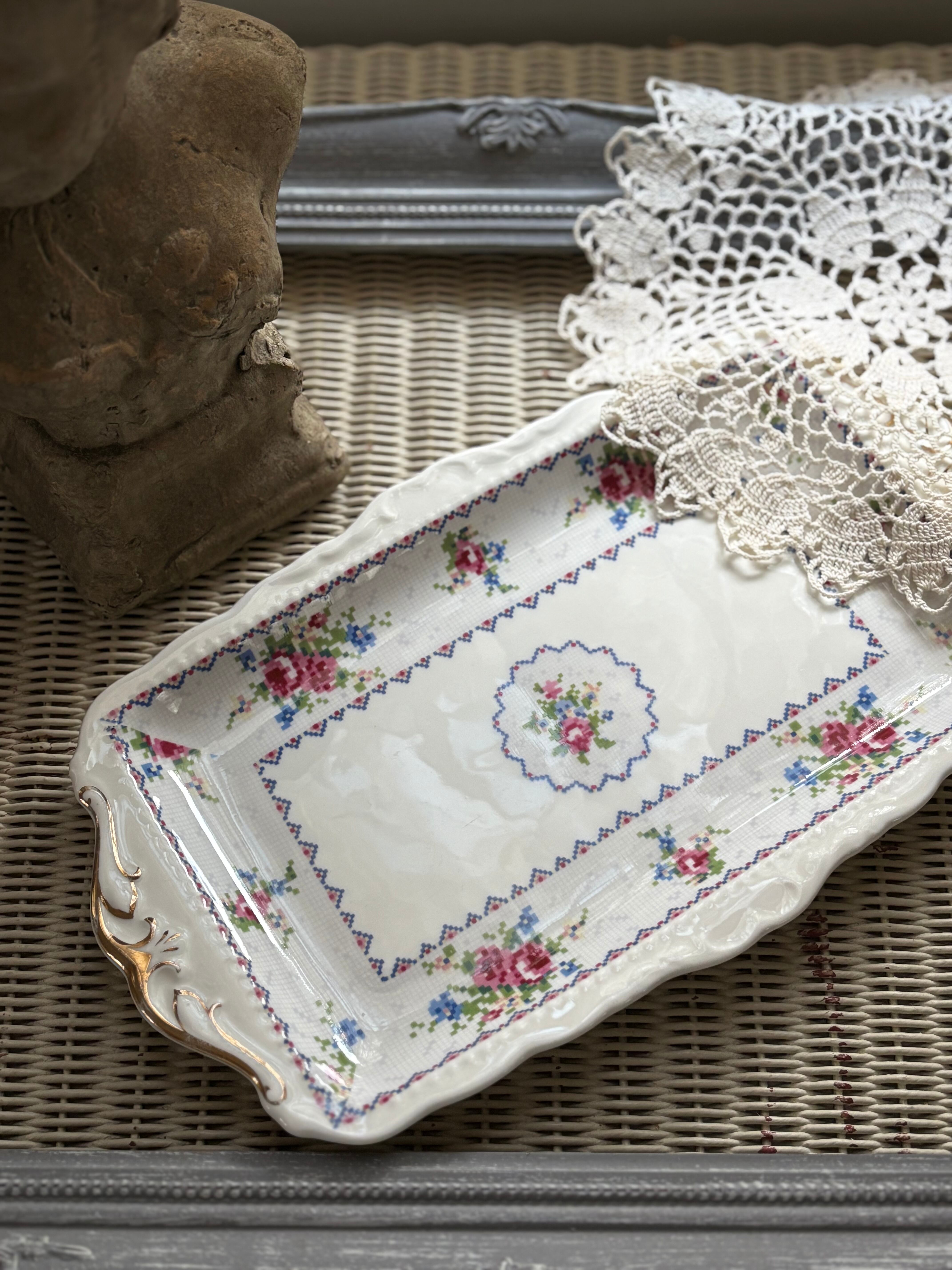 英国Vintage ROYAL ALBERT ロイヤルアルバート 廃盤 プチポワン サンドイッチプレート 刺繍柄 テーブルウェア