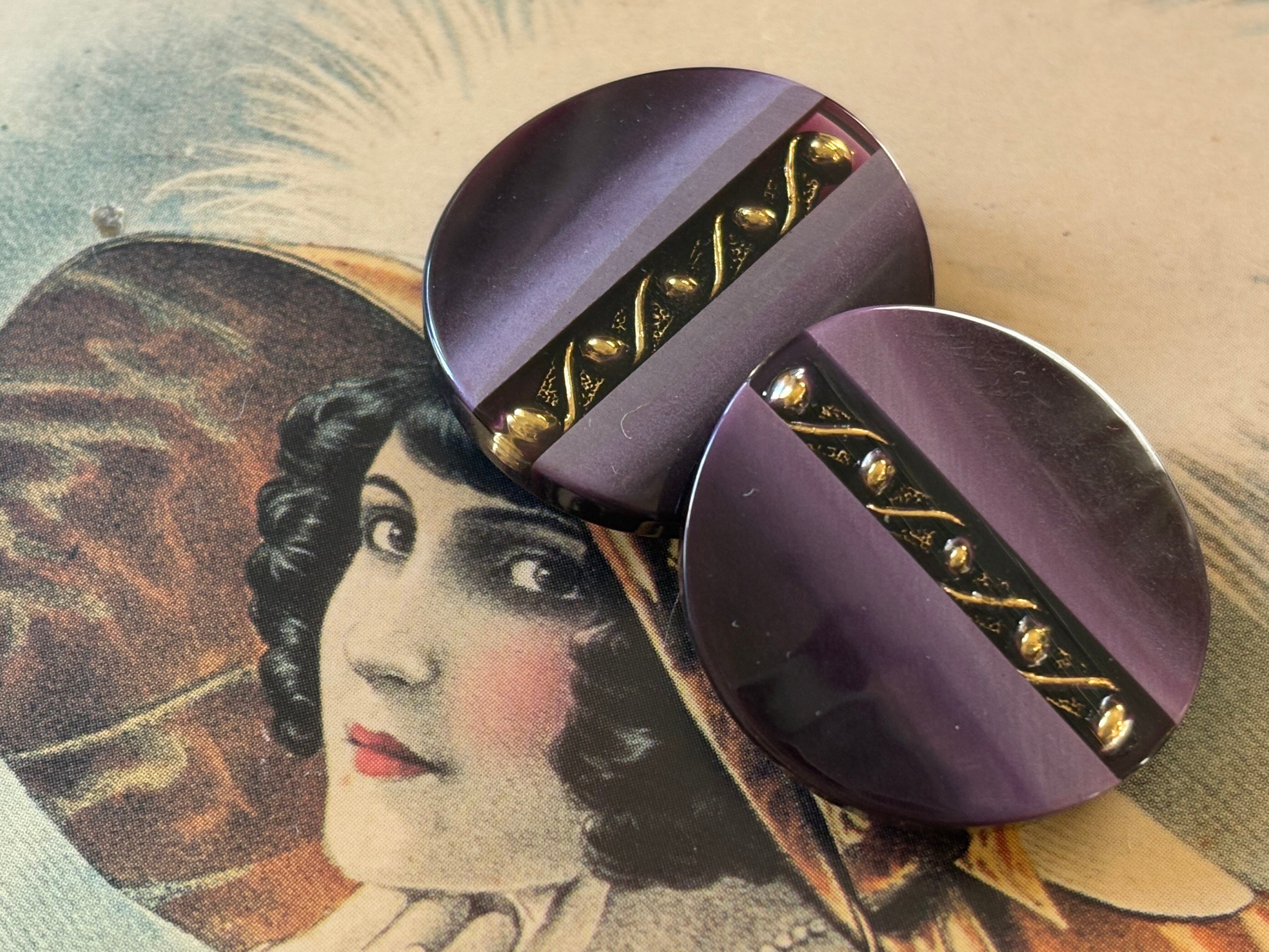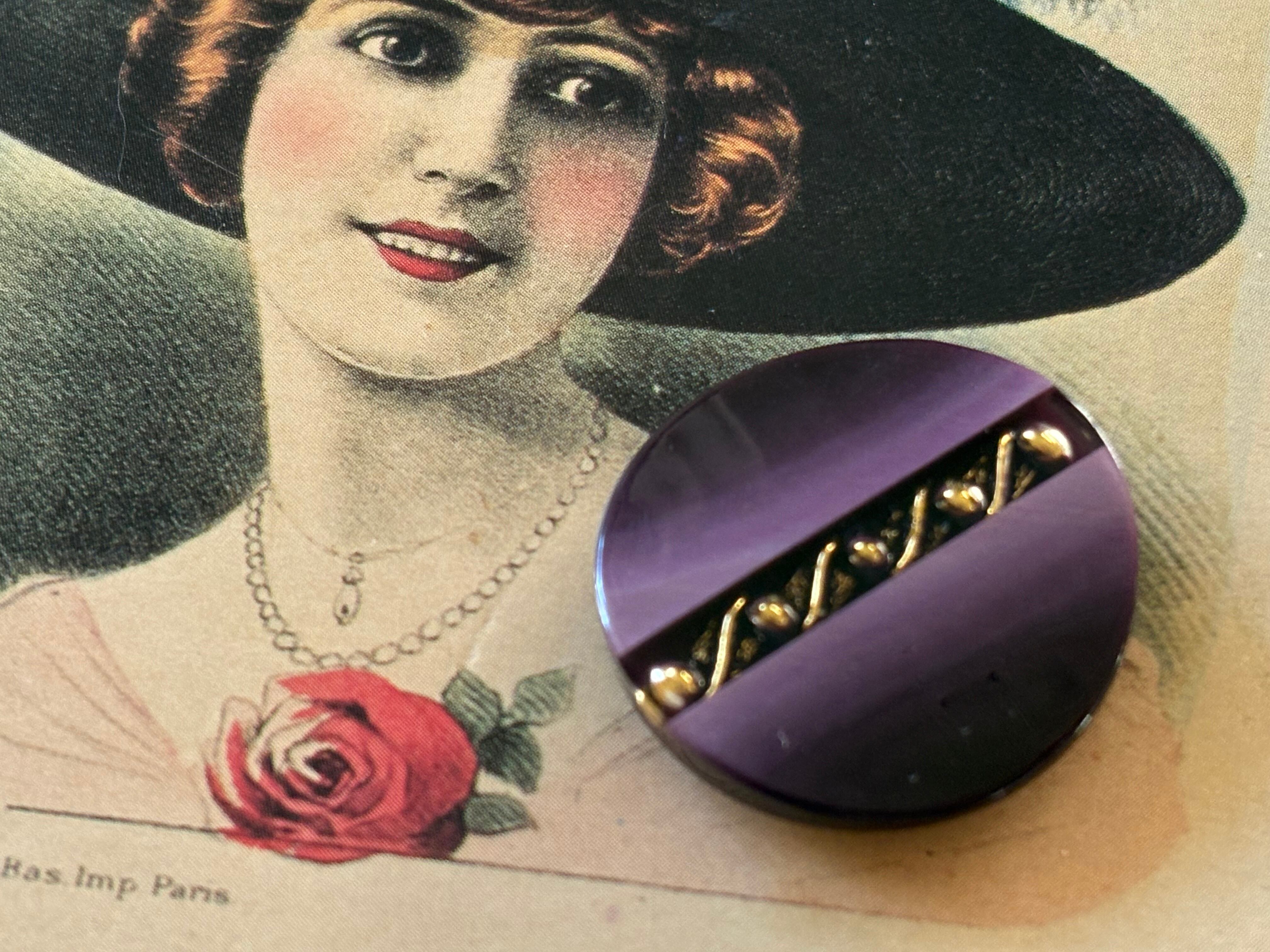 Japanese Vintage ヴィンテージボタン パープル×ゴールド 27mm アクセサリーパーツ 装飾材 カルトナージュ