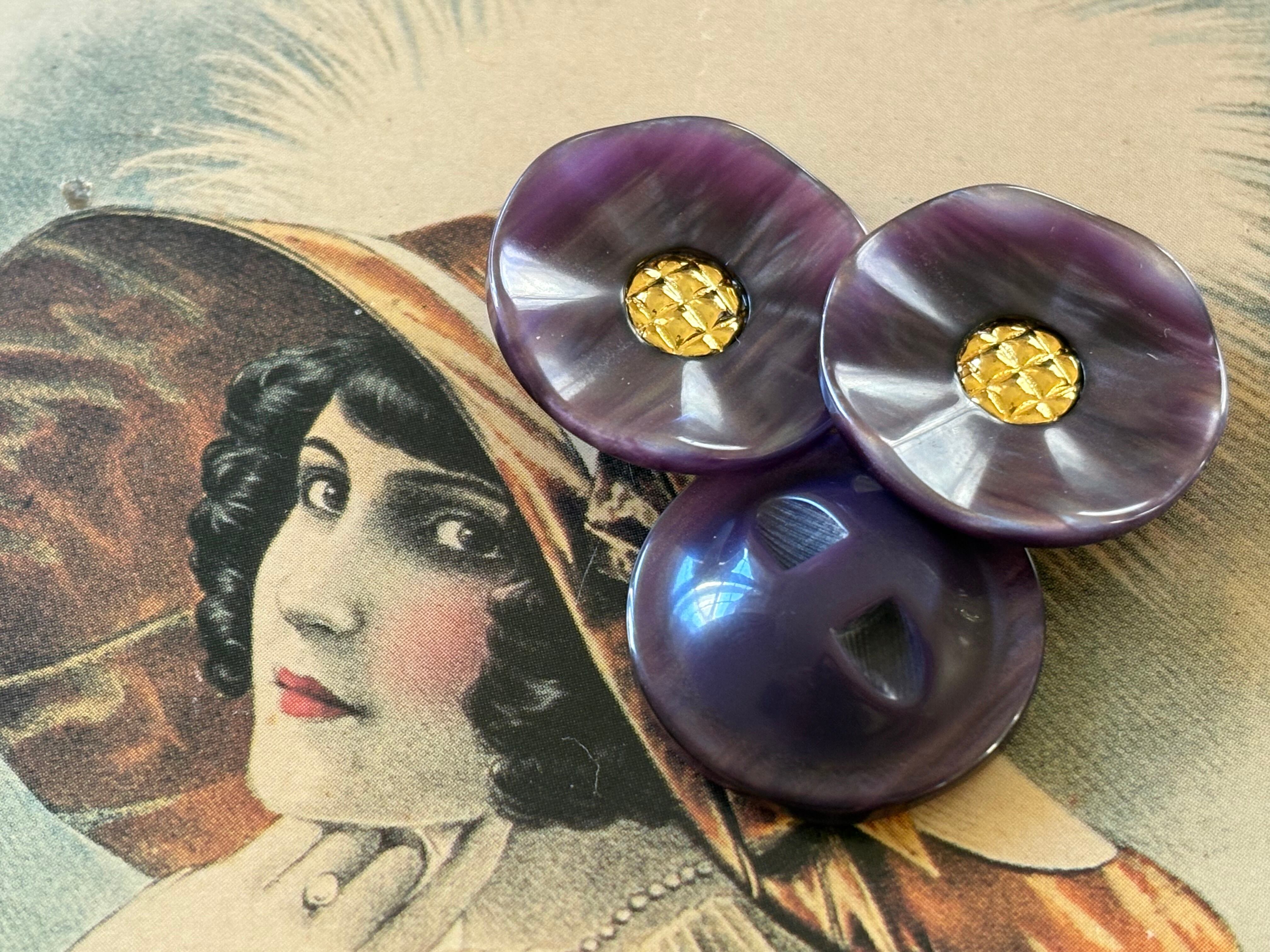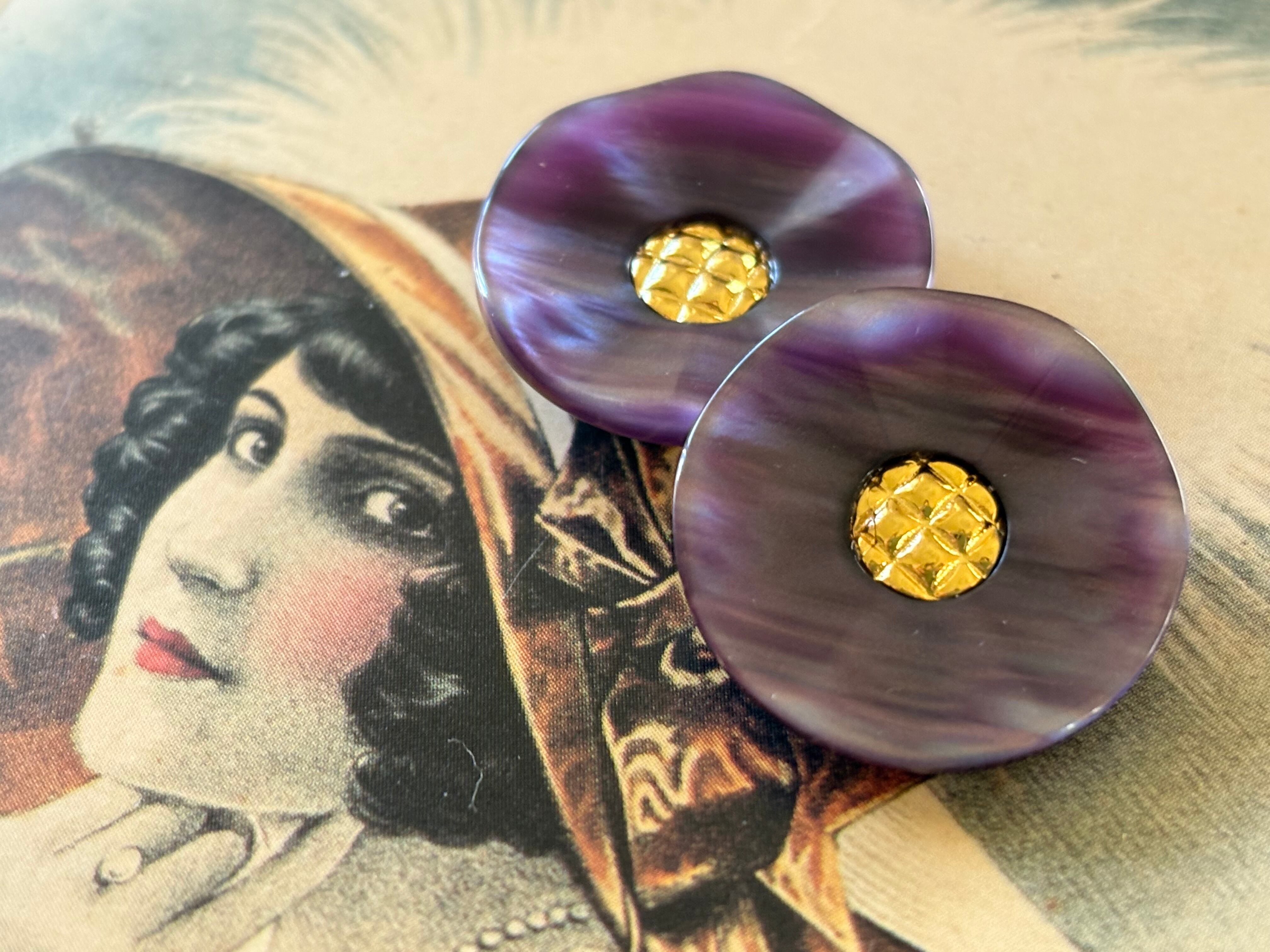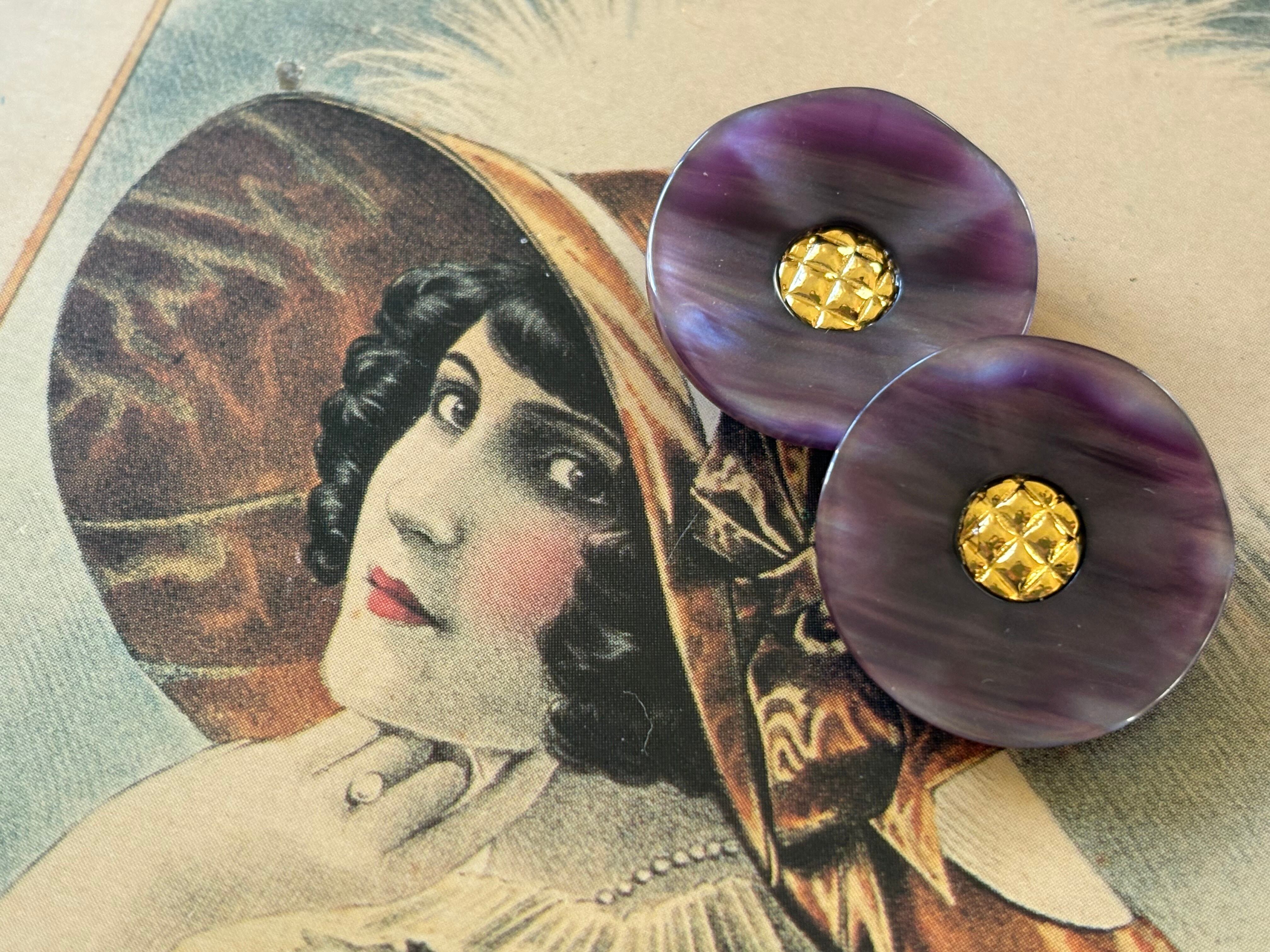 Japanese Vintage ヴィンテージボタン パープル×ゴールド 23mm アクセサリーパーツ 装飾材 カルトナージュ