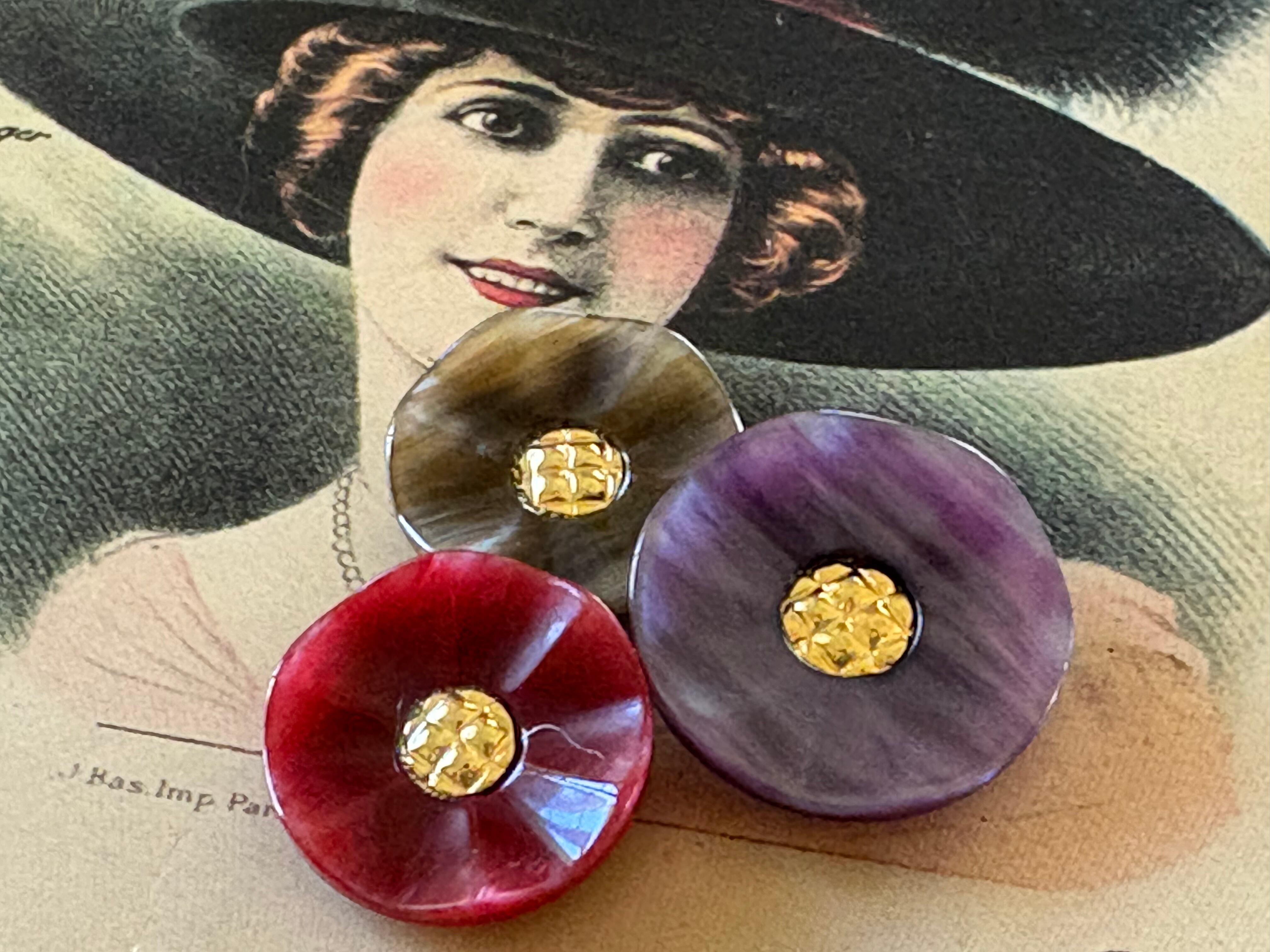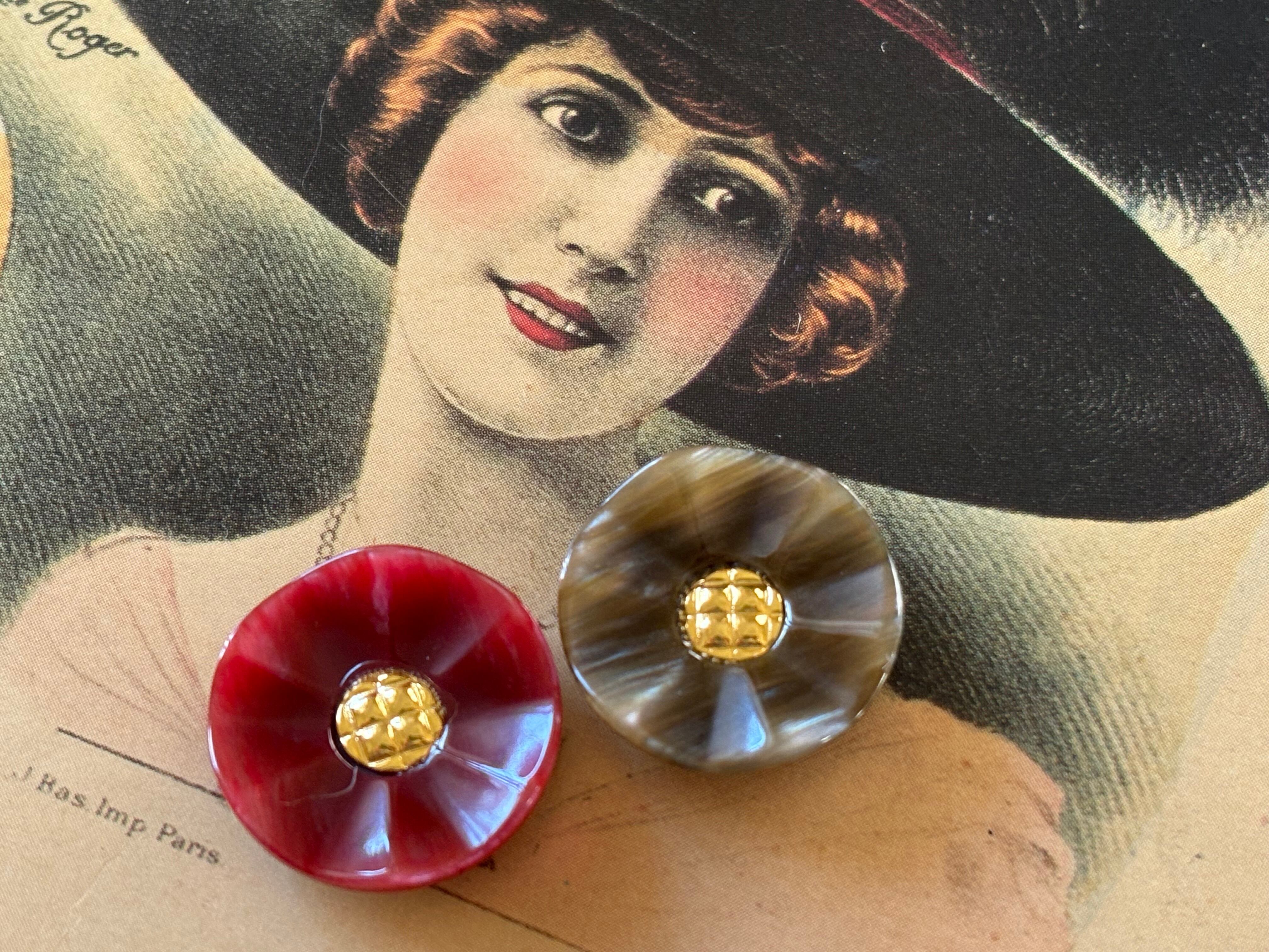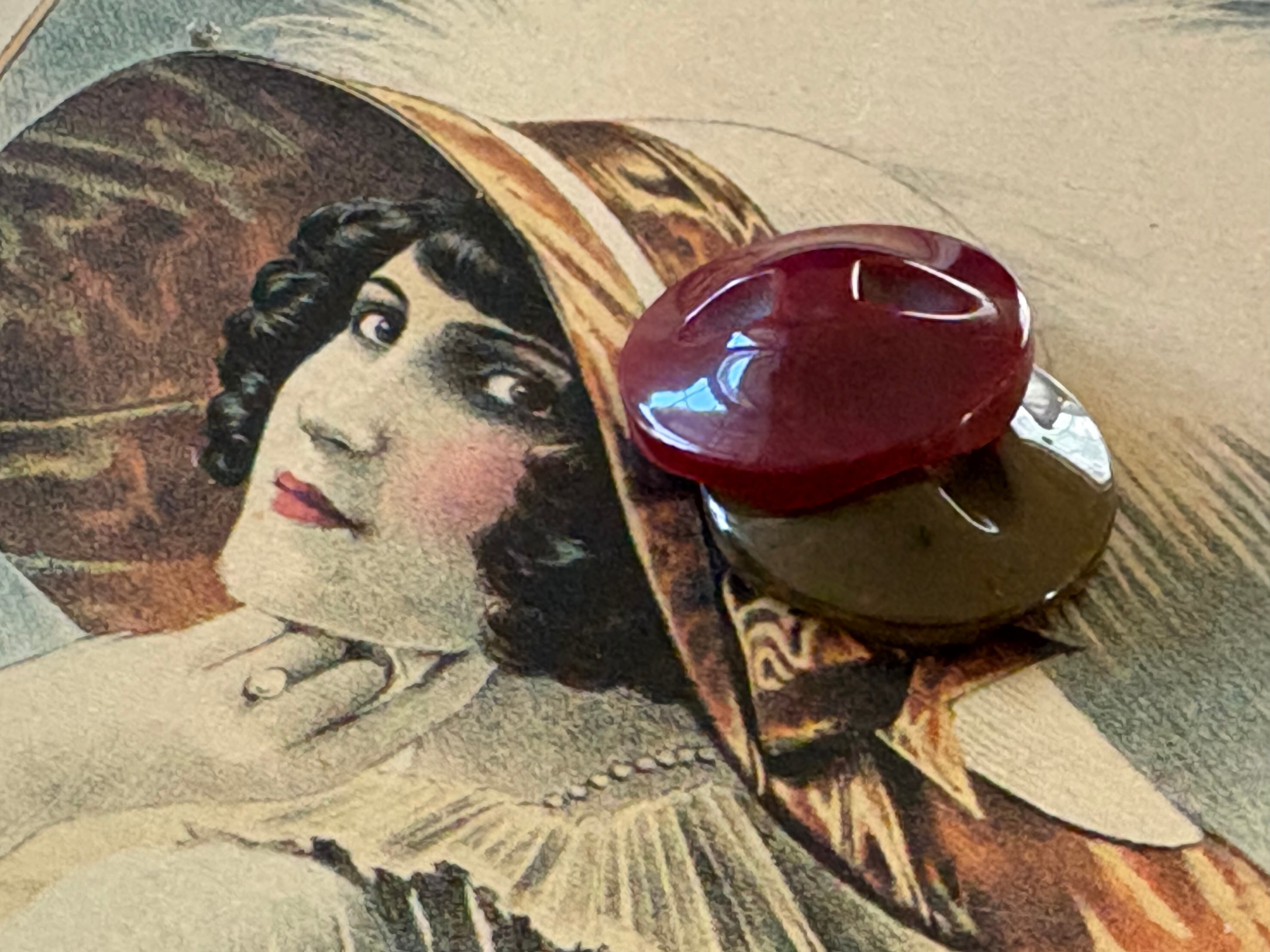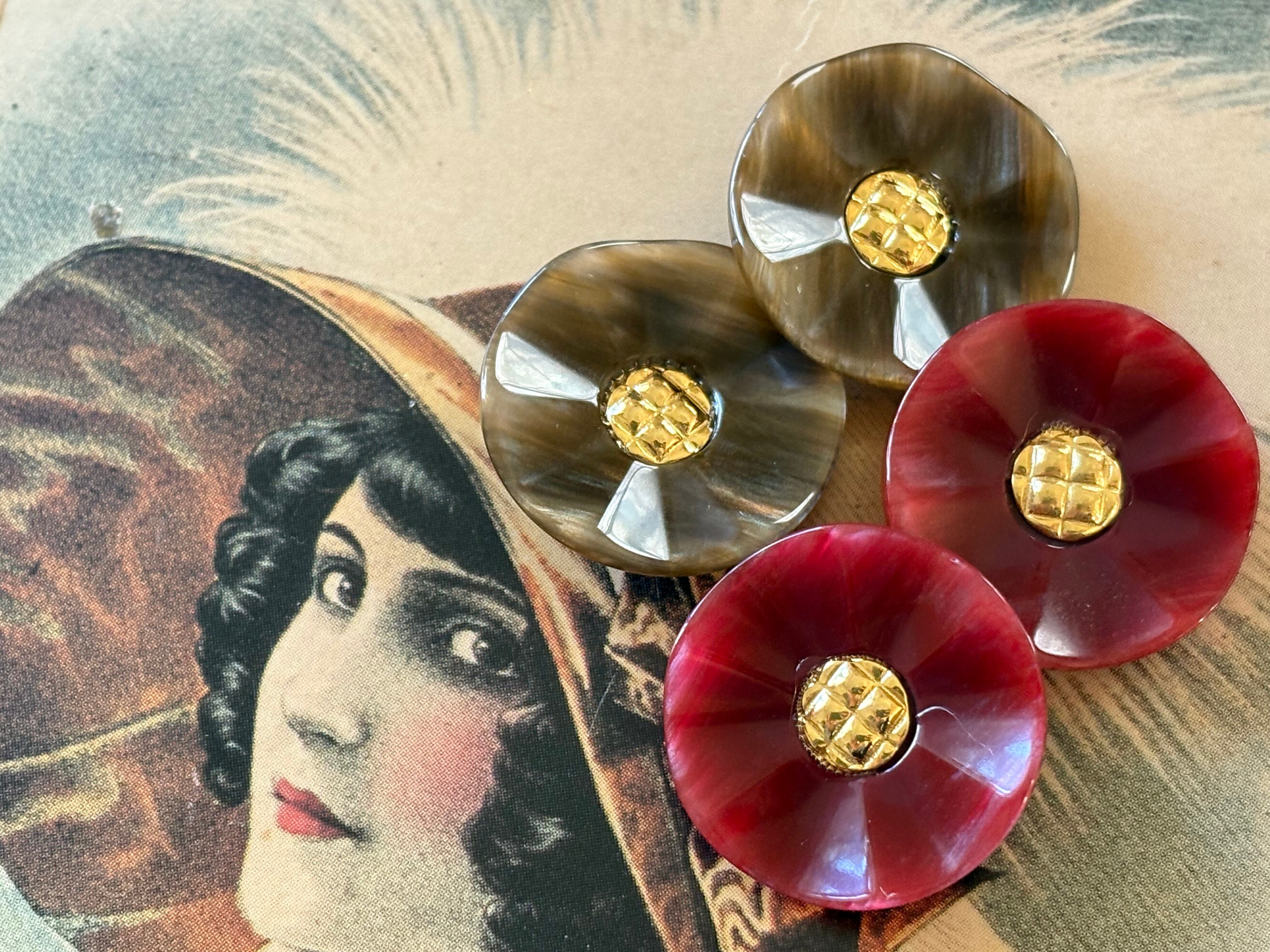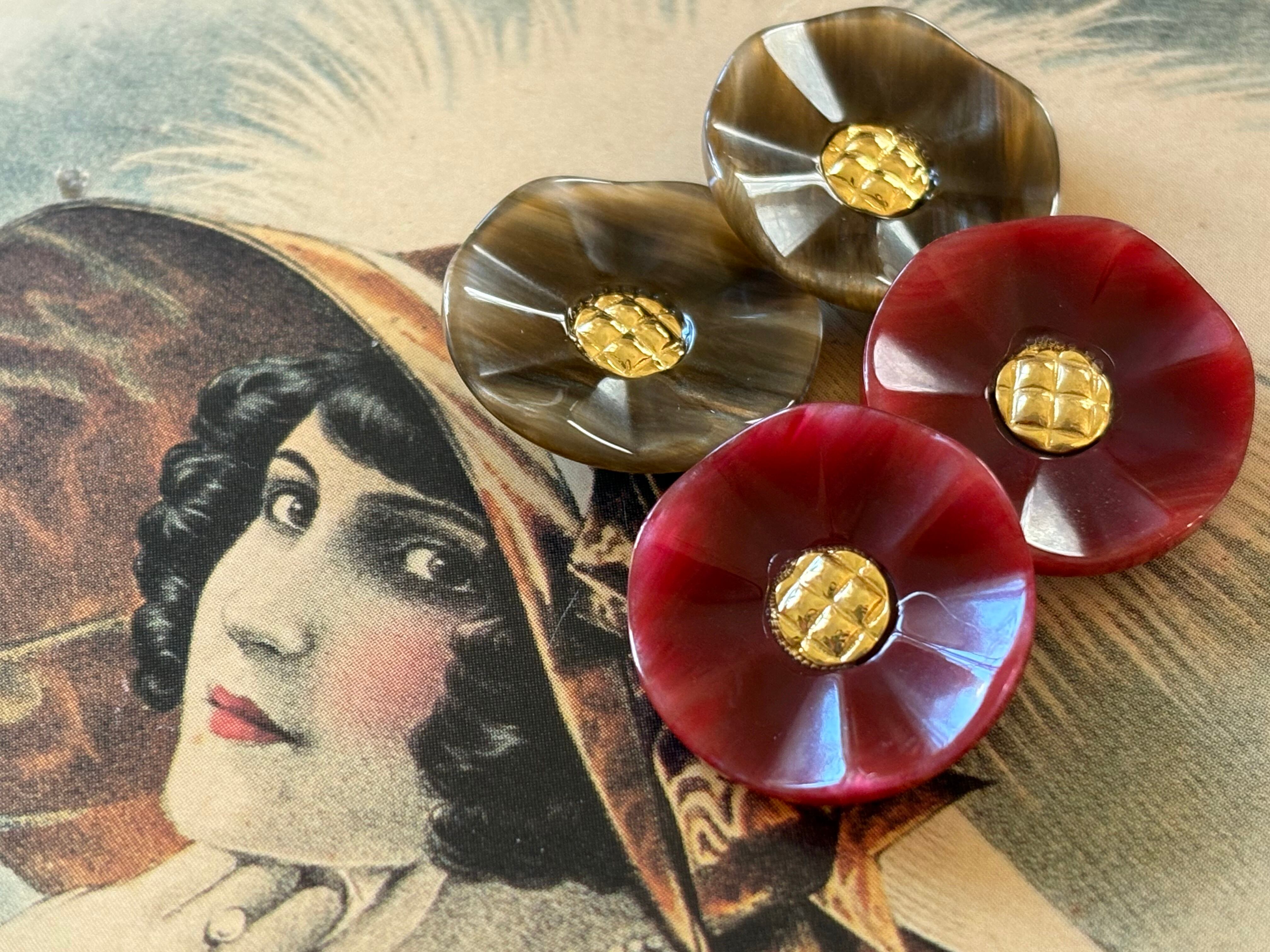 Japanese Vintage ヴィンテージボタン レッド/ブラウン ×ゴールド 20mm アクセサリーパーツ 装飾材 カルトナージュ
