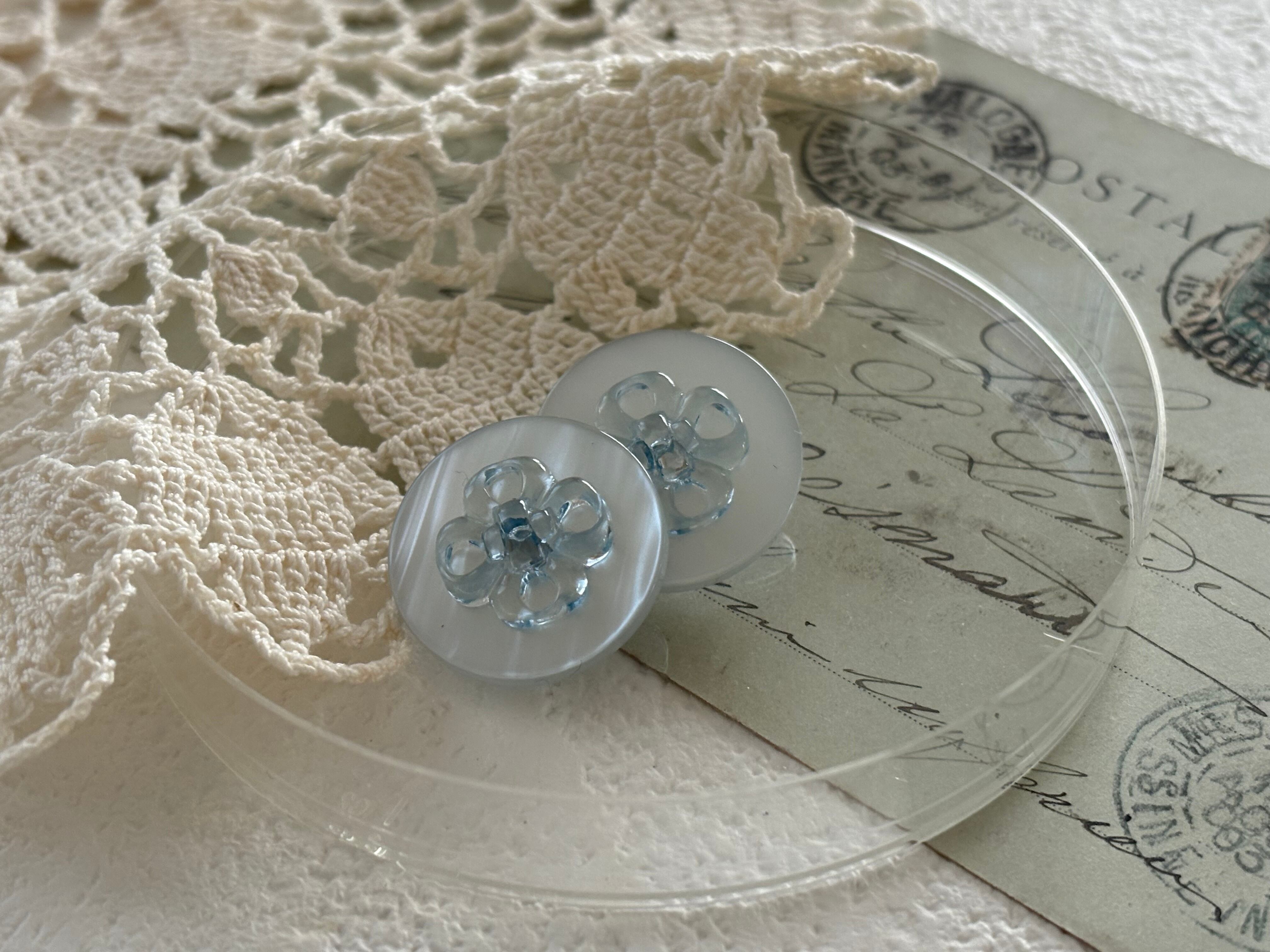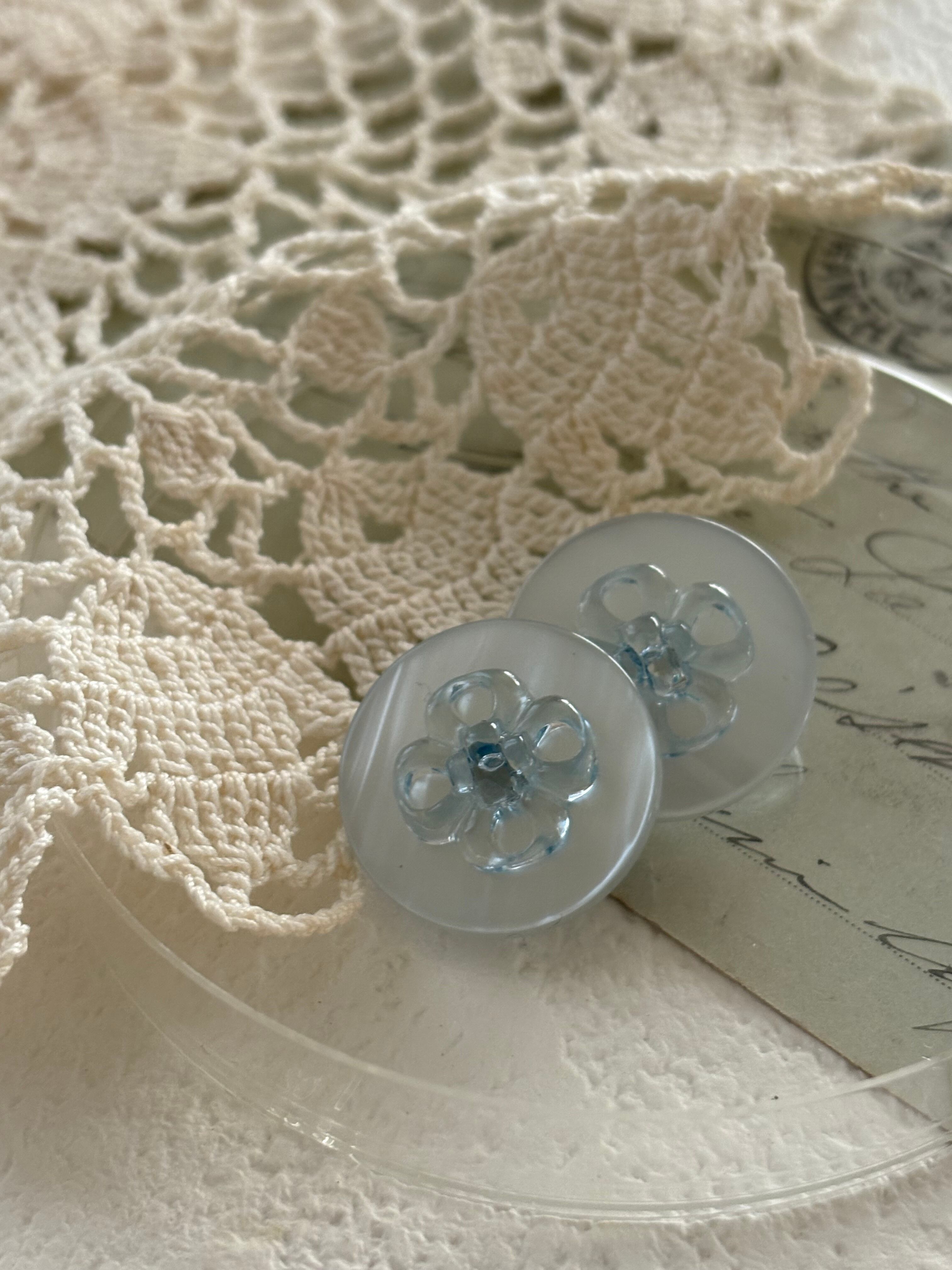 Japanese Vintage ボタン 22mm ライトブルー フラワー アクセサリーパーツ 装飾材 カルトナージュ