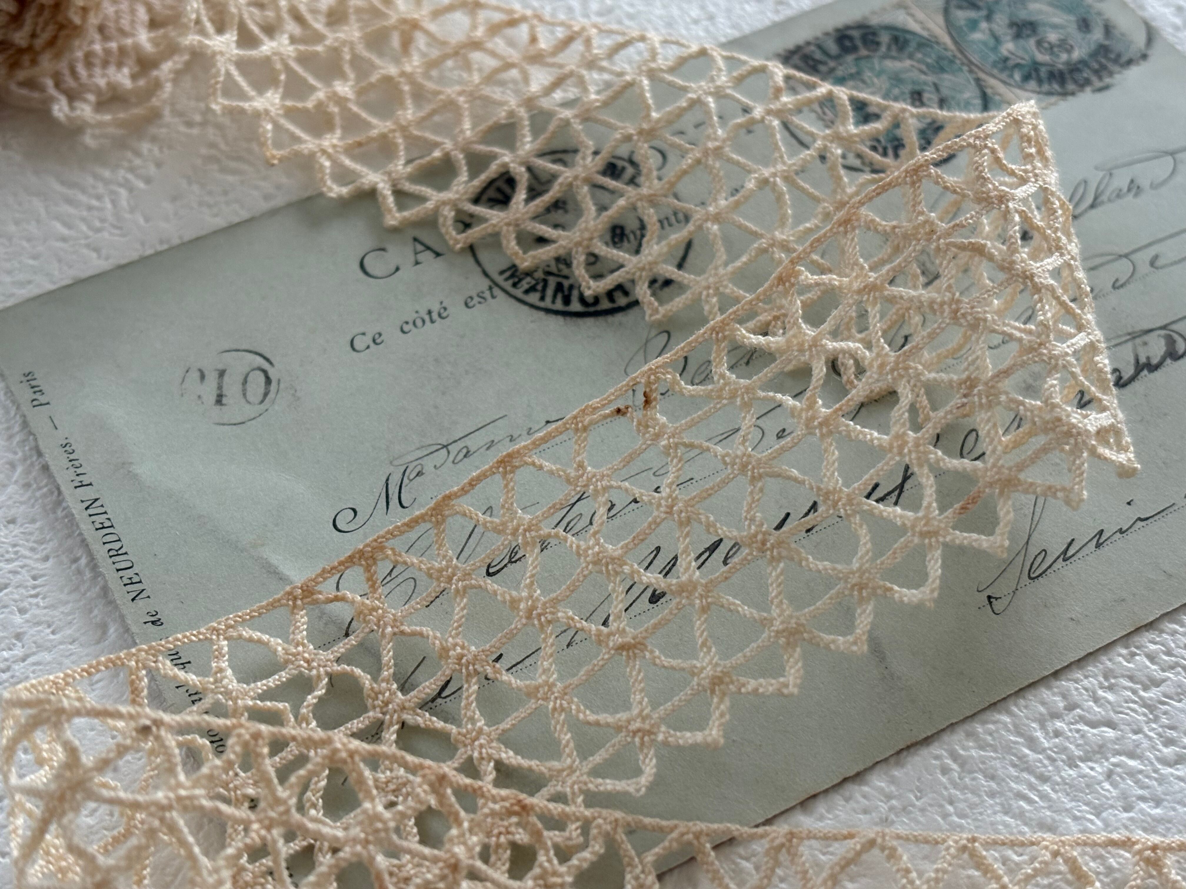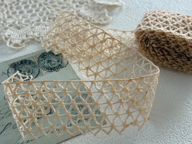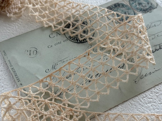 フランスVintage レース トーションレース 50cm/カット 幅37mm エクリュ カルトナージュ デコレーション材