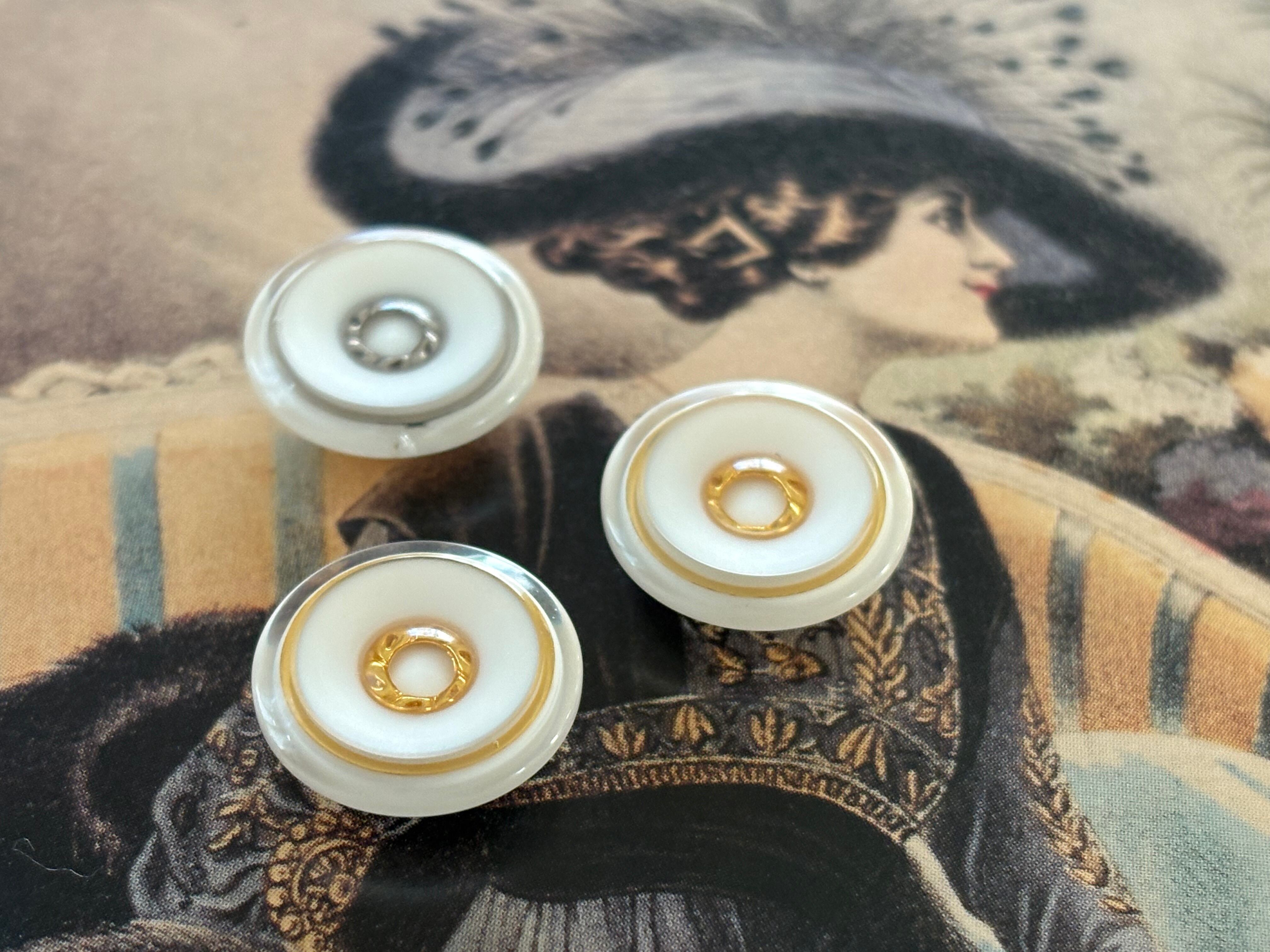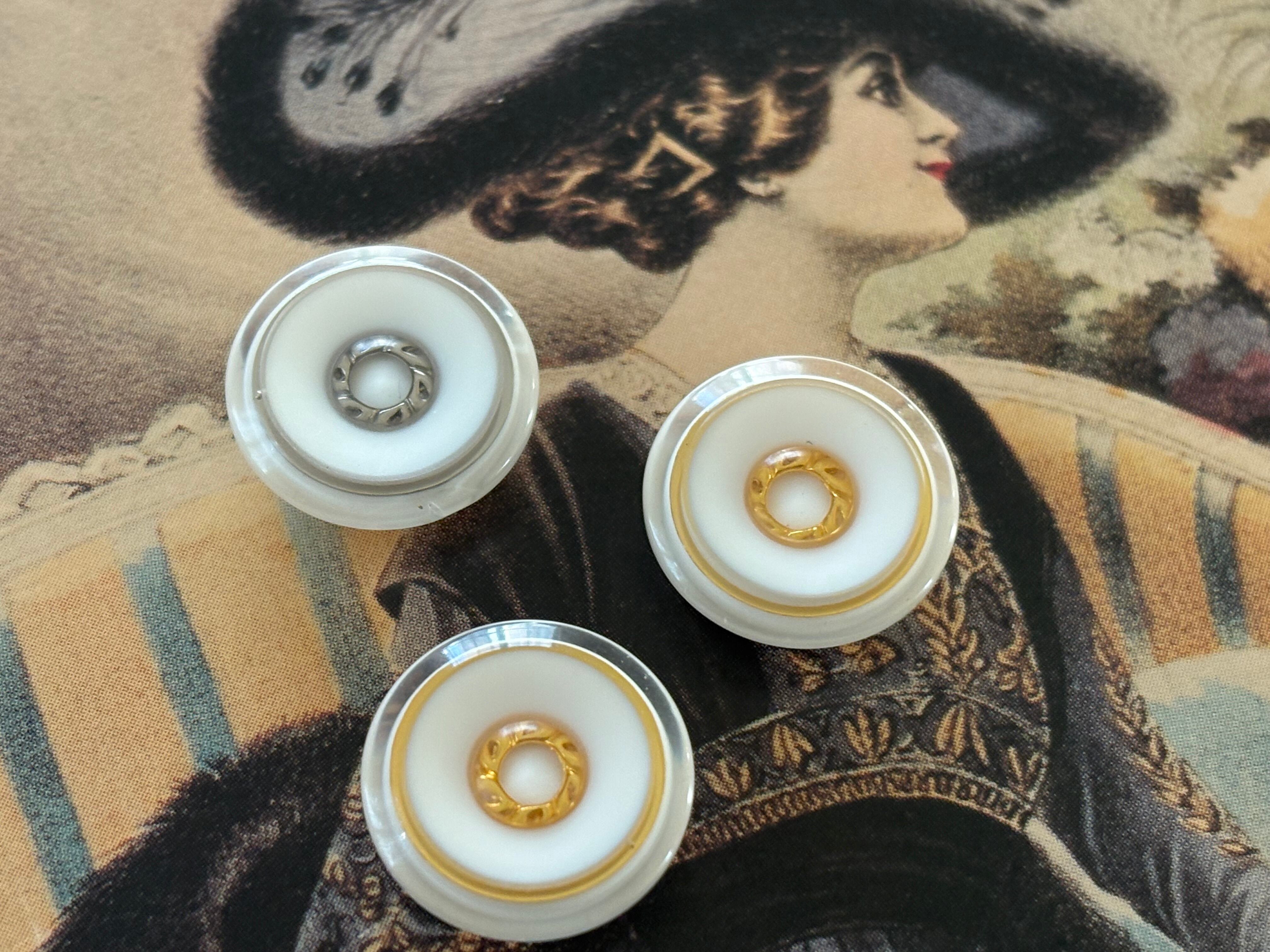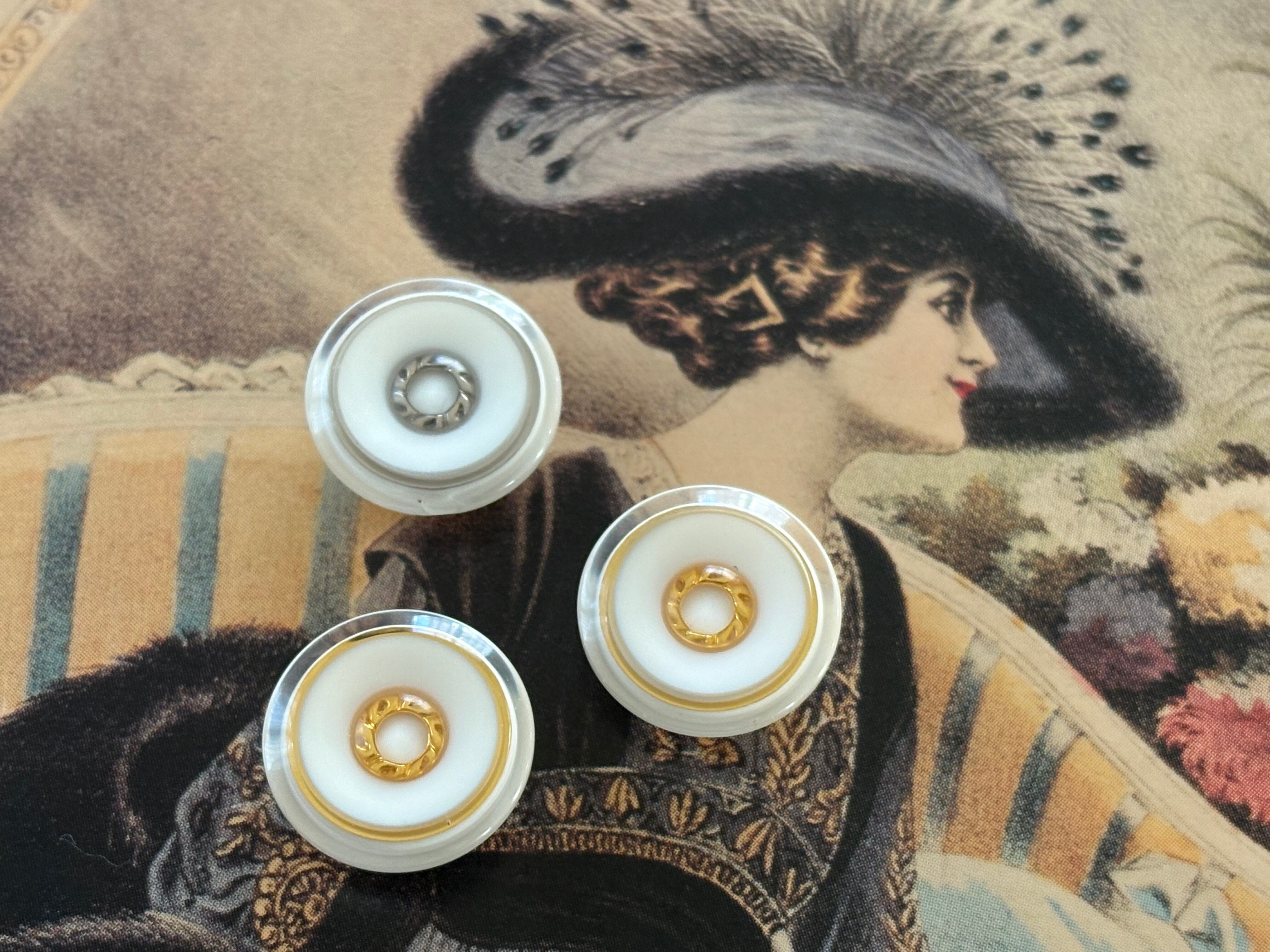 Japanese Vintage ボタン 15mm ホワイト×シルバー/ゴールド 樹脂ボタン 昭和レトロ アクセサリーパーツ 装飾材 カルトナージュ