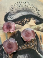 すりガラスのようなピンク色のレトロ可愛いボタンです。