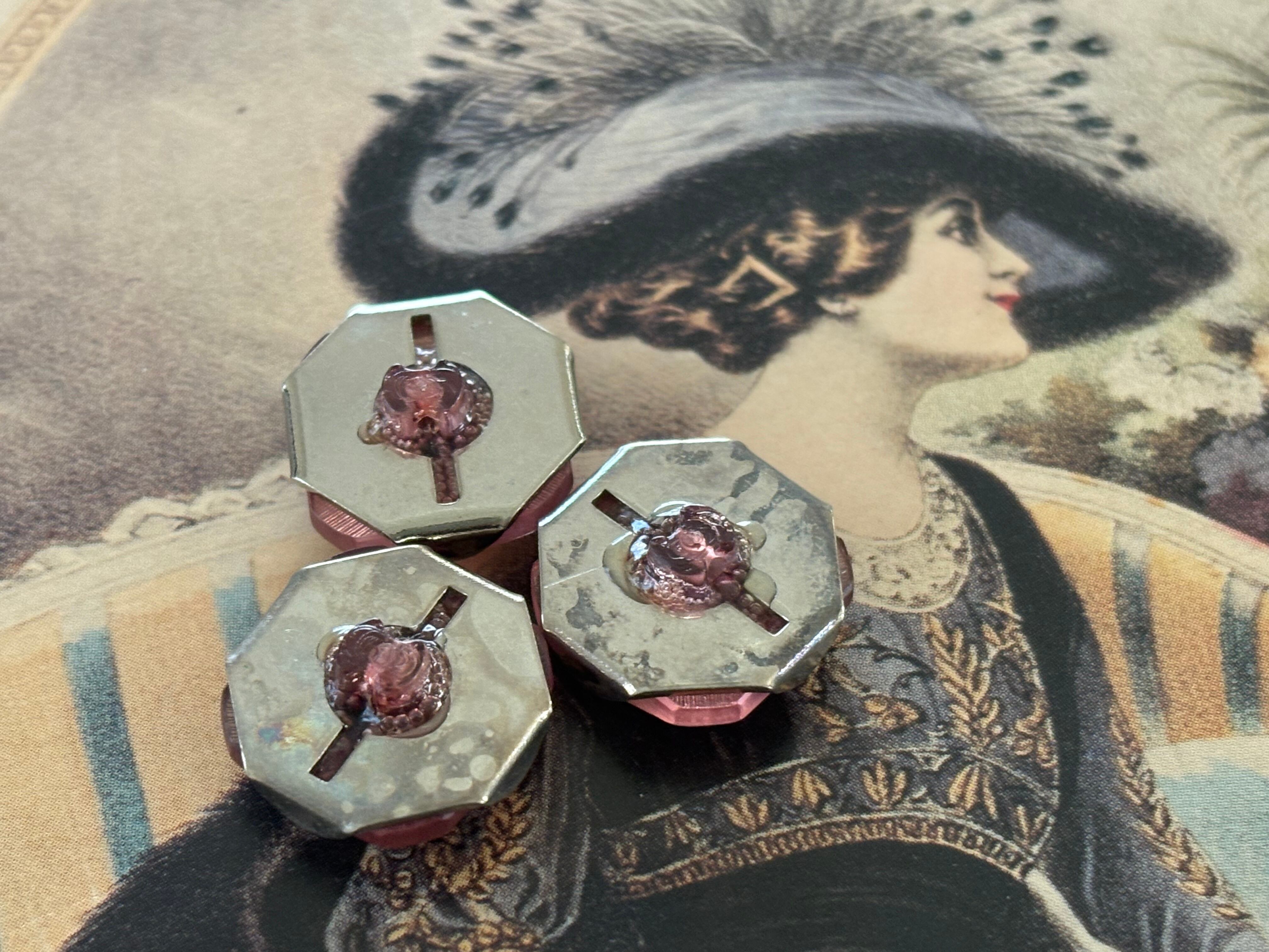 Japanese Vintage ボタン ピンク×シルバー フロスト 15mm カボション 昭和レトロ アクセサリーパーツ 装飾材 カルトナージュ