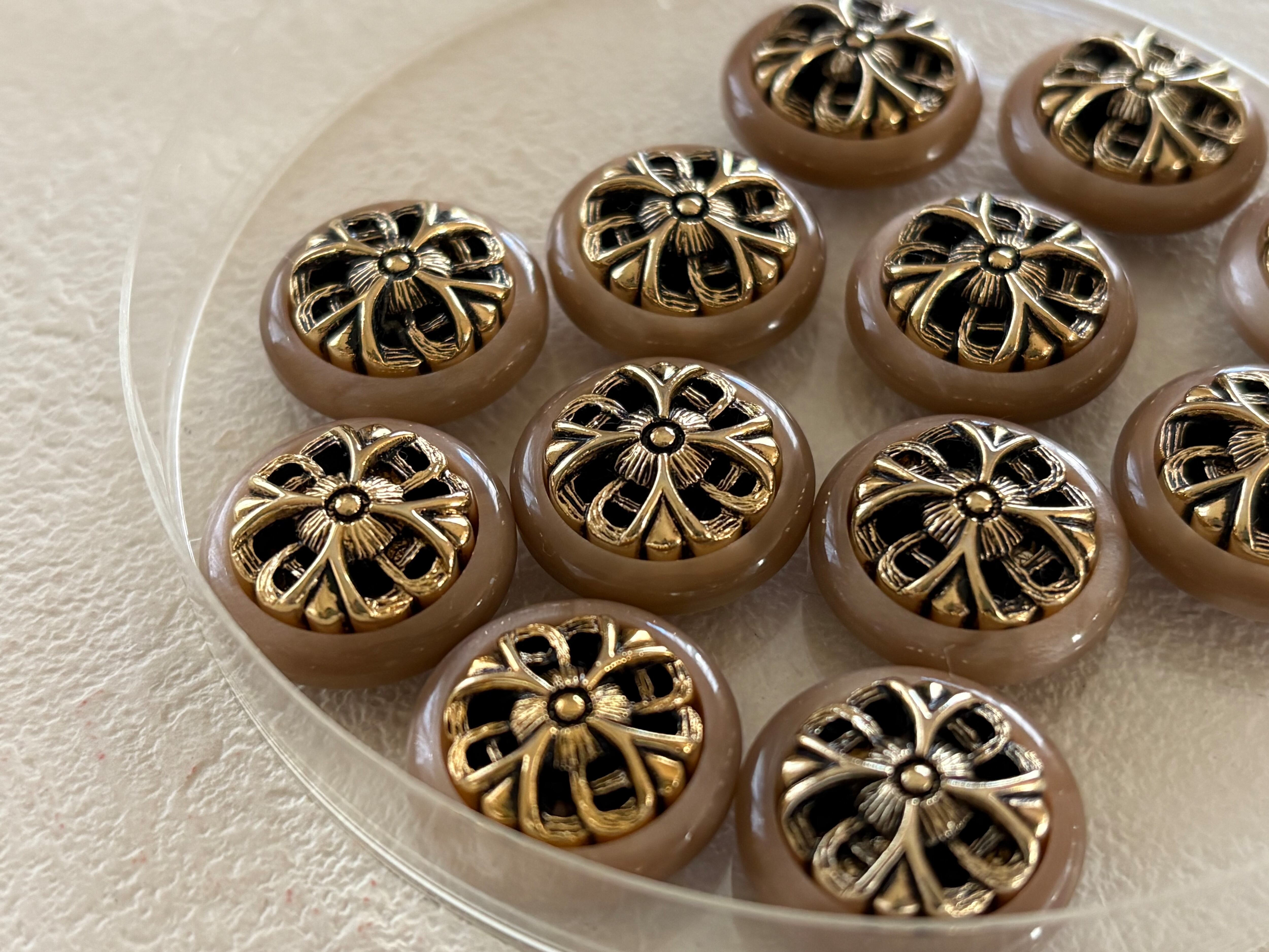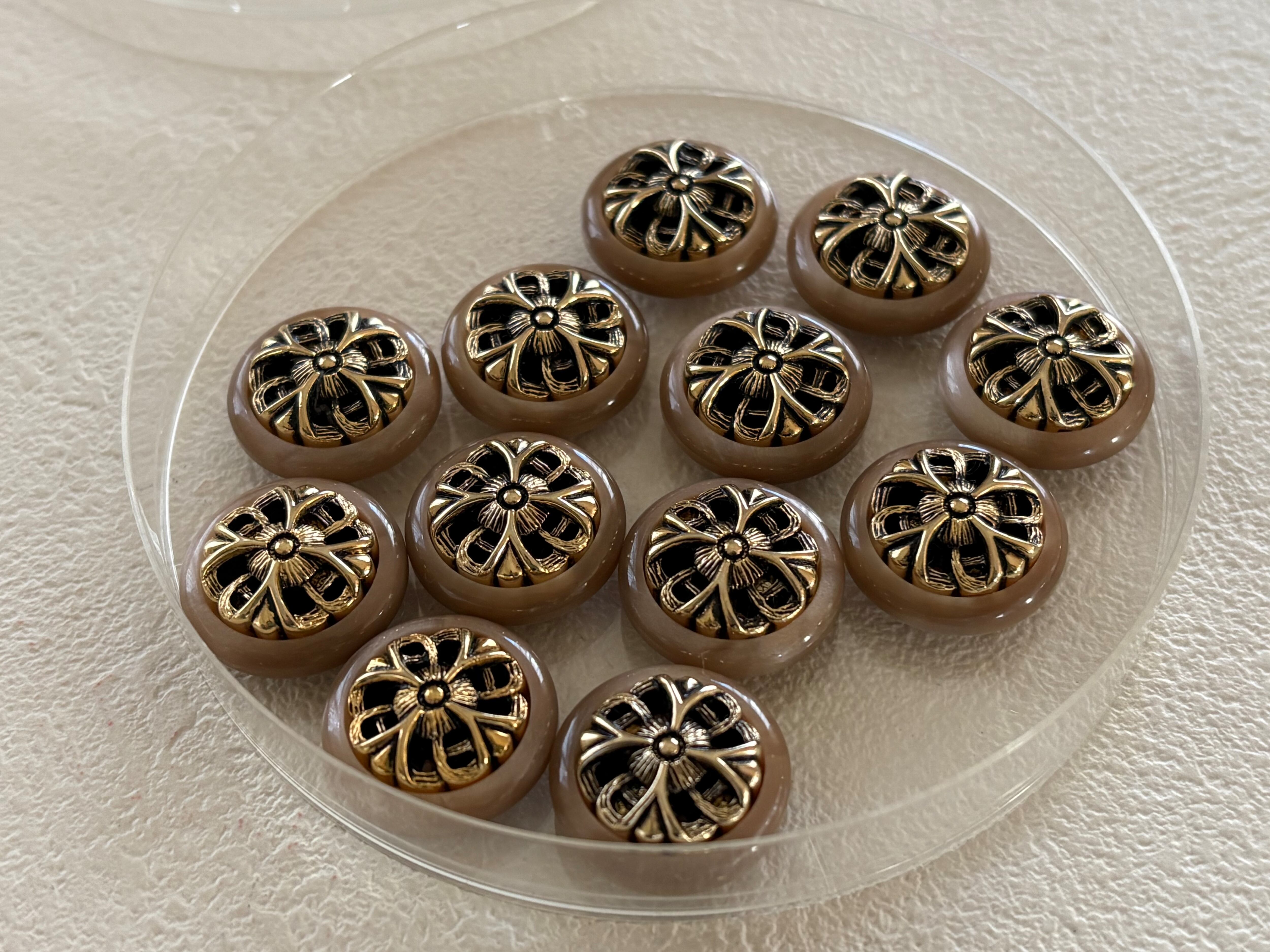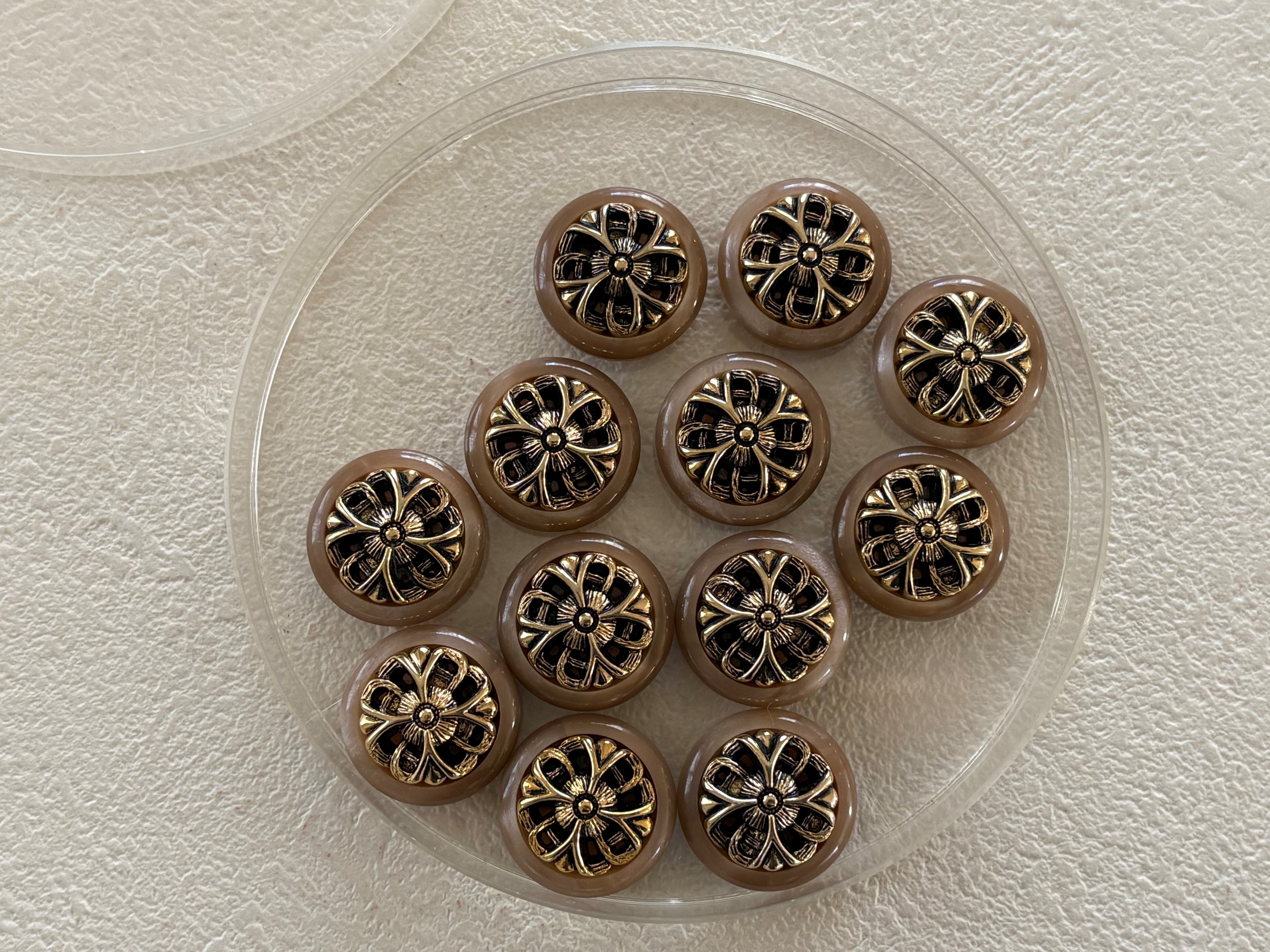 Japanese Vintage ボタン 17mm ピンクベージュ×ゴールド マーブル メダリオン アクセサリーパーツ 樹脂 装飾材 カルトナージュ