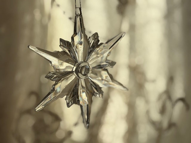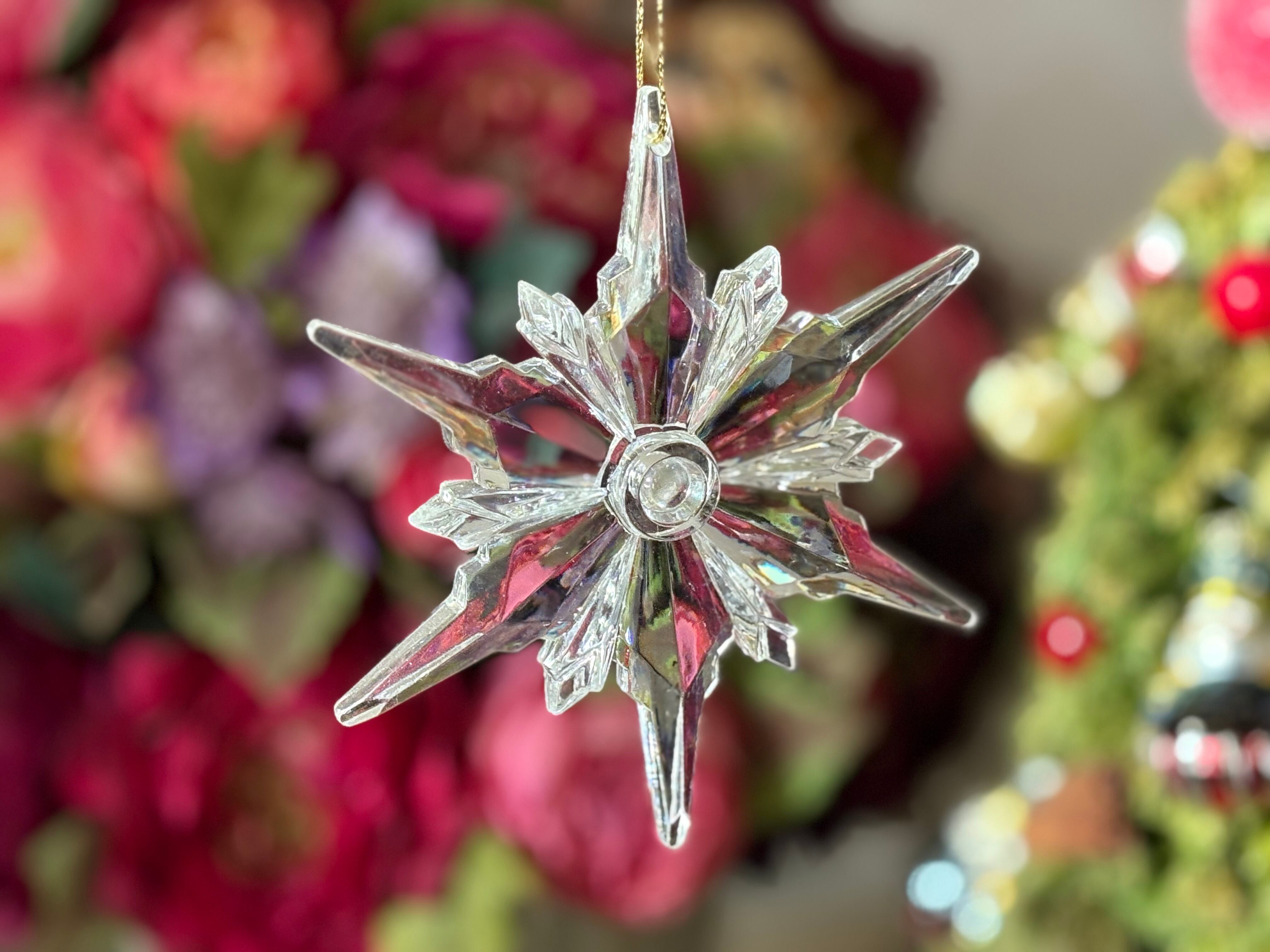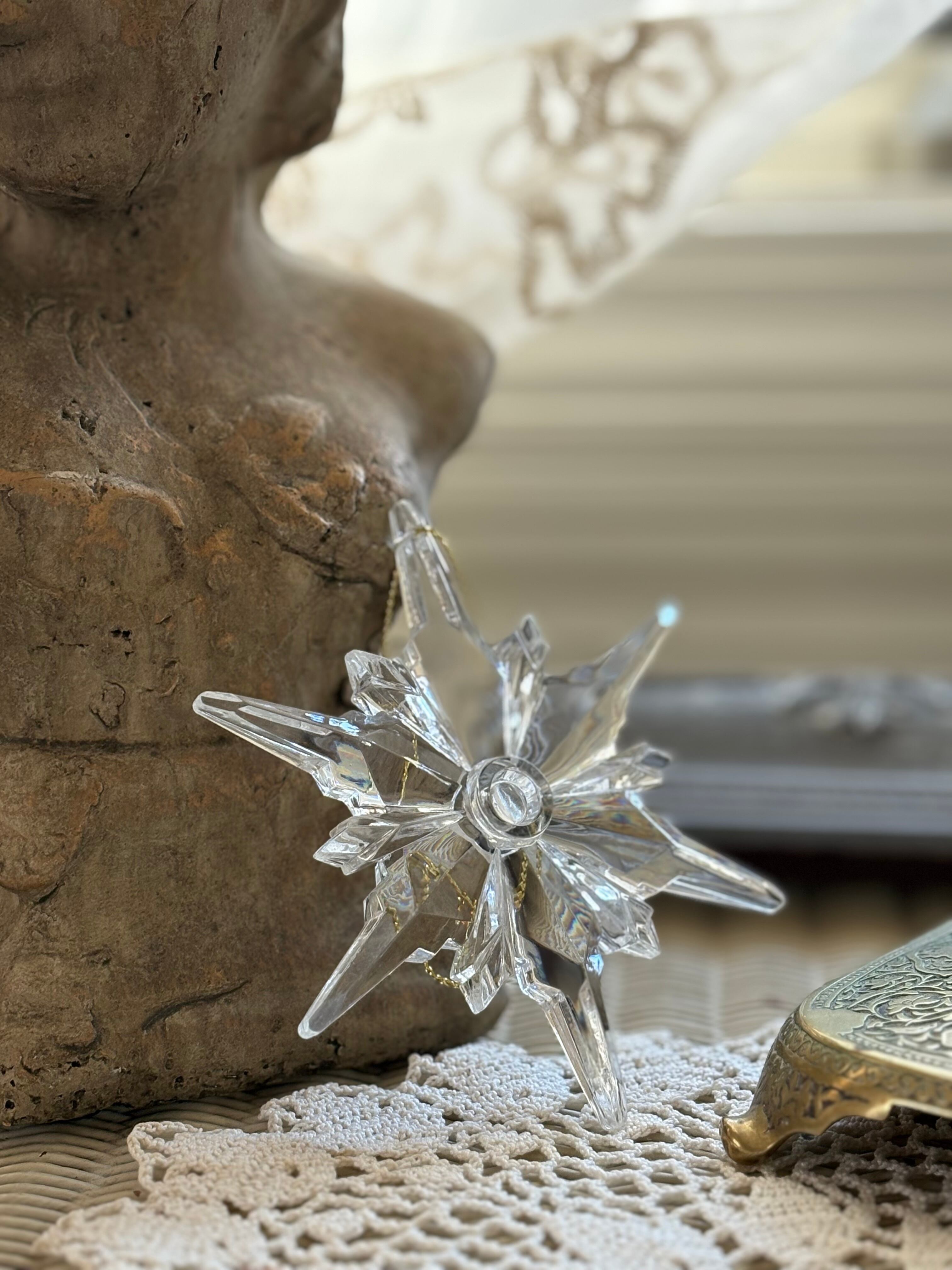 カットの美しい存在感のあるスノーフレイク型のオーナメントになります。