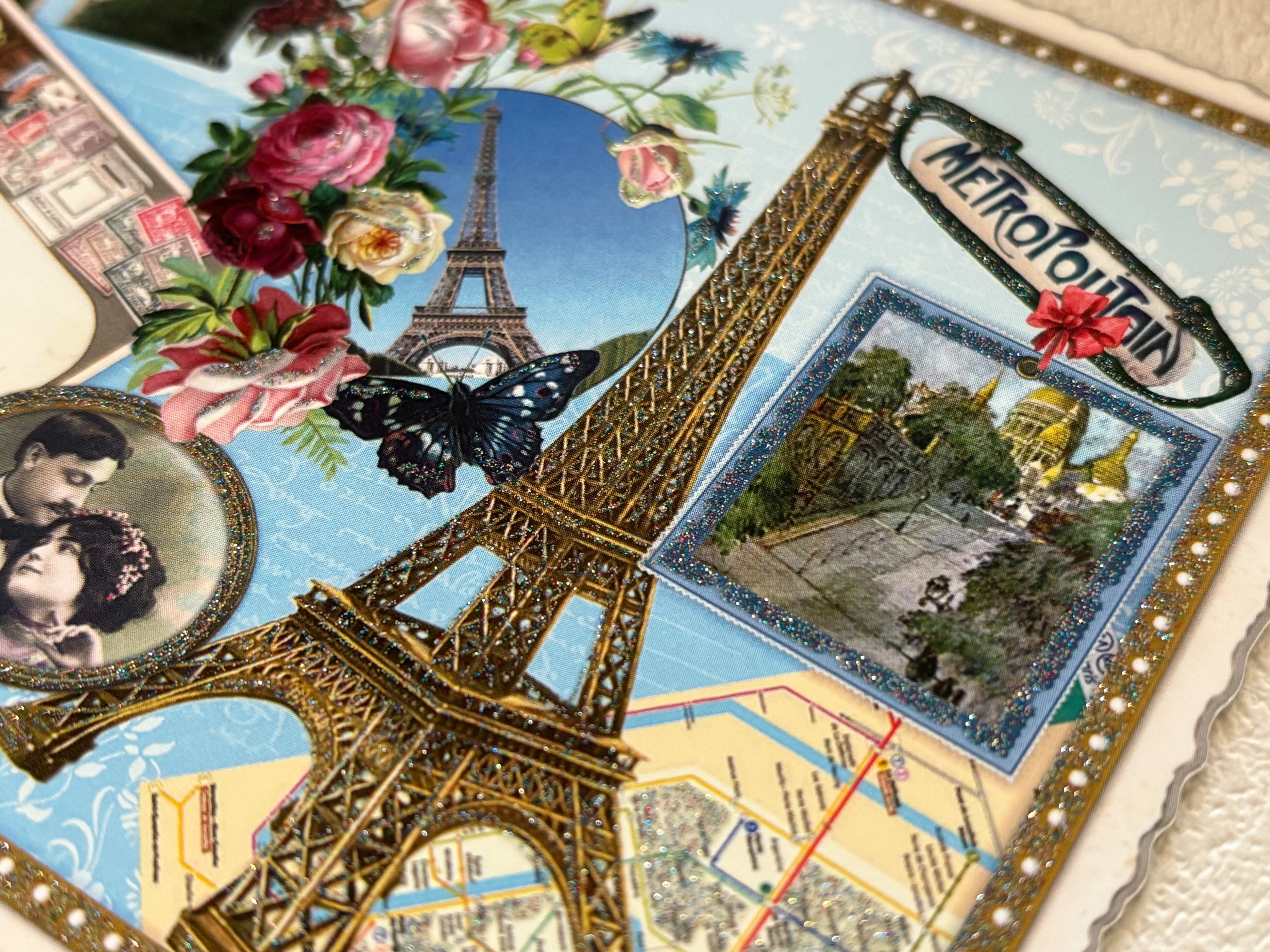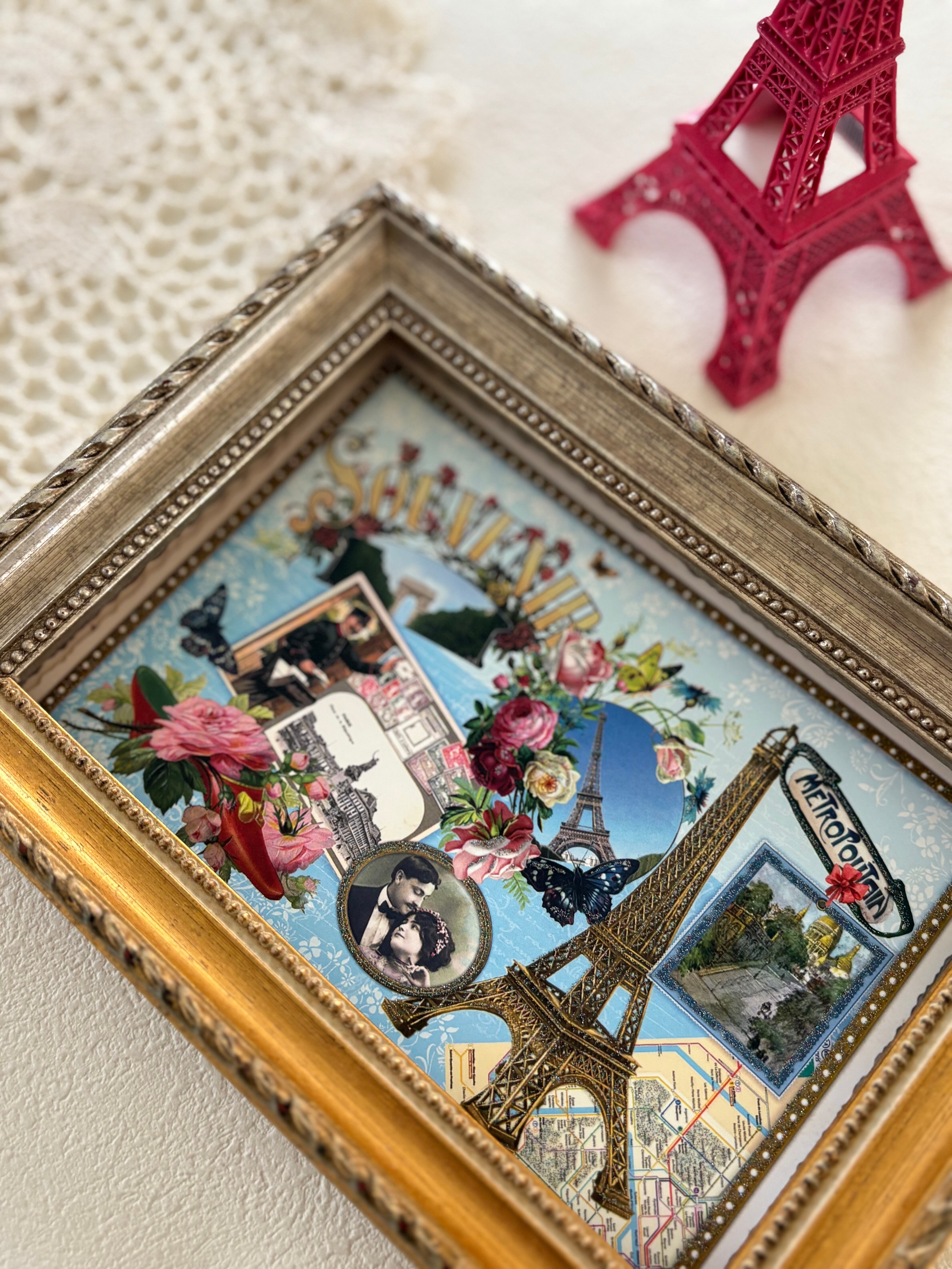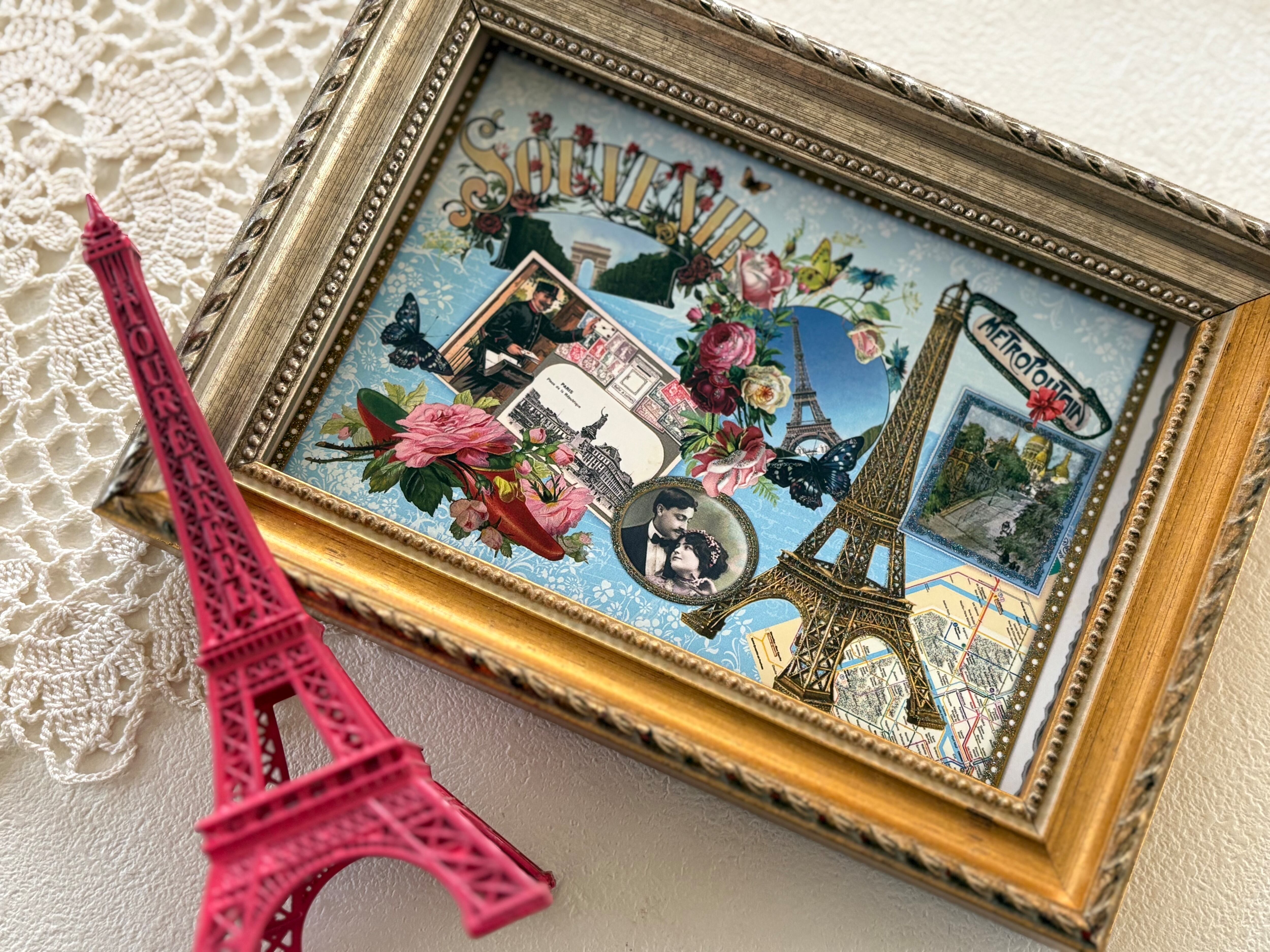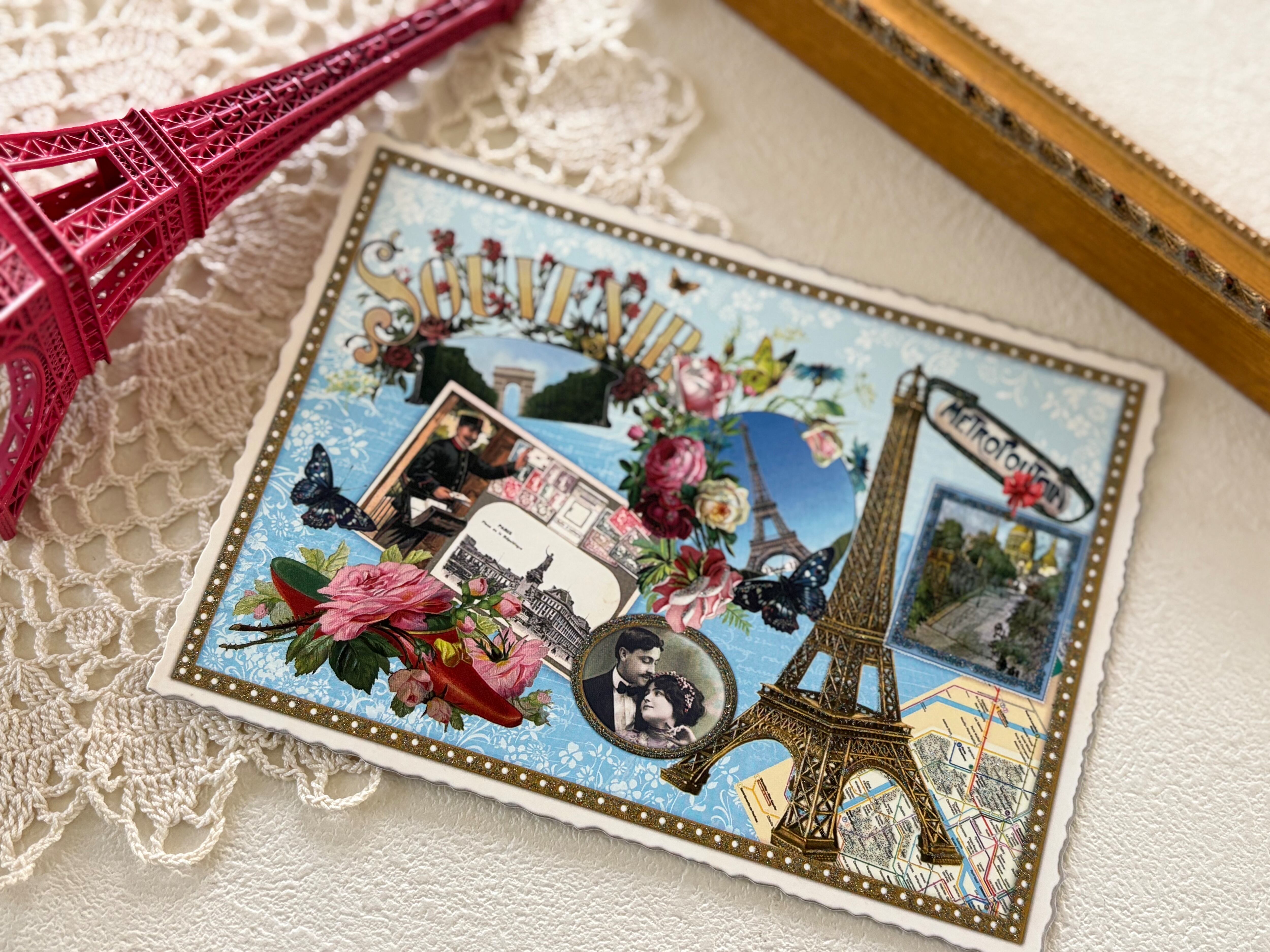 フランス雑貨 ポストカード C エッフェル塔 Rose パピヨン サクレクール 凱旋門 グリッター 額装 インテリア小物 文具
