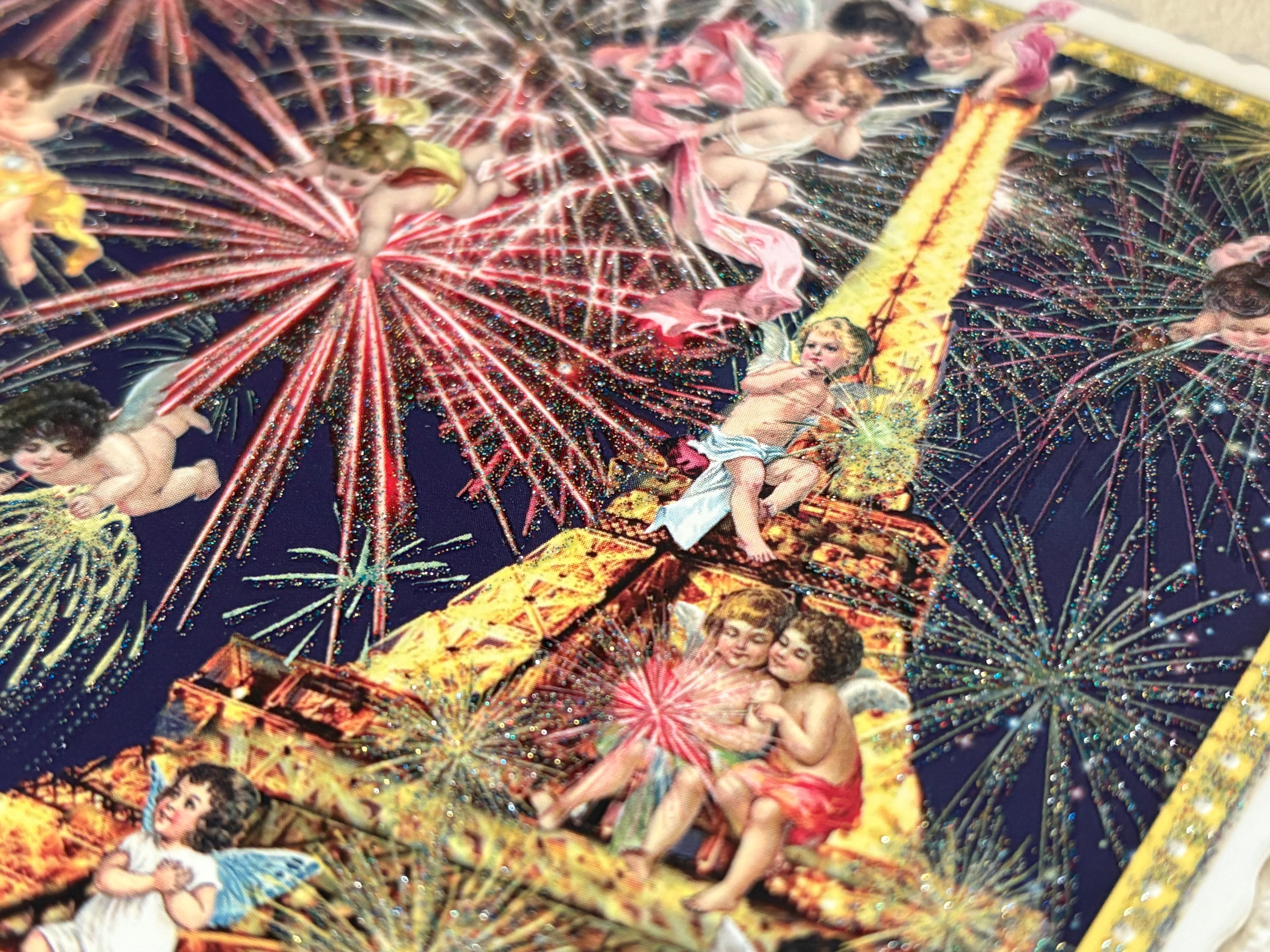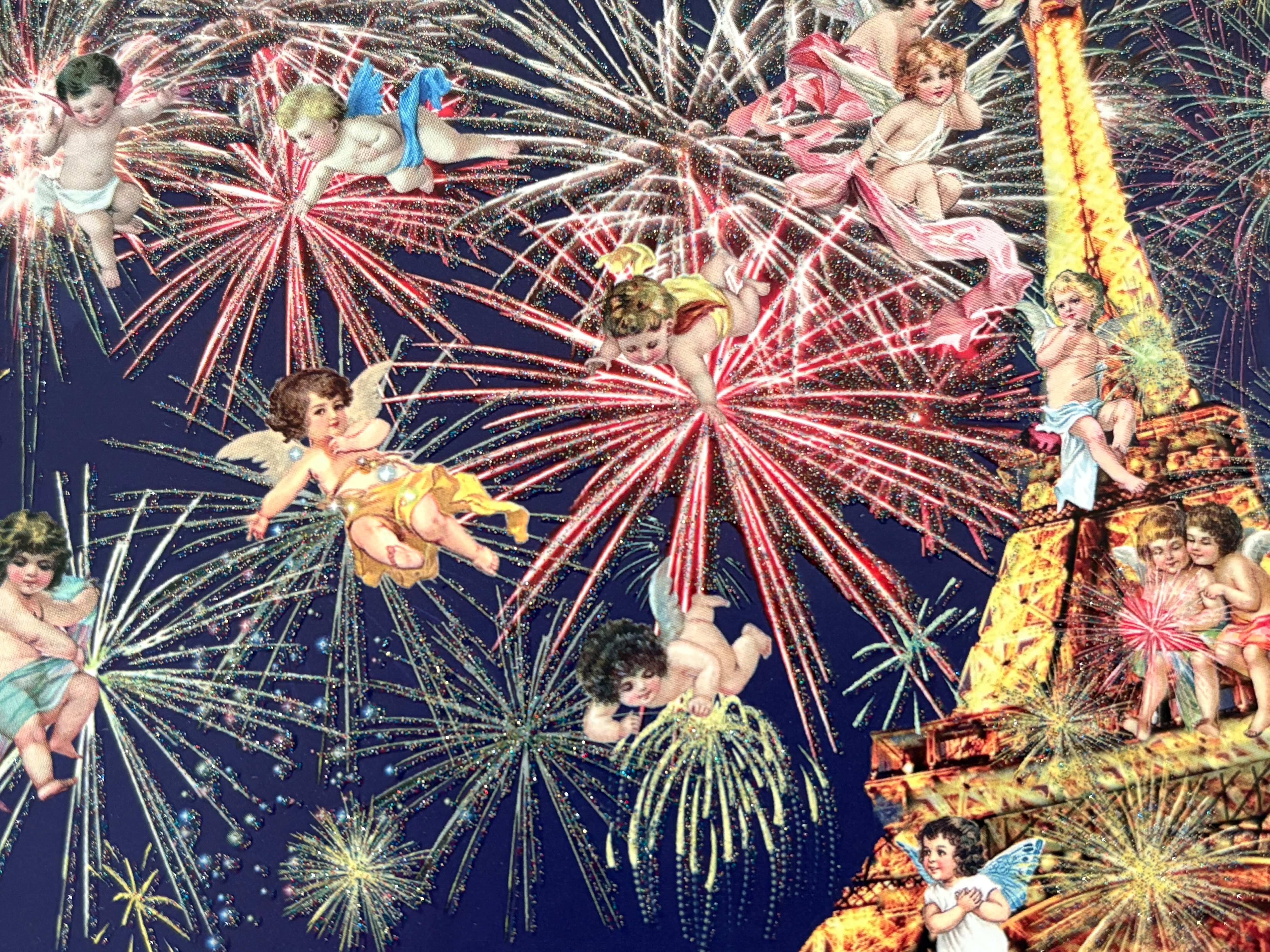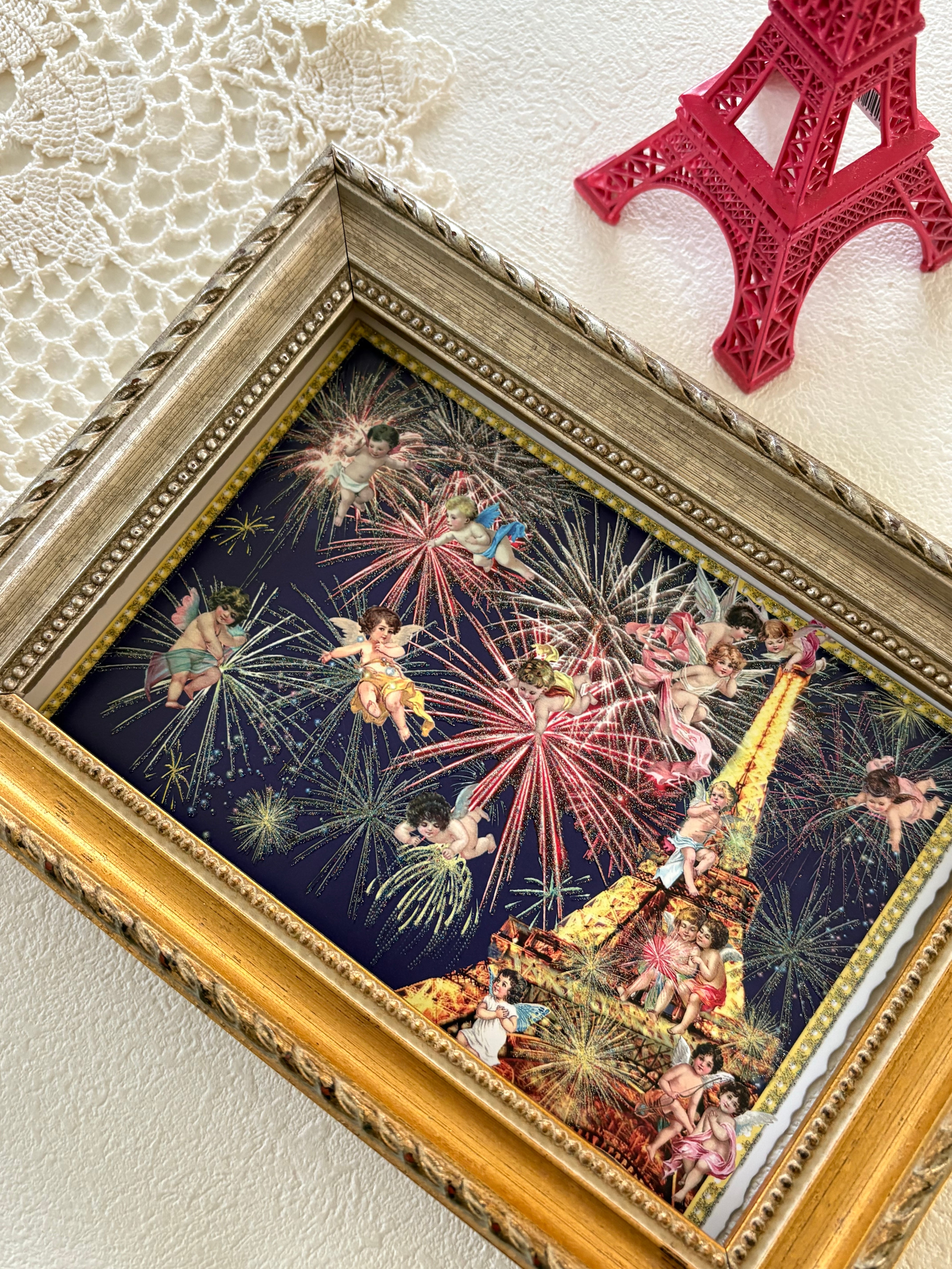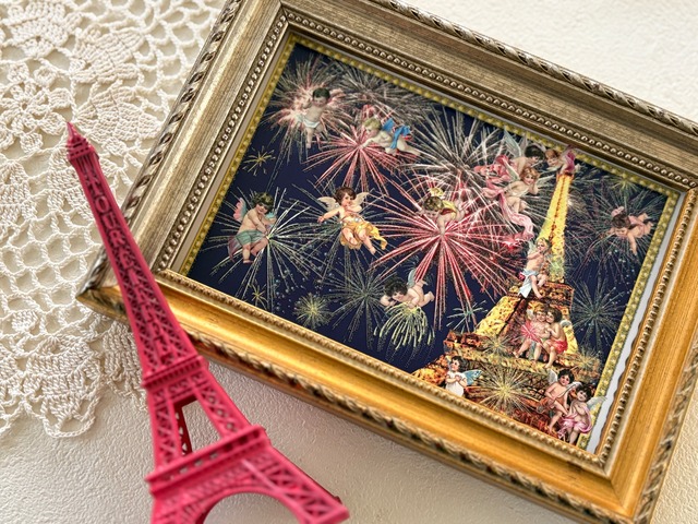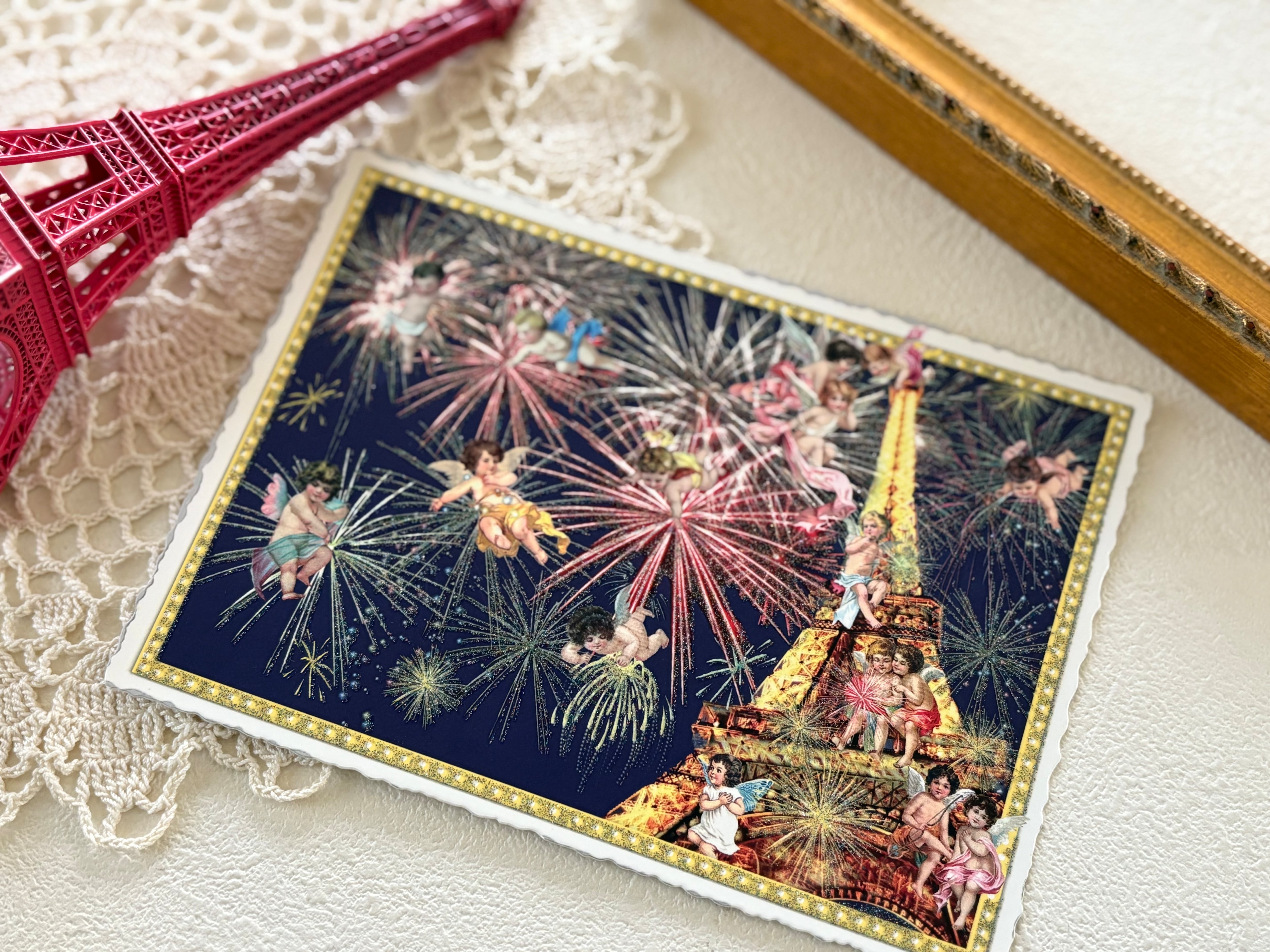 エッフェル塔、エッフェル塔を背景に打ち上がった華やかな花火。可愛い天使たち。華やかで美しい素敵なアイテムが詰まった1枚です。