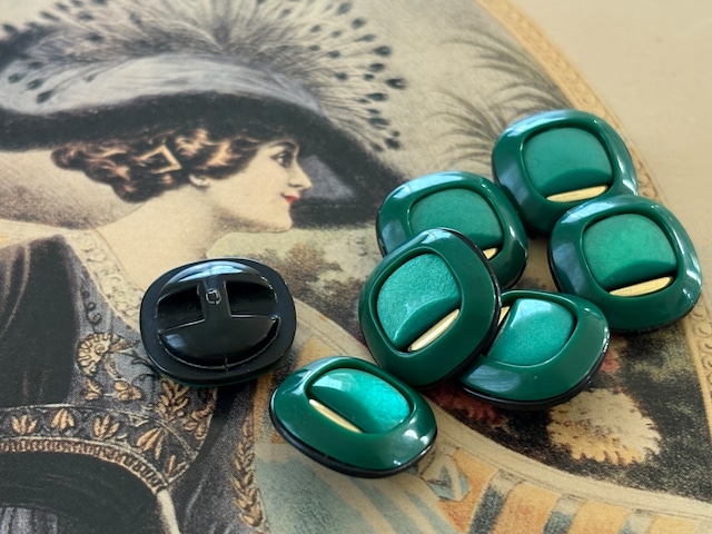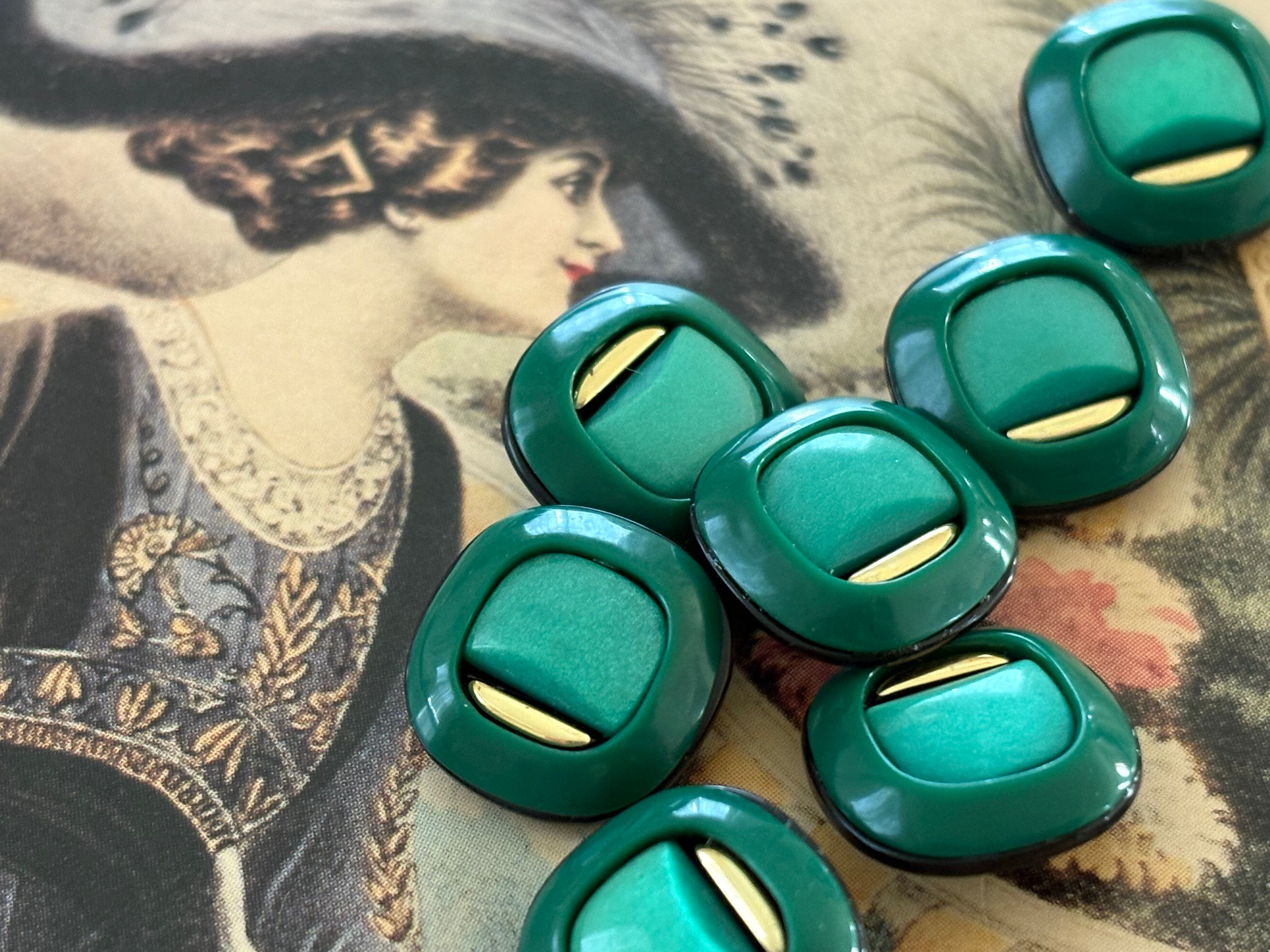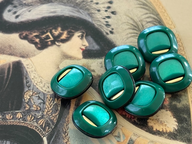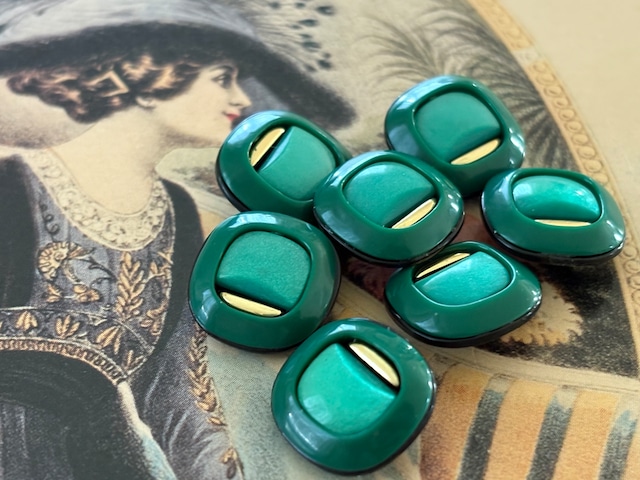 Japanese Vintage ボタン 13mm buttonグリーン×ゴールド カボション アクセサリーパーツ プラスチック 装飾材 カルトナージュ