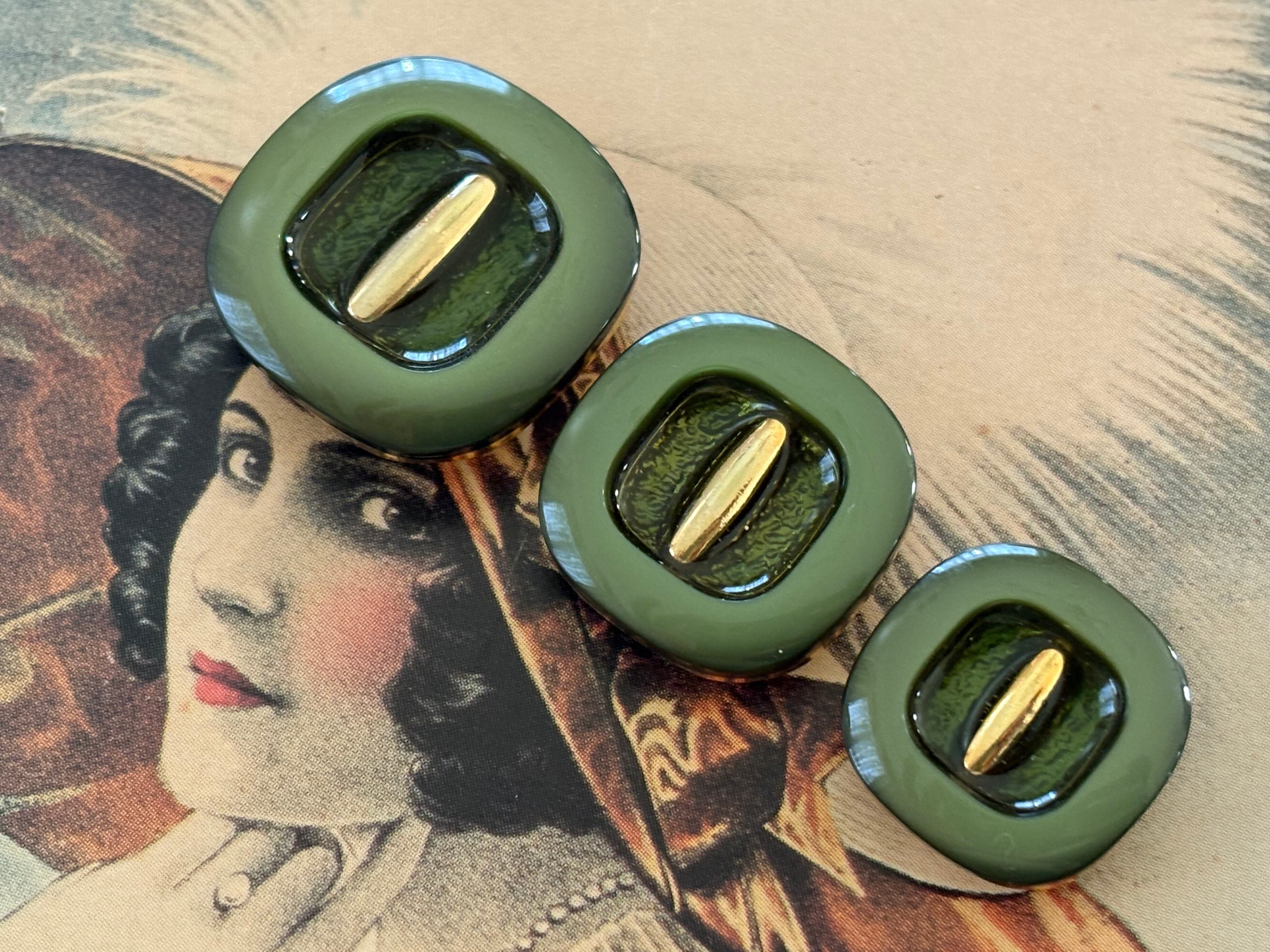 Japanese Vintage ボタン 17mm 樹脂ボタン グリーン系 スクウェア 昭和レトロ アクセサリーパーツ 装飾材 カルトナージュ