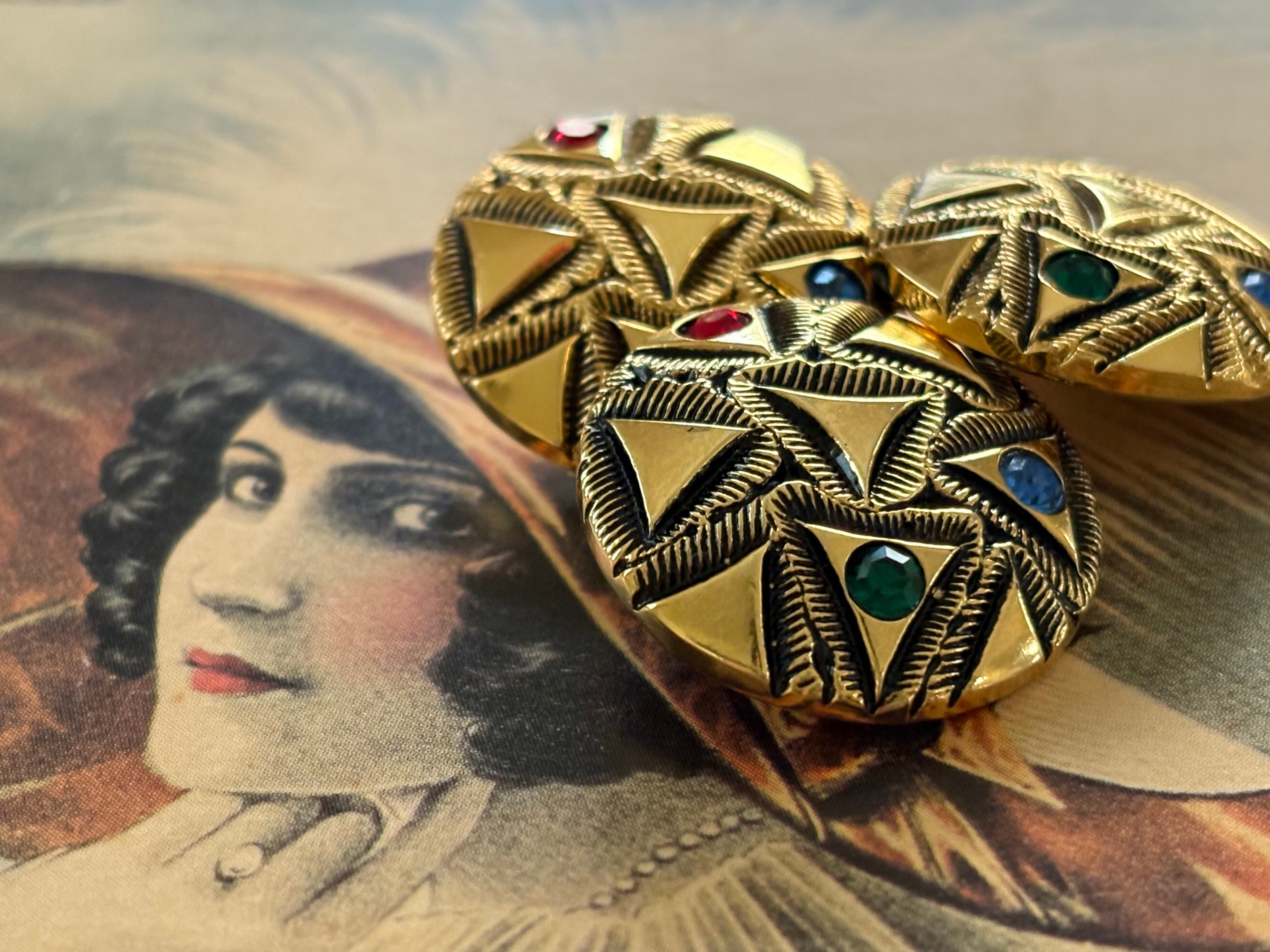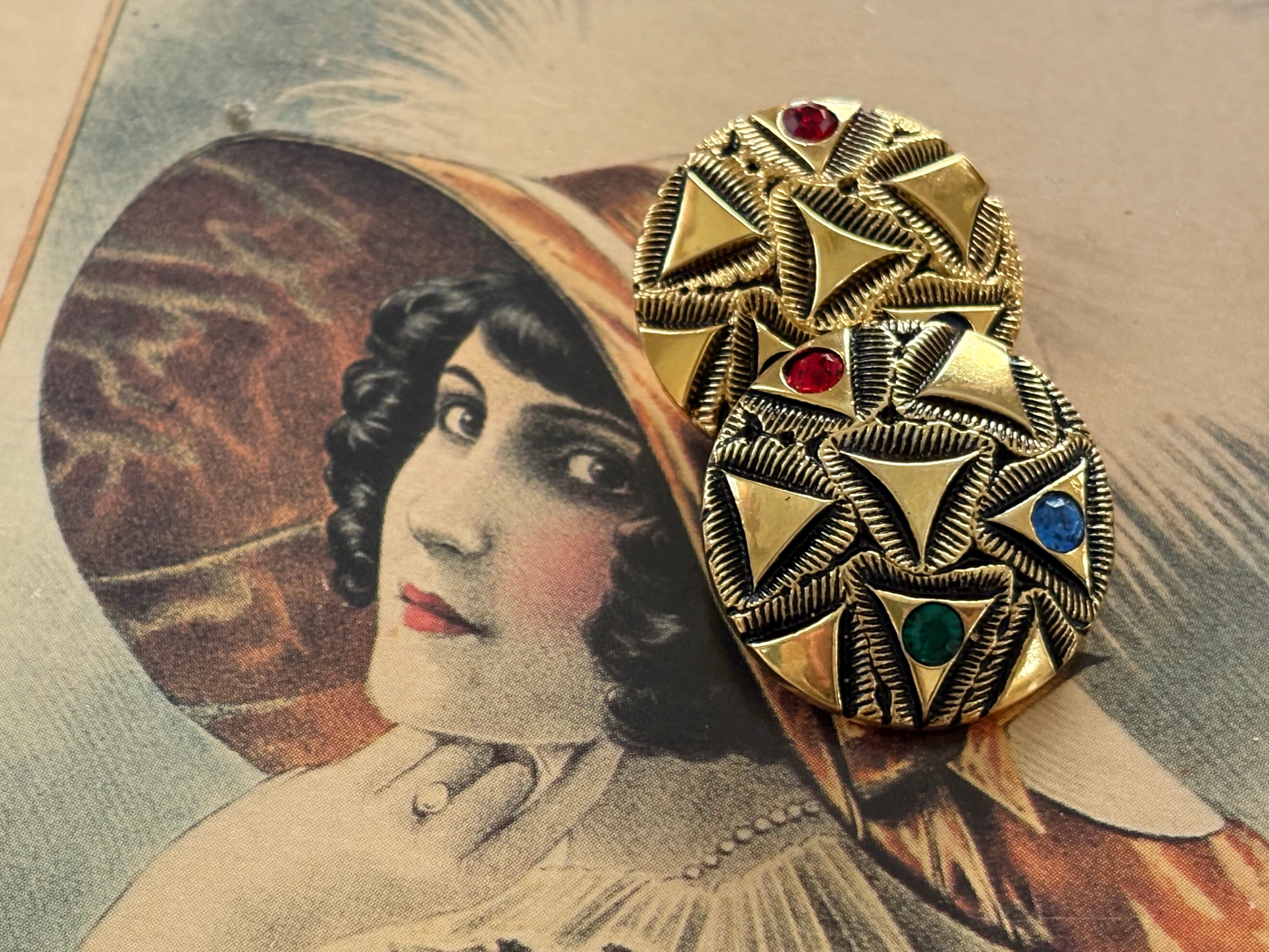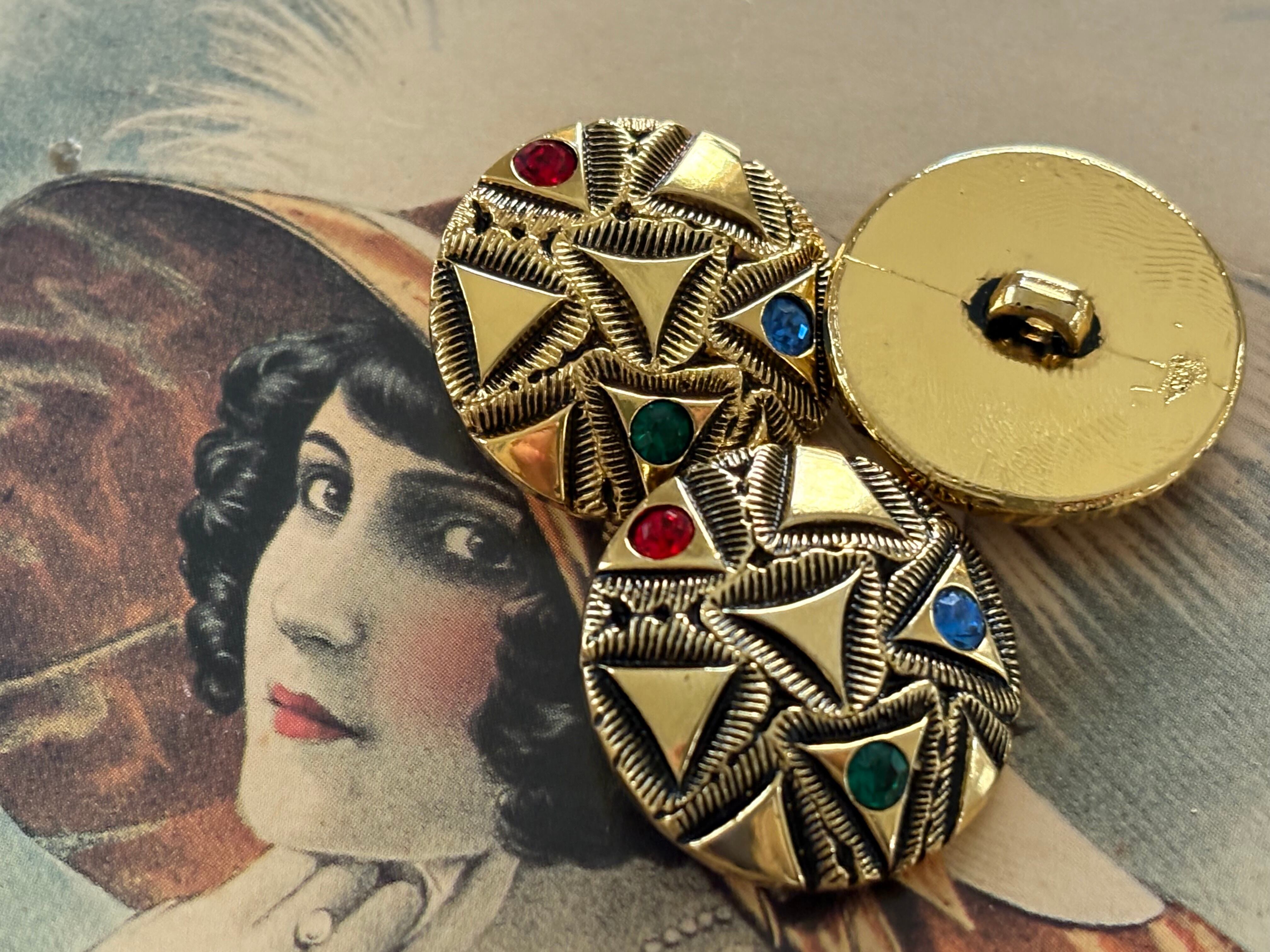 20mmJapanese ヴィンテージボタン ゴールド ストーン 昭和レトロ アクセサリーパーツ 装飾材 カルトナージュ