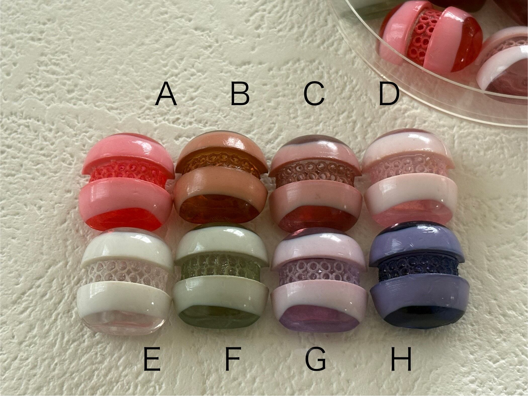 キャンディーのような、レトロ可愛いボタンです。