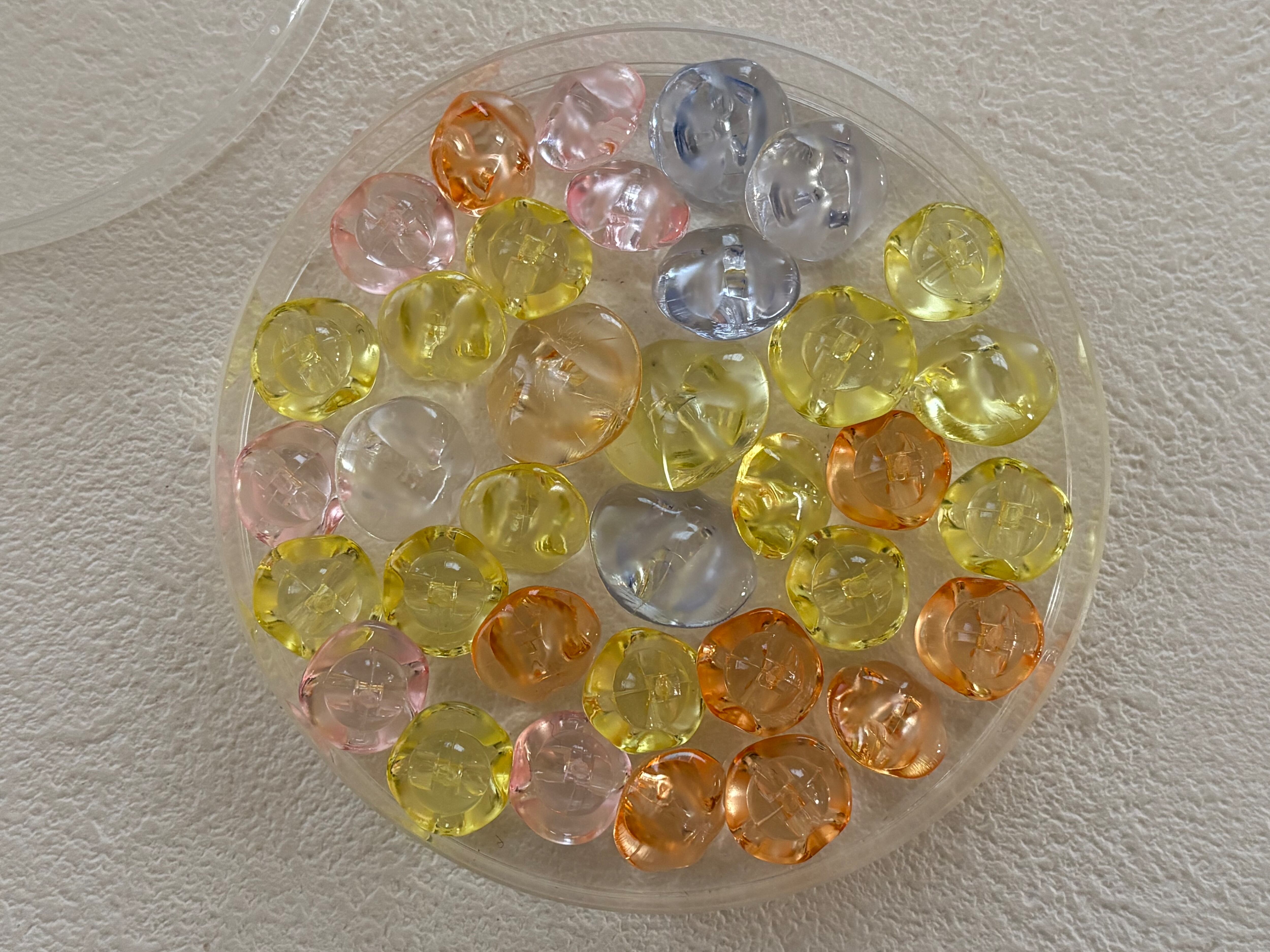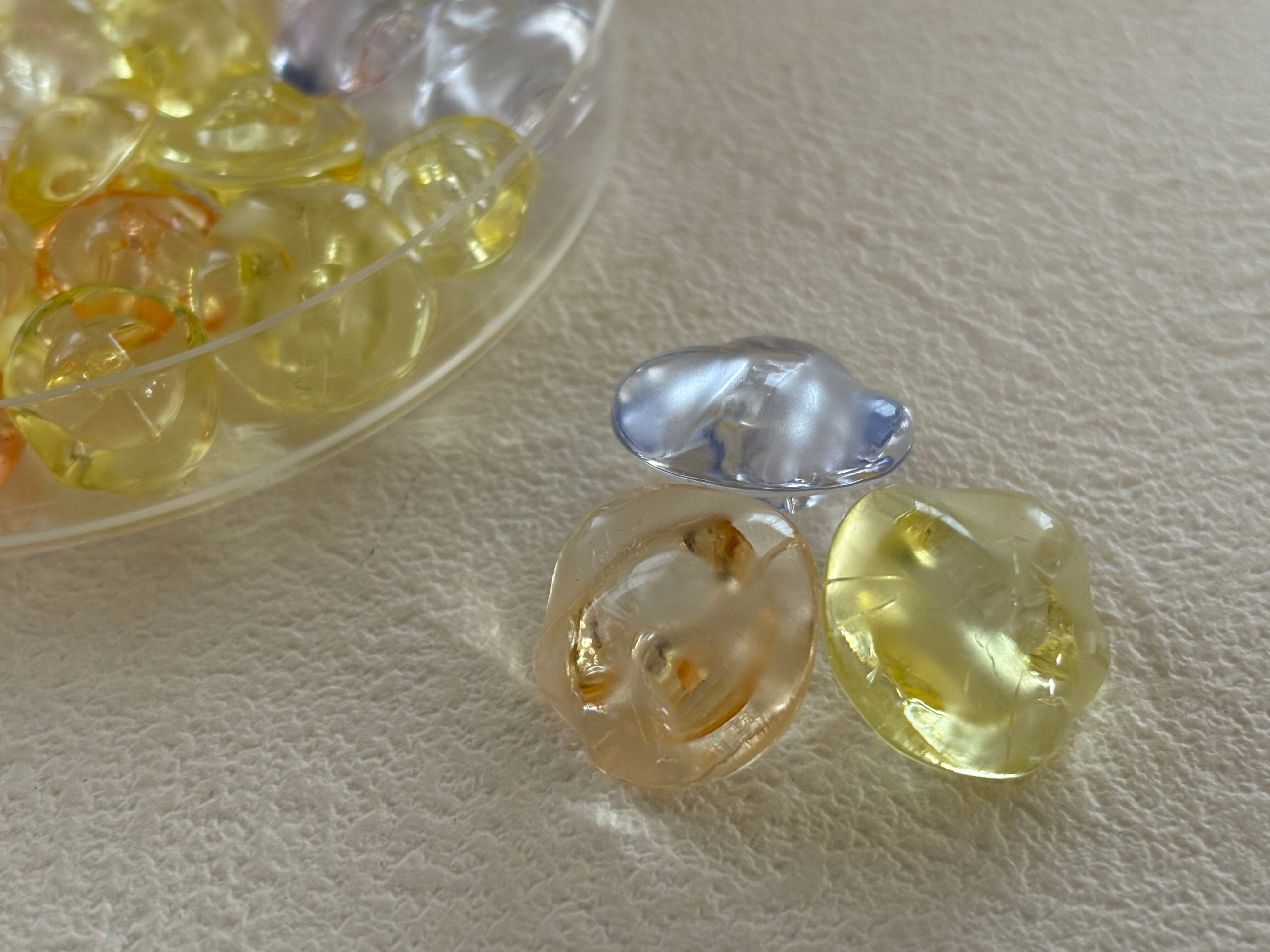 キャンディーのような、クラッシュアイスのようなレトロ可愛いボタンです。