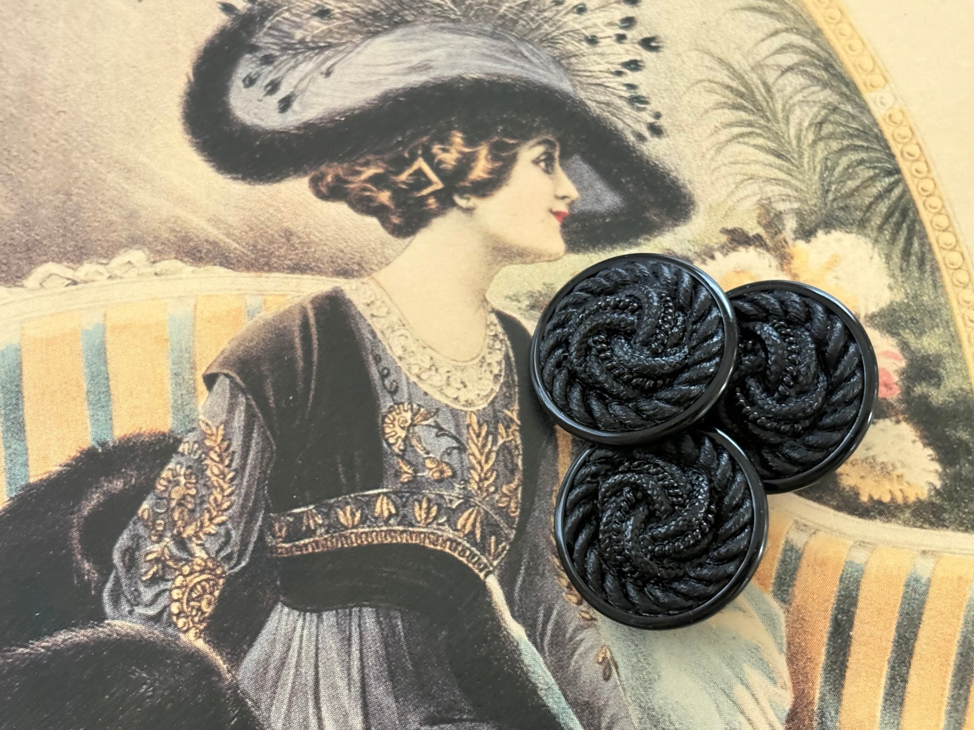 19mm Japanese ヴィンテージボタン コード調 プラスチックボタン ブラック アクセサリーパーツ 装飾材 カルトナージュ