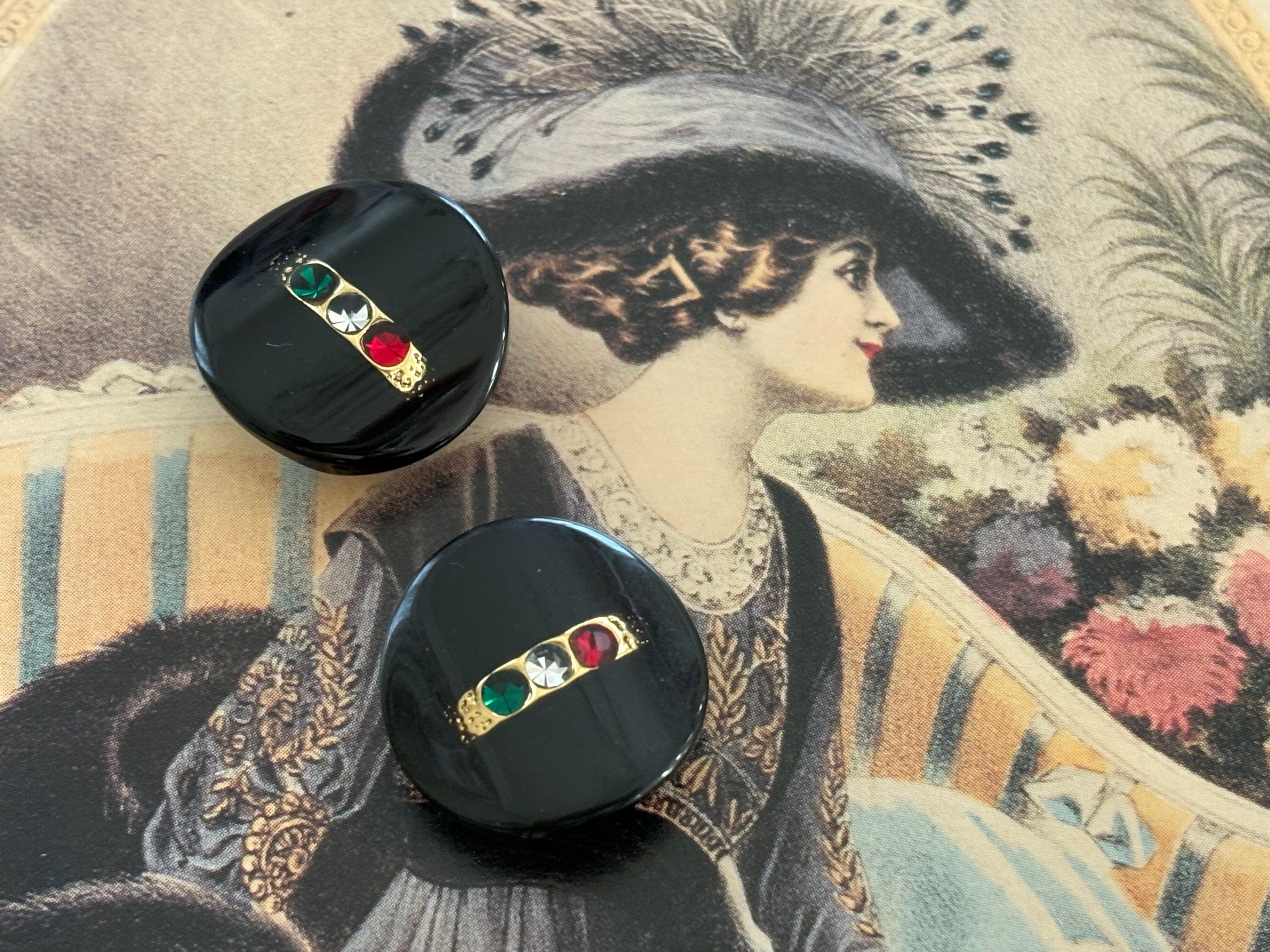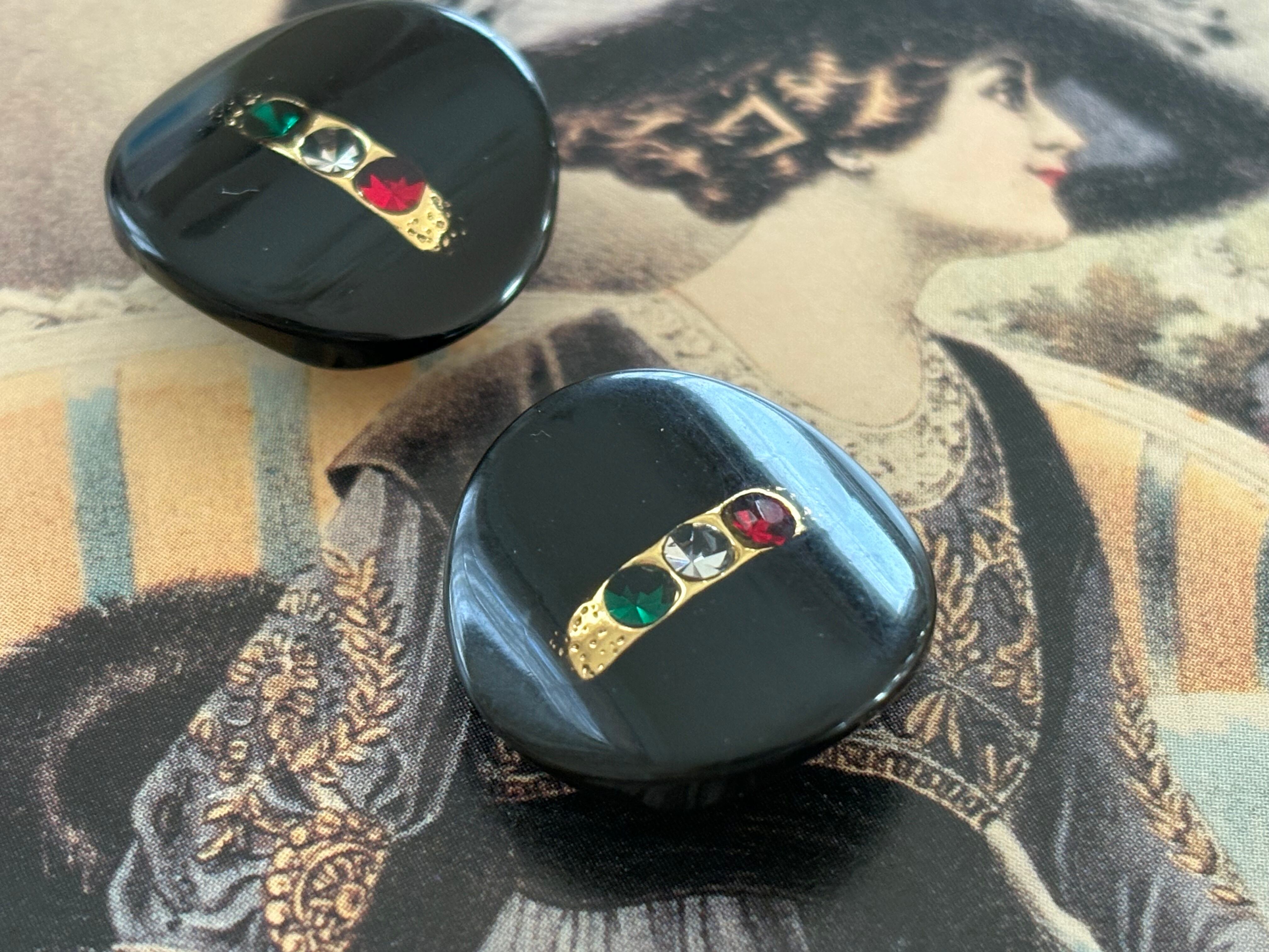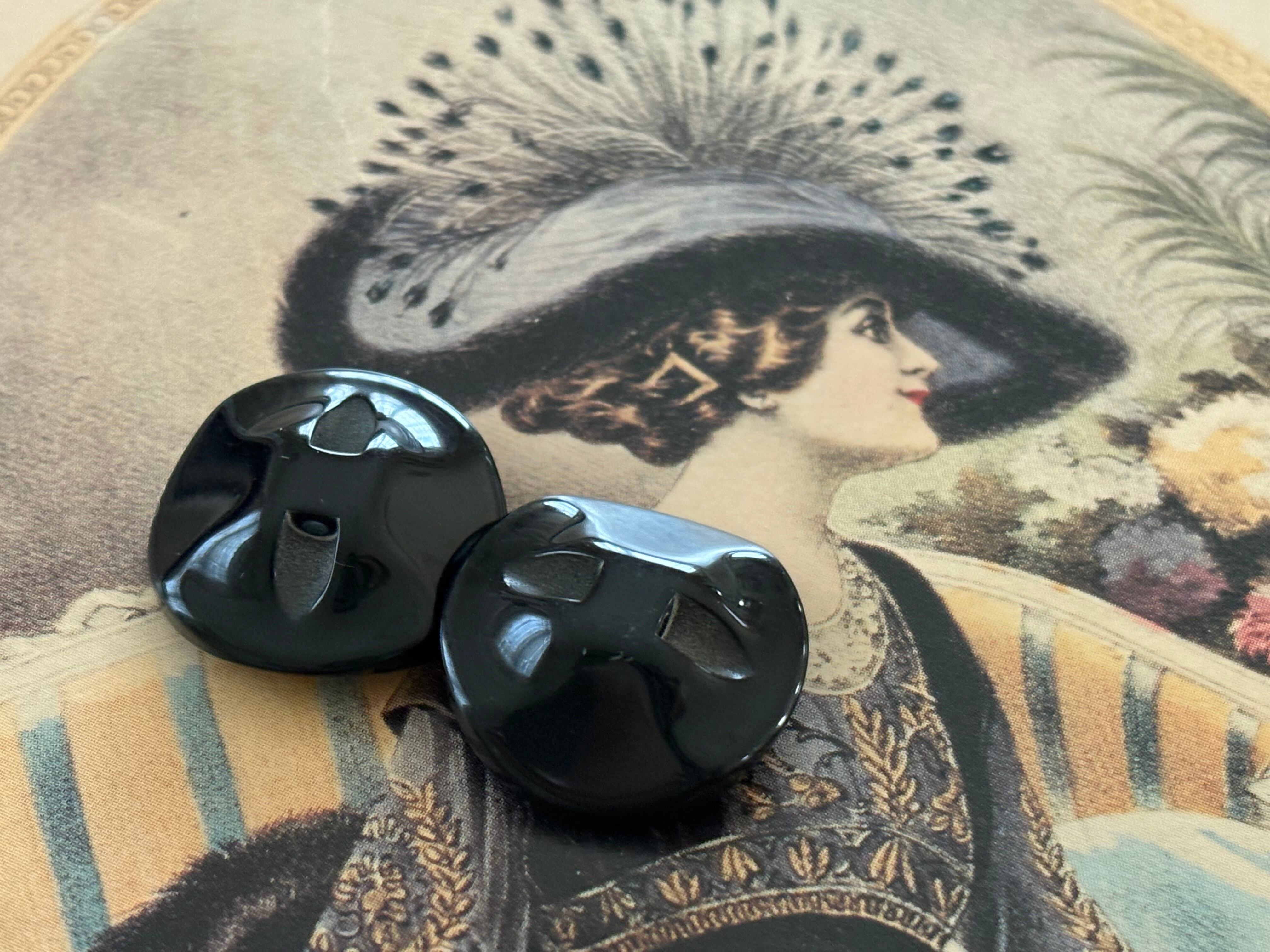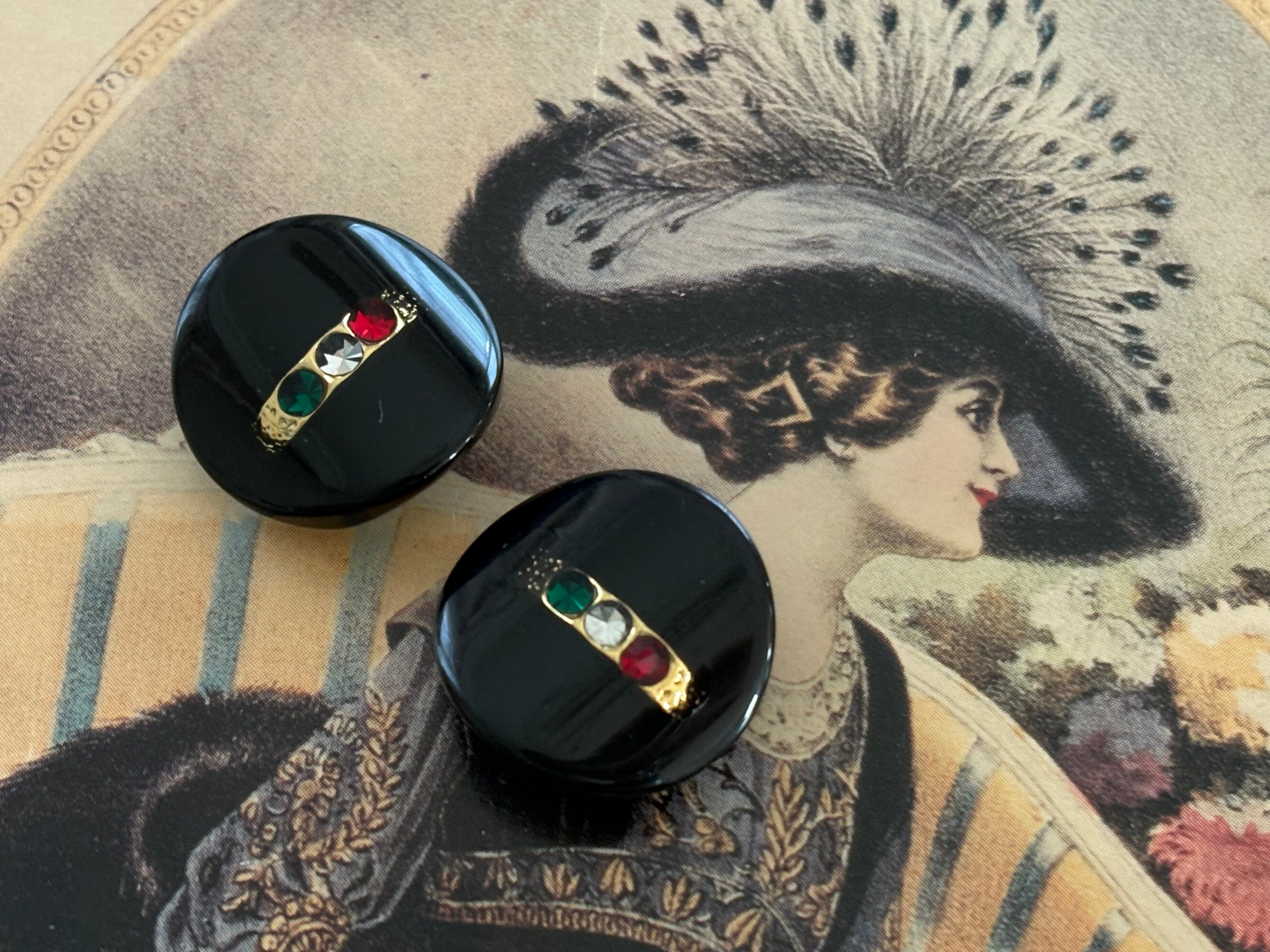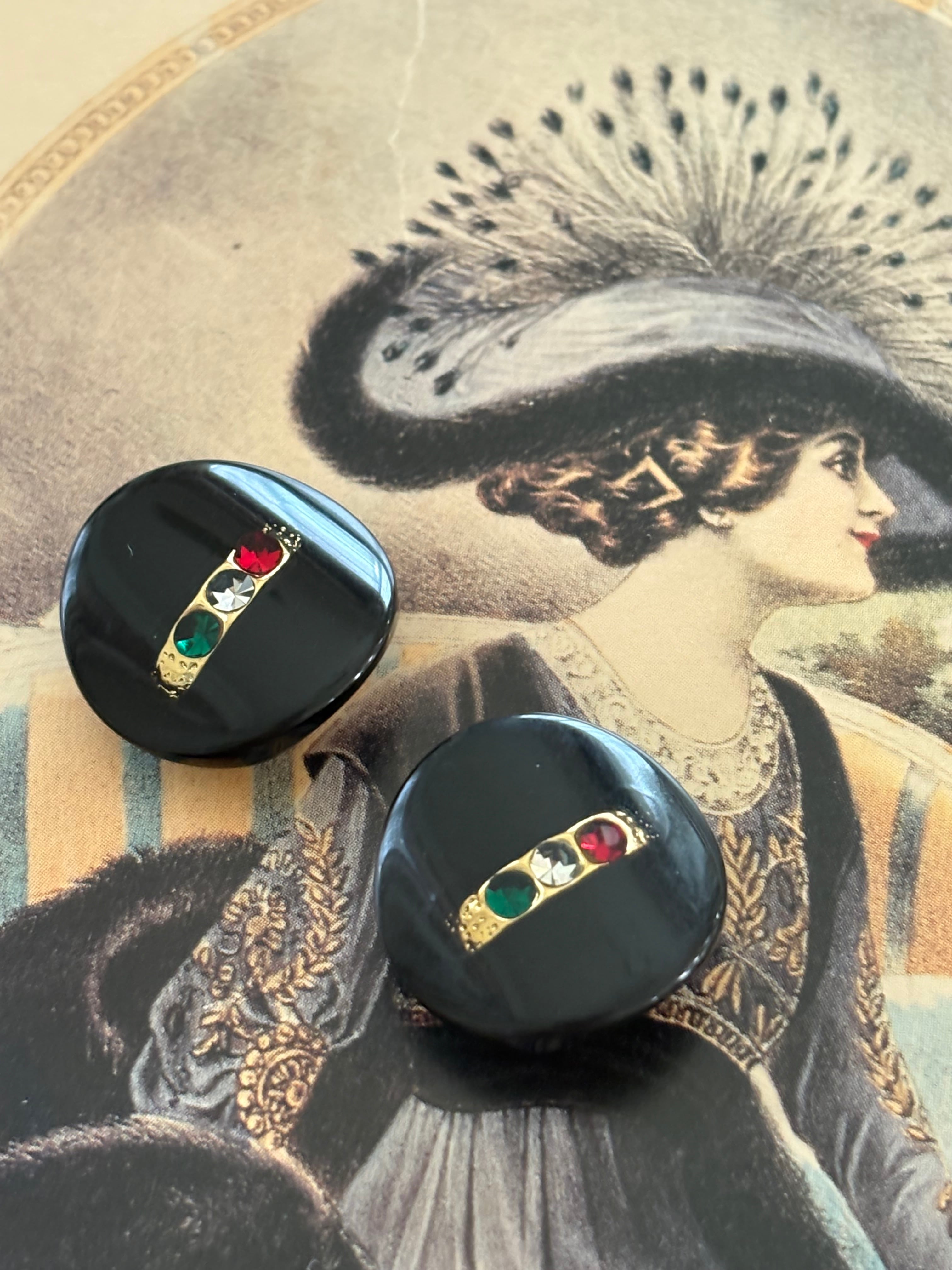 19mm Japanese ヴィンテージボタンストーン ブラック×ゴールド シック 樹脂ボタン 高級 アクセサリーパーツ 装飾材
