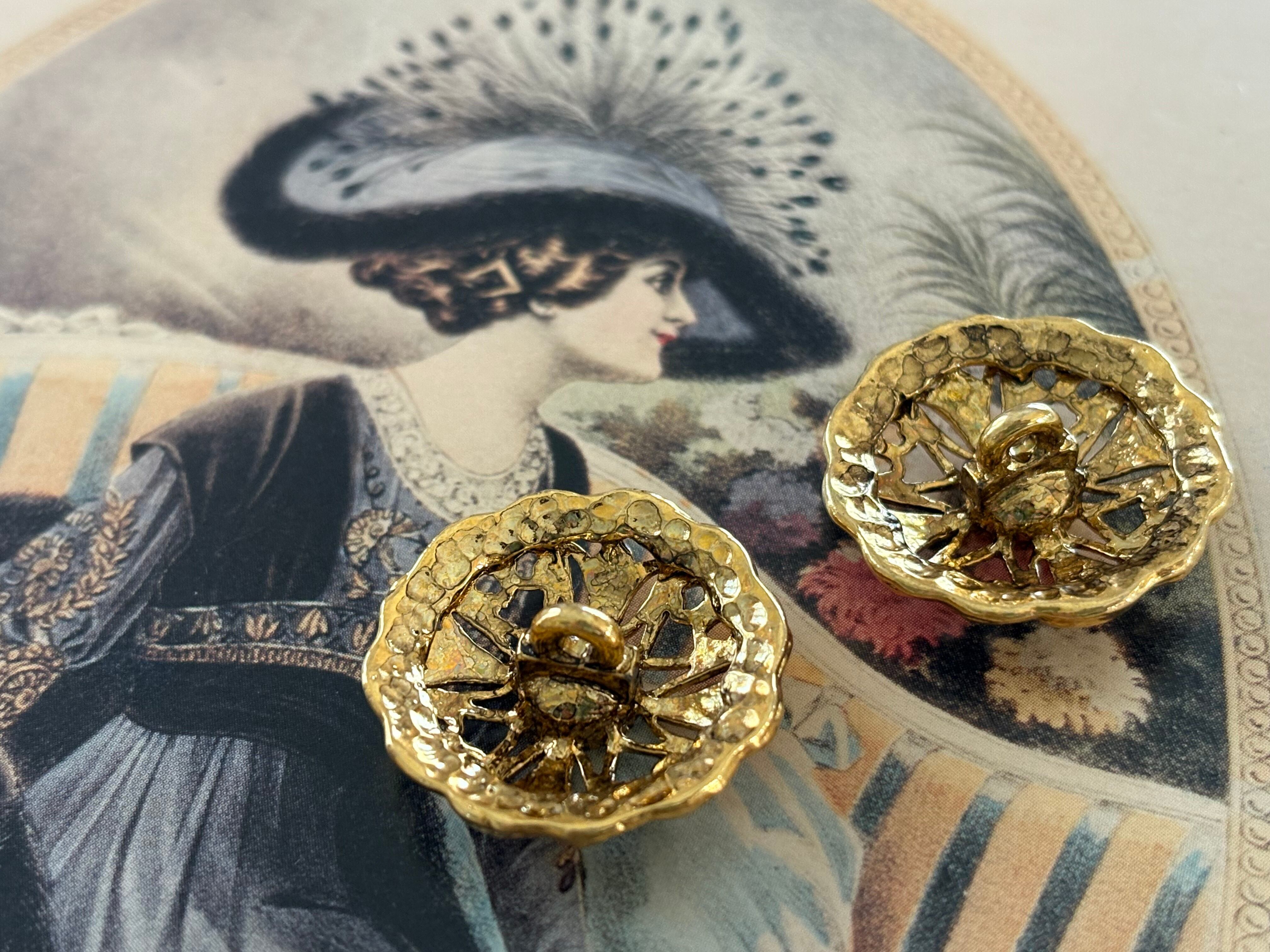 24mm Japanese ヴィンテージボタン メタル×ストーン 透かし ハート ゴールド アクセサリーパーツ 装飾材