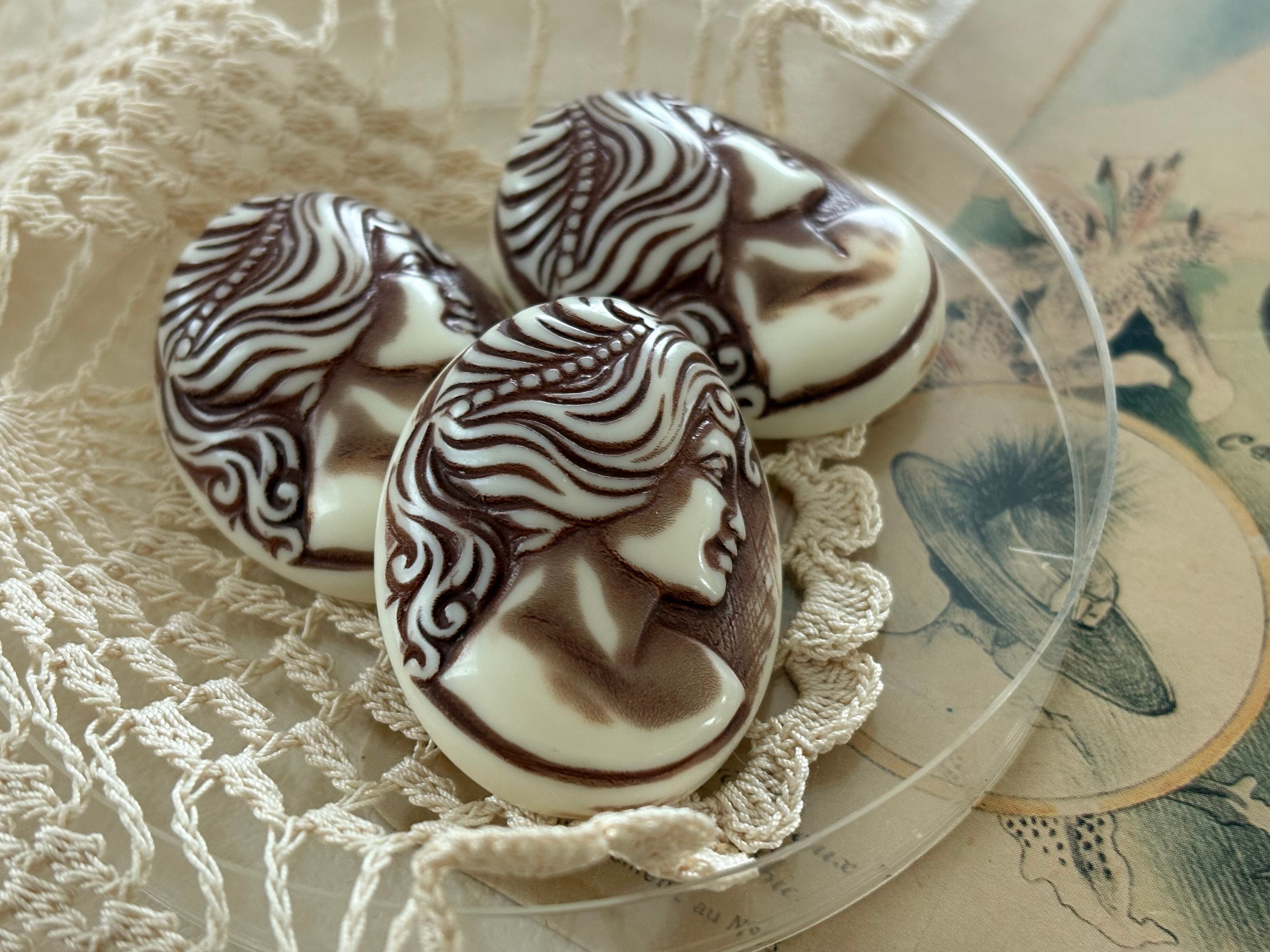 ・商品名 女性の横顔 アイボリー×ブラウン カメオ風カボション