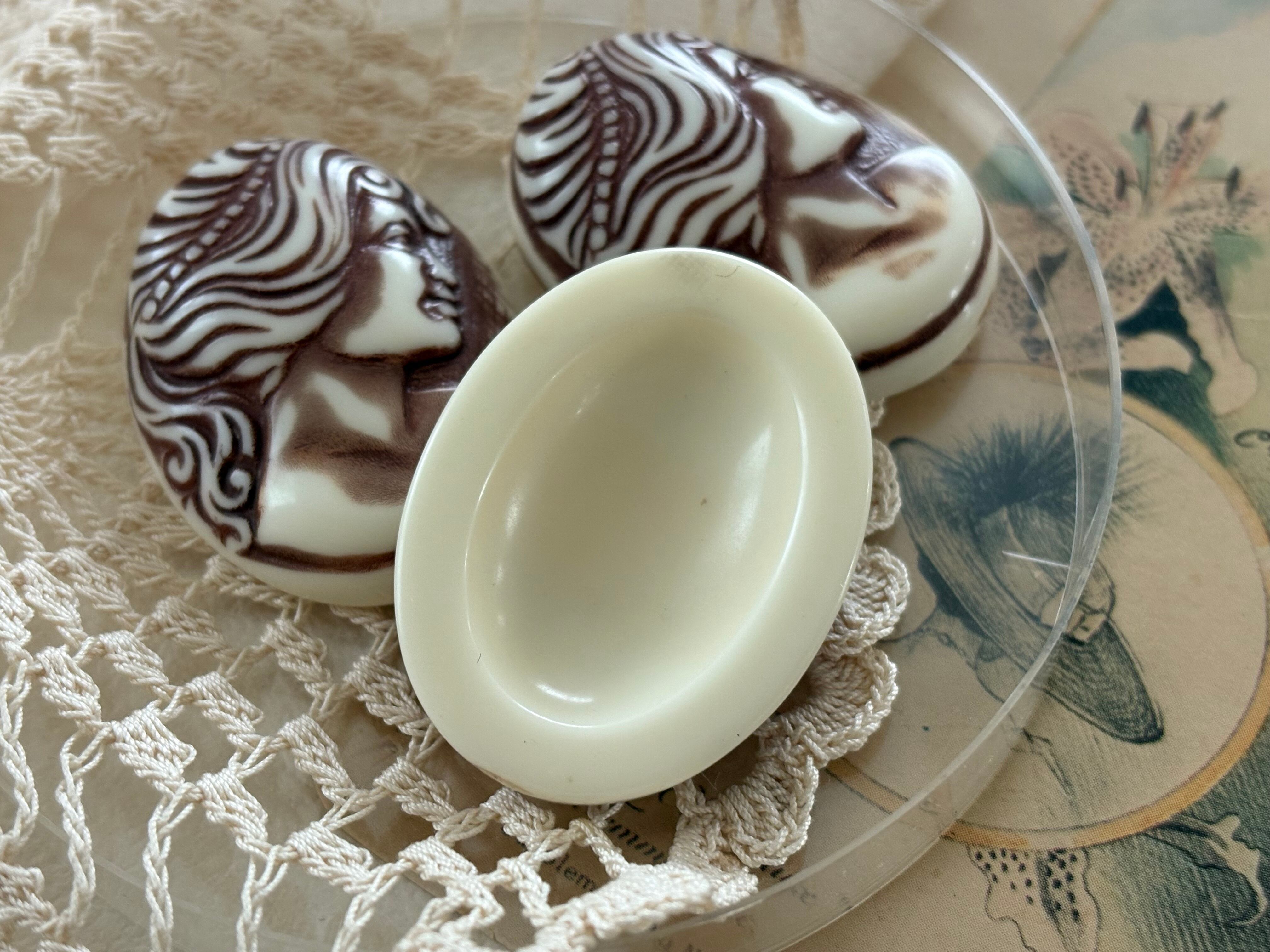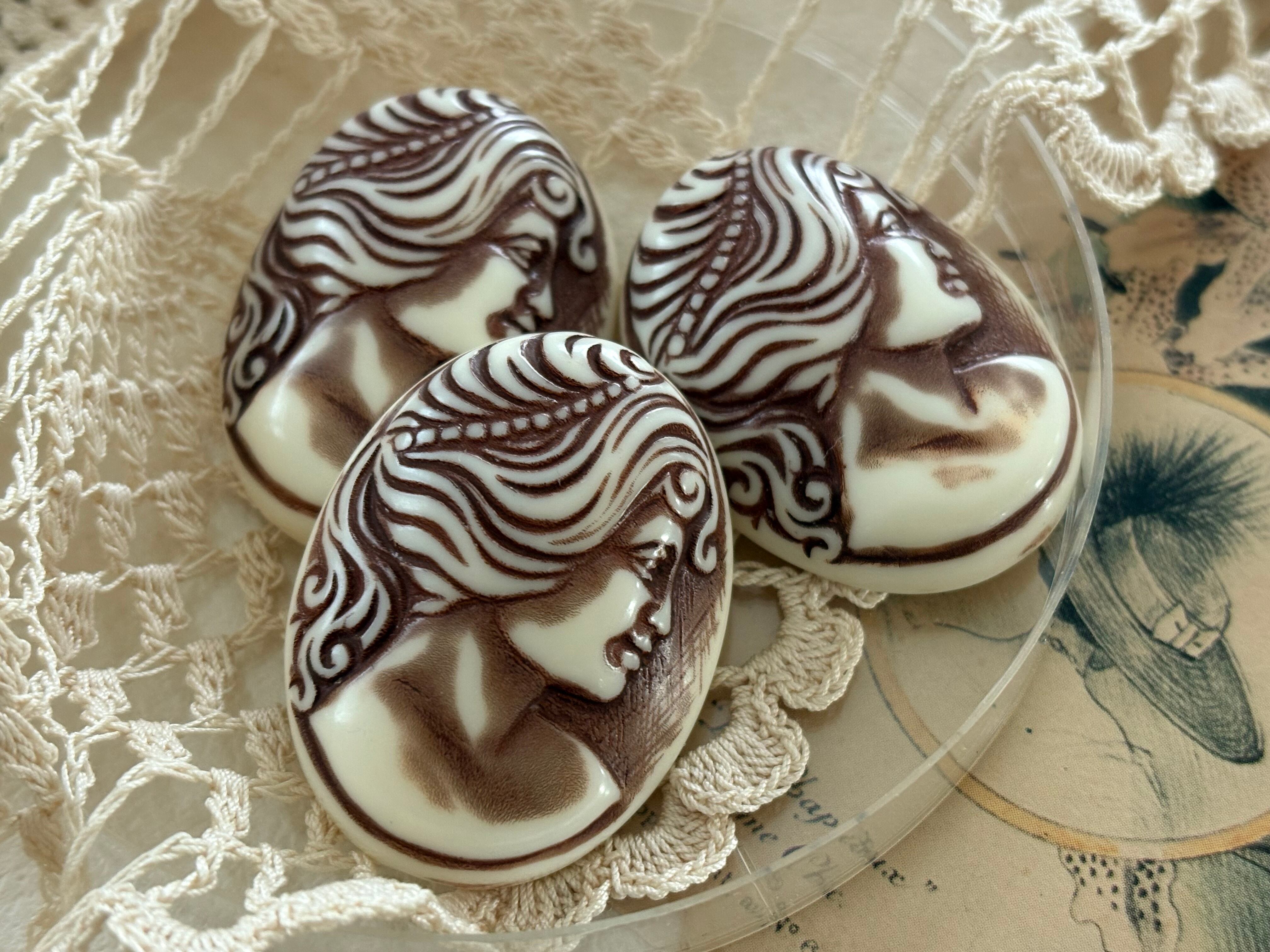 ヴィンテージカメオ カボション 女性の横顔 ヴィーナス 39mm アイボリー×ブラウン アクセサリーパーツ カルトナージュ デコレーション素材