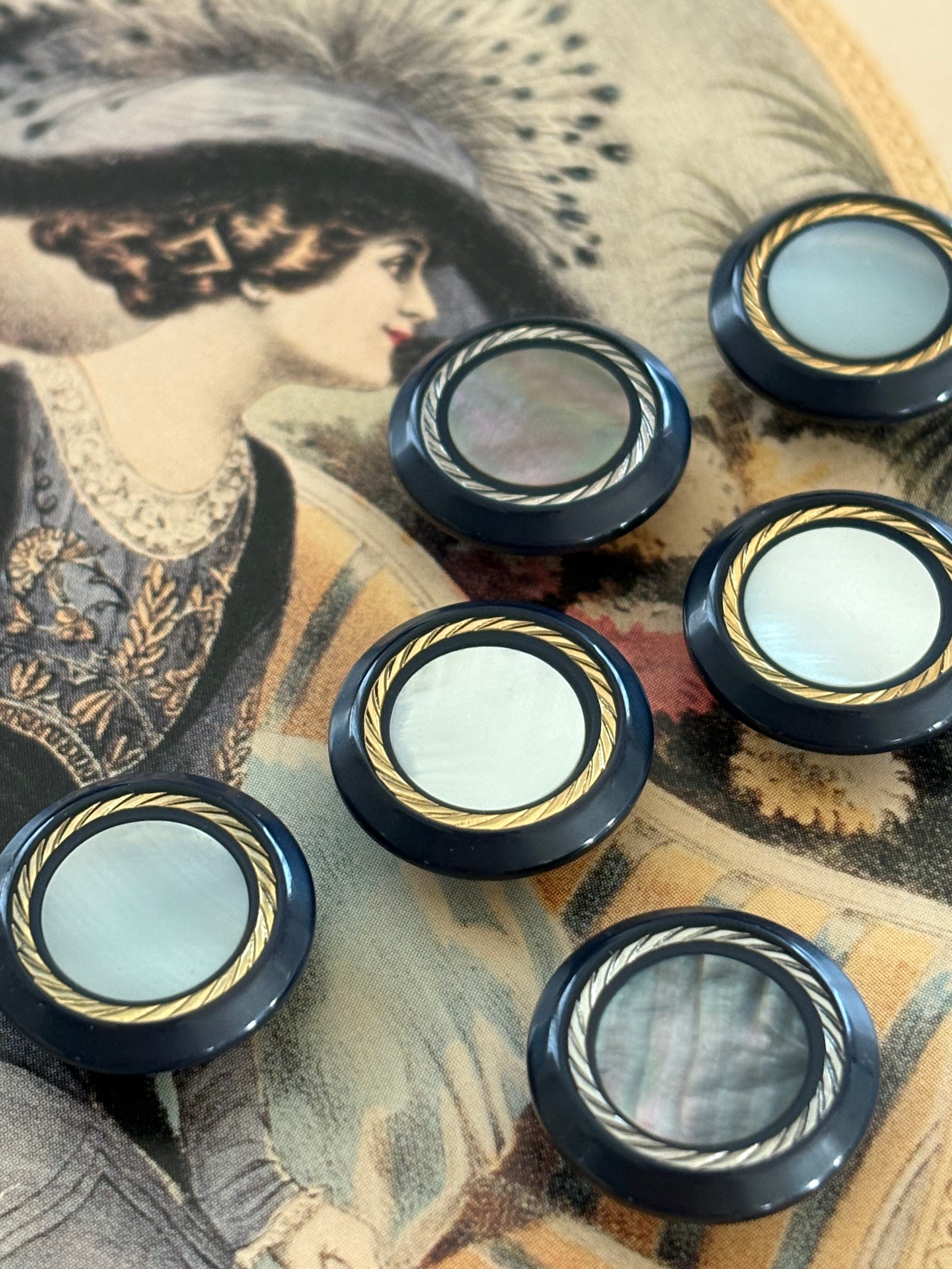 16mm Japanese ヴィンテージボタン シェル ブラック シルバー/ゴールド アクセサリーパーツ デコレーション材