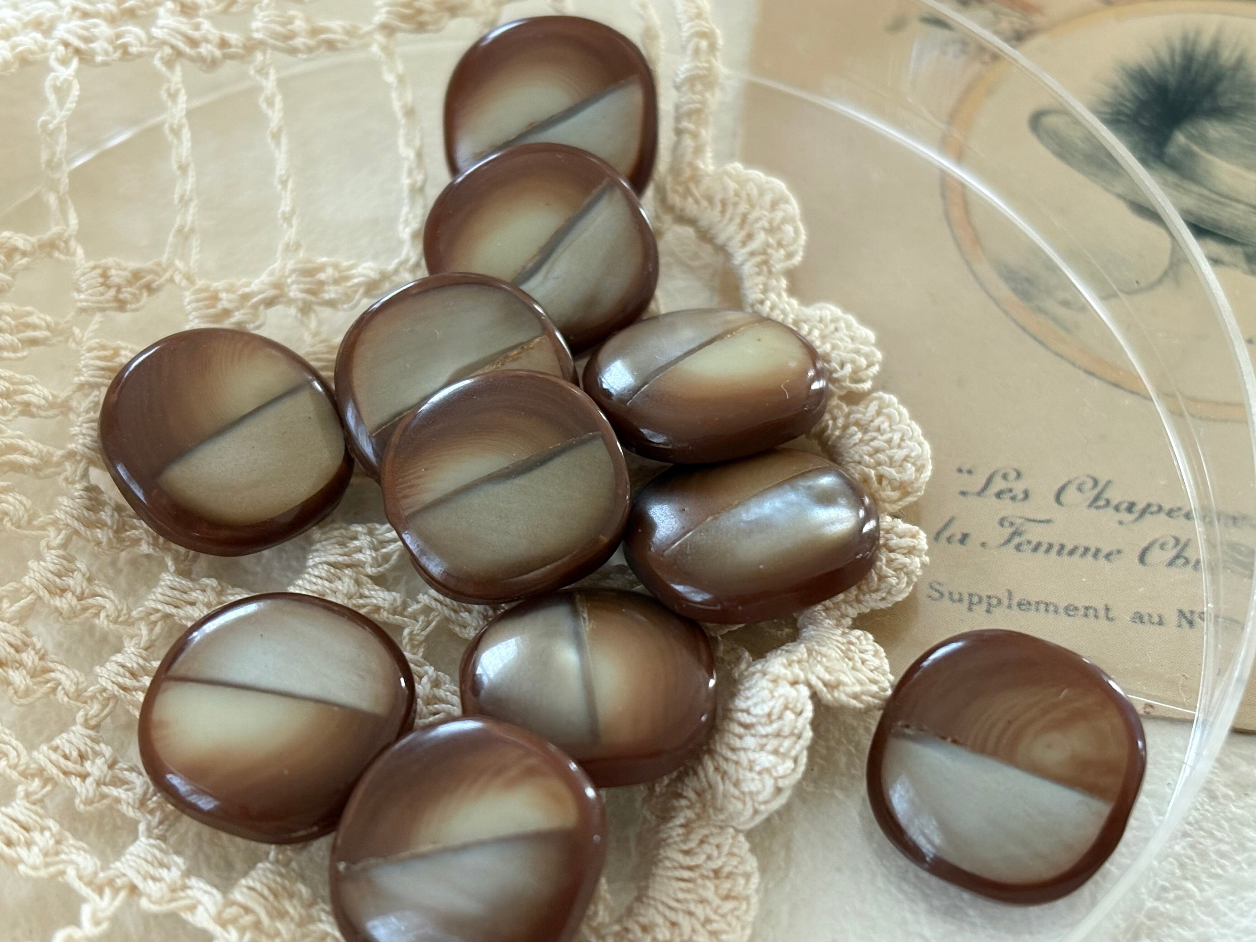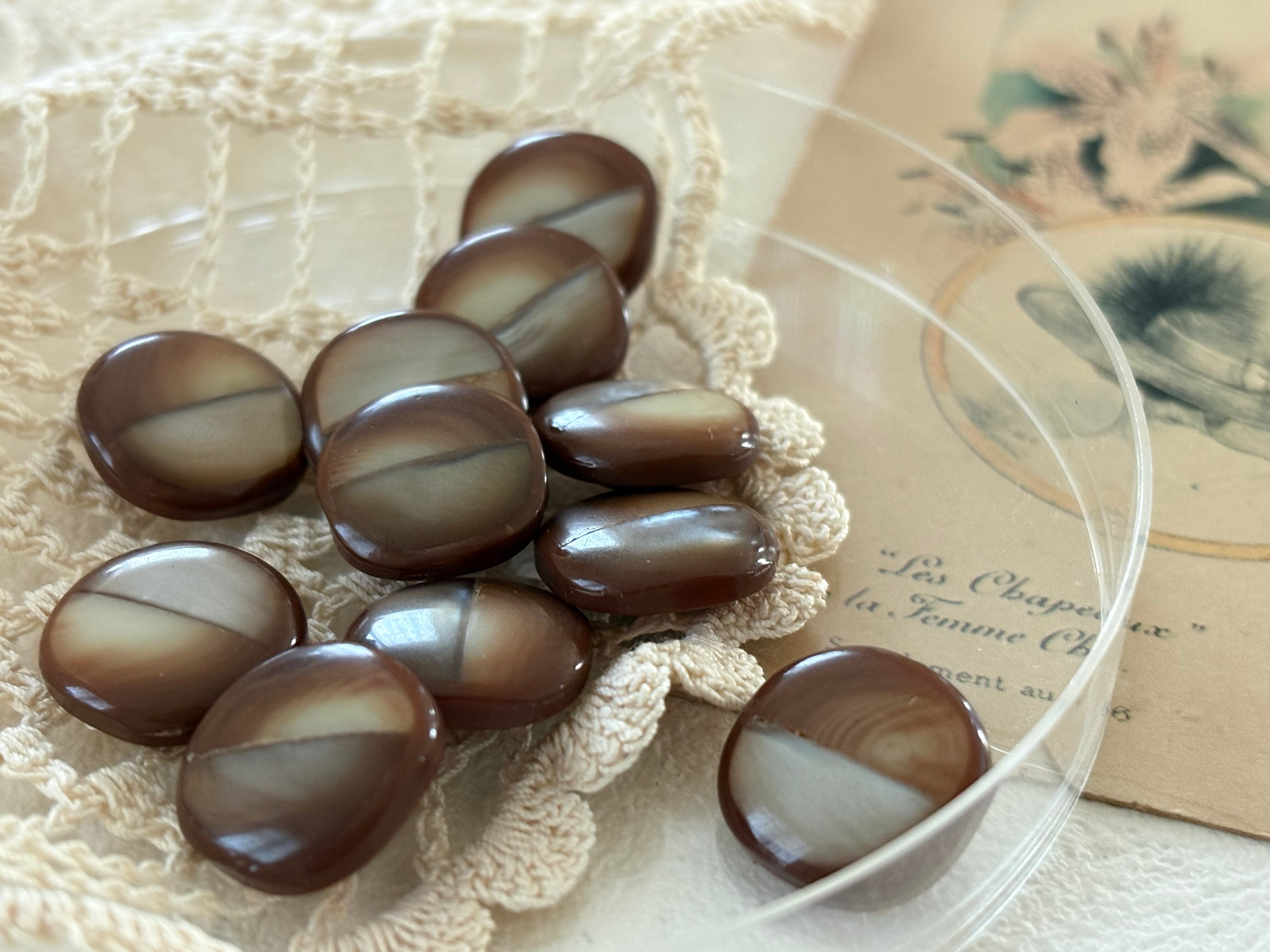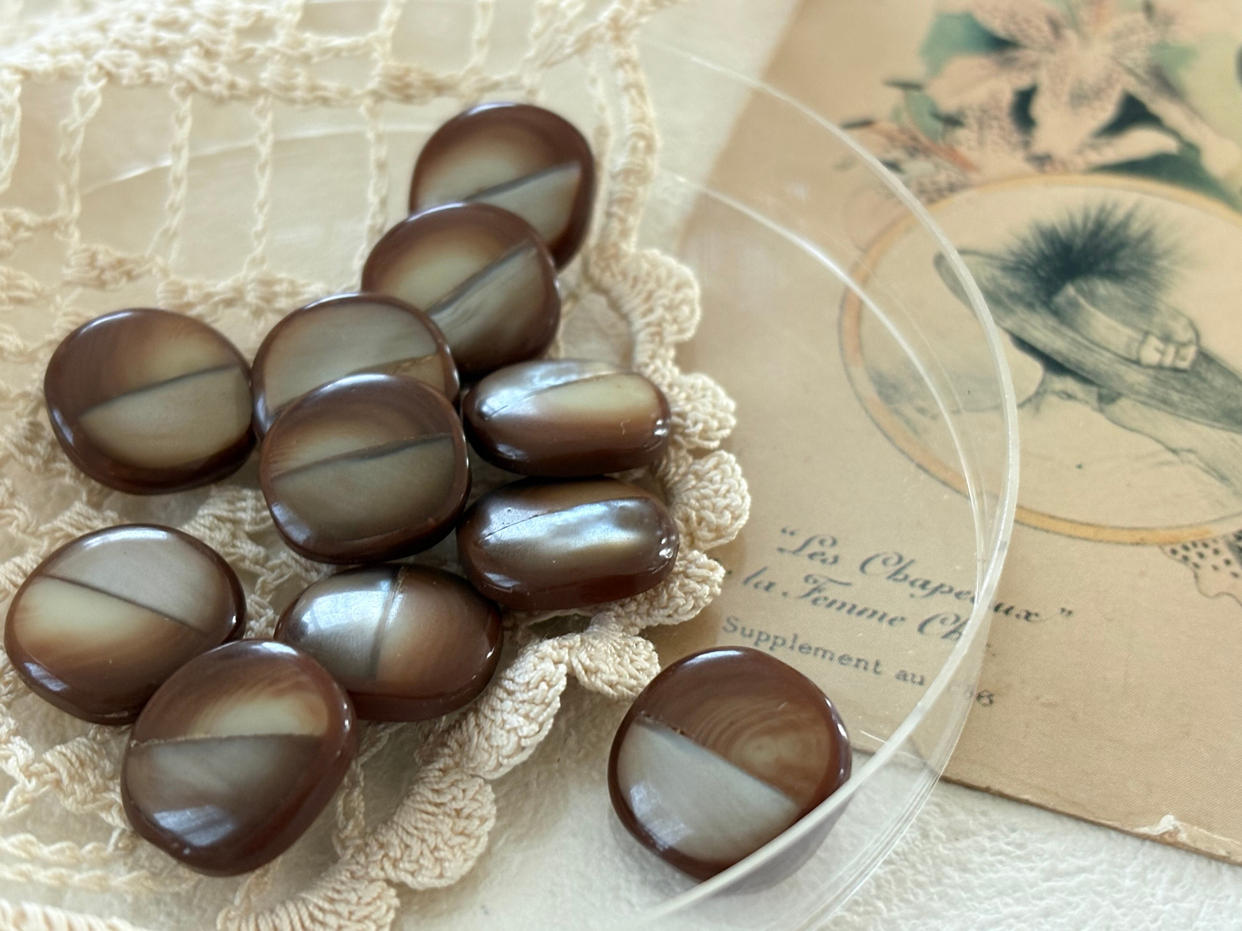 Japanese Vintage ヴィンテージボタン スクウェア ブラウン シェル グラデーション 13mm レトロボタン アクセサリーパーツ 装飾材 カルトナージュ