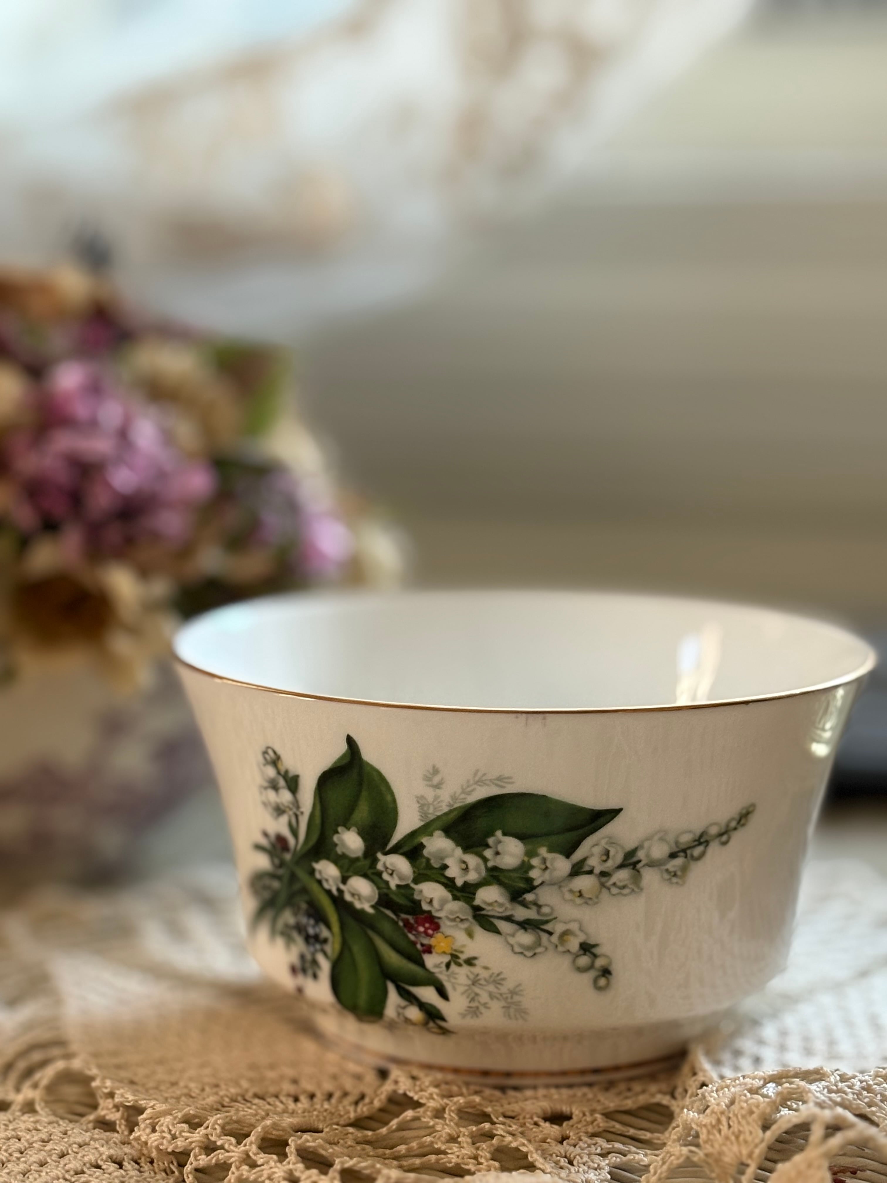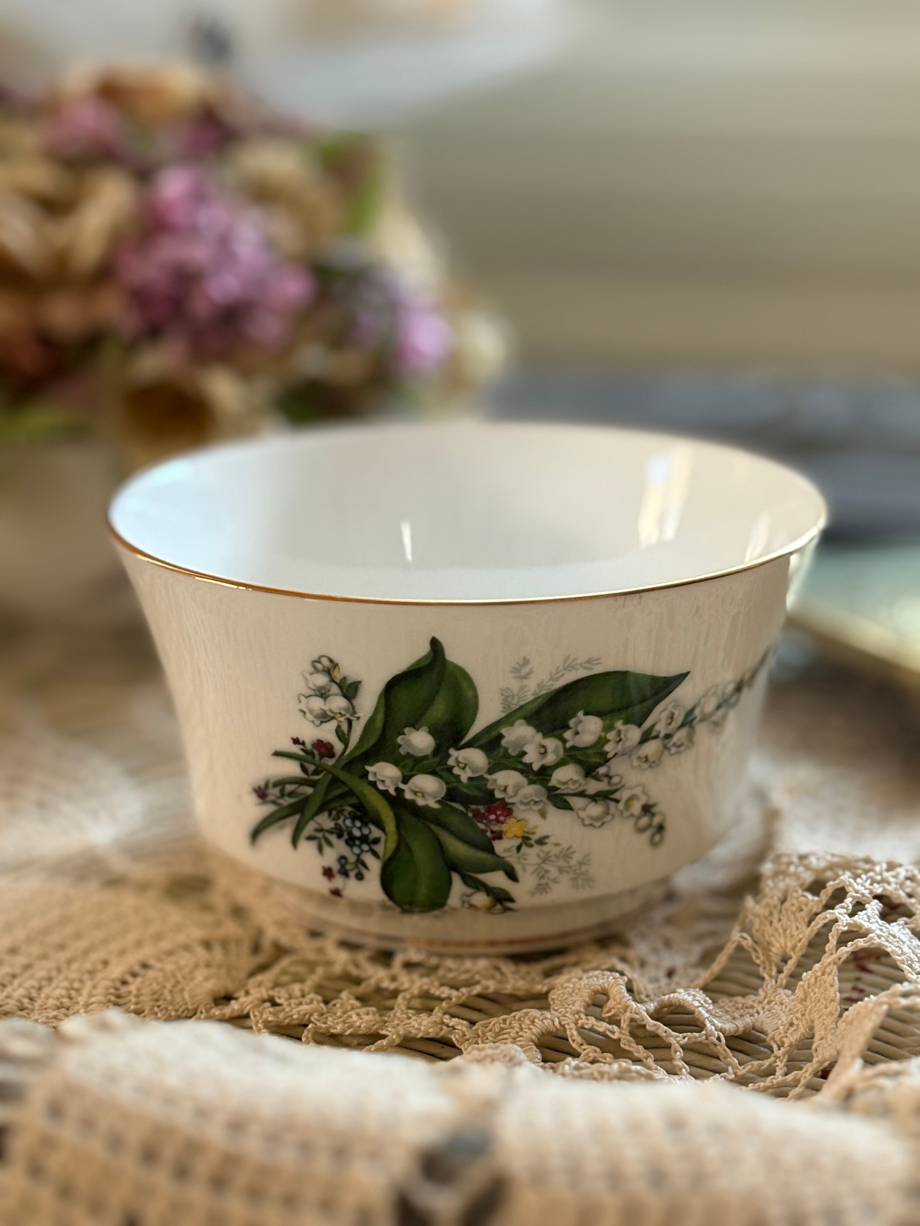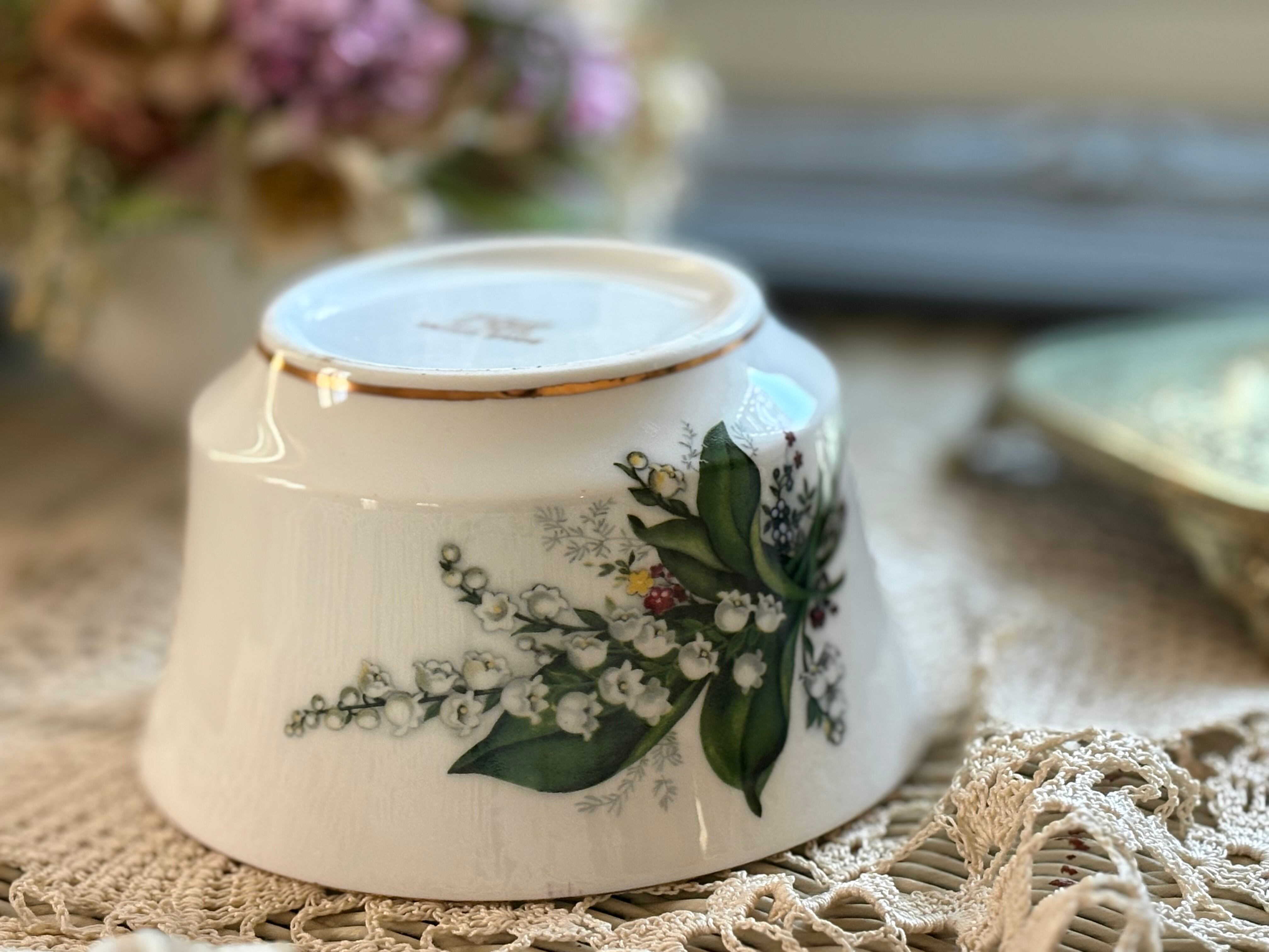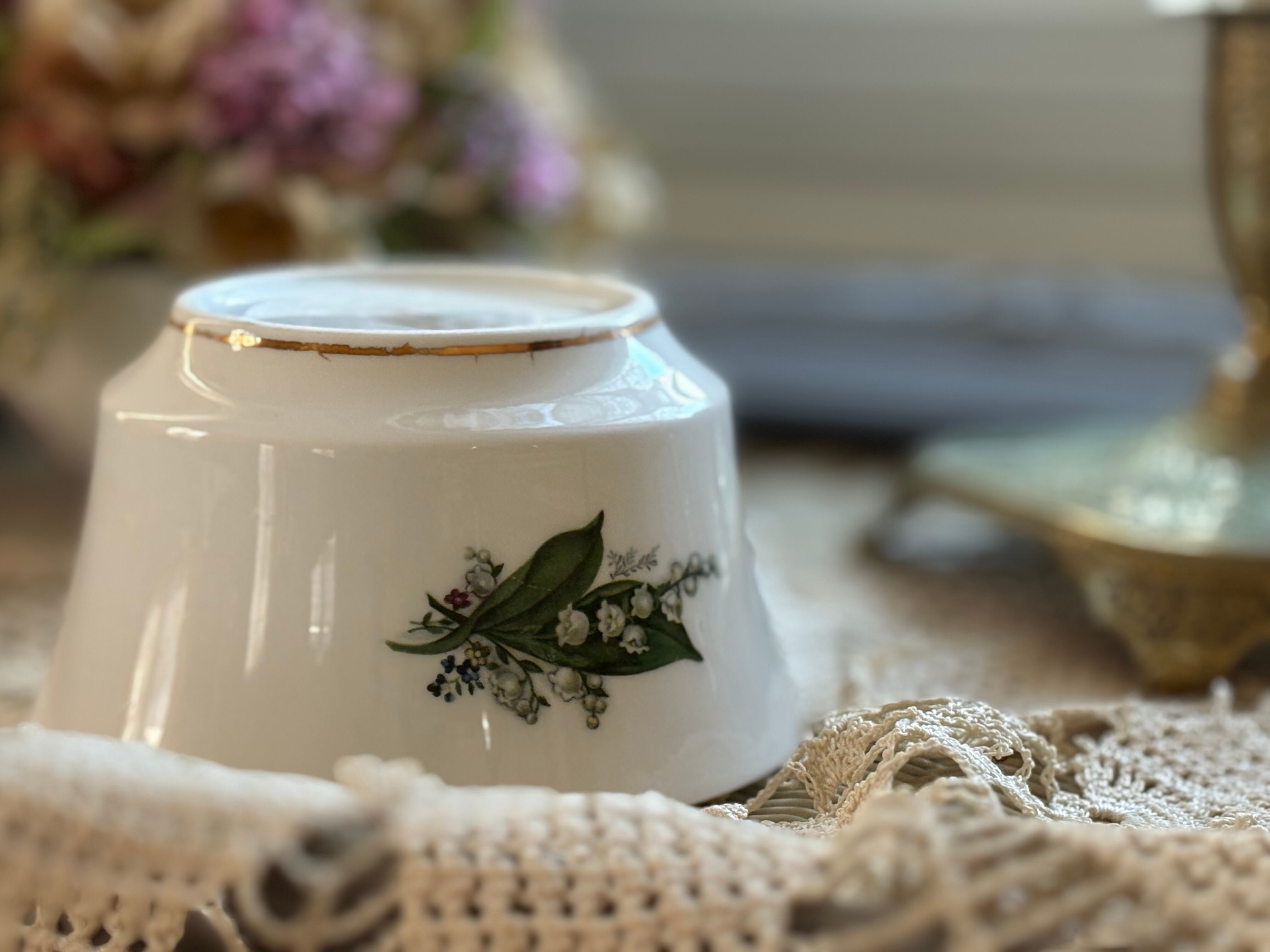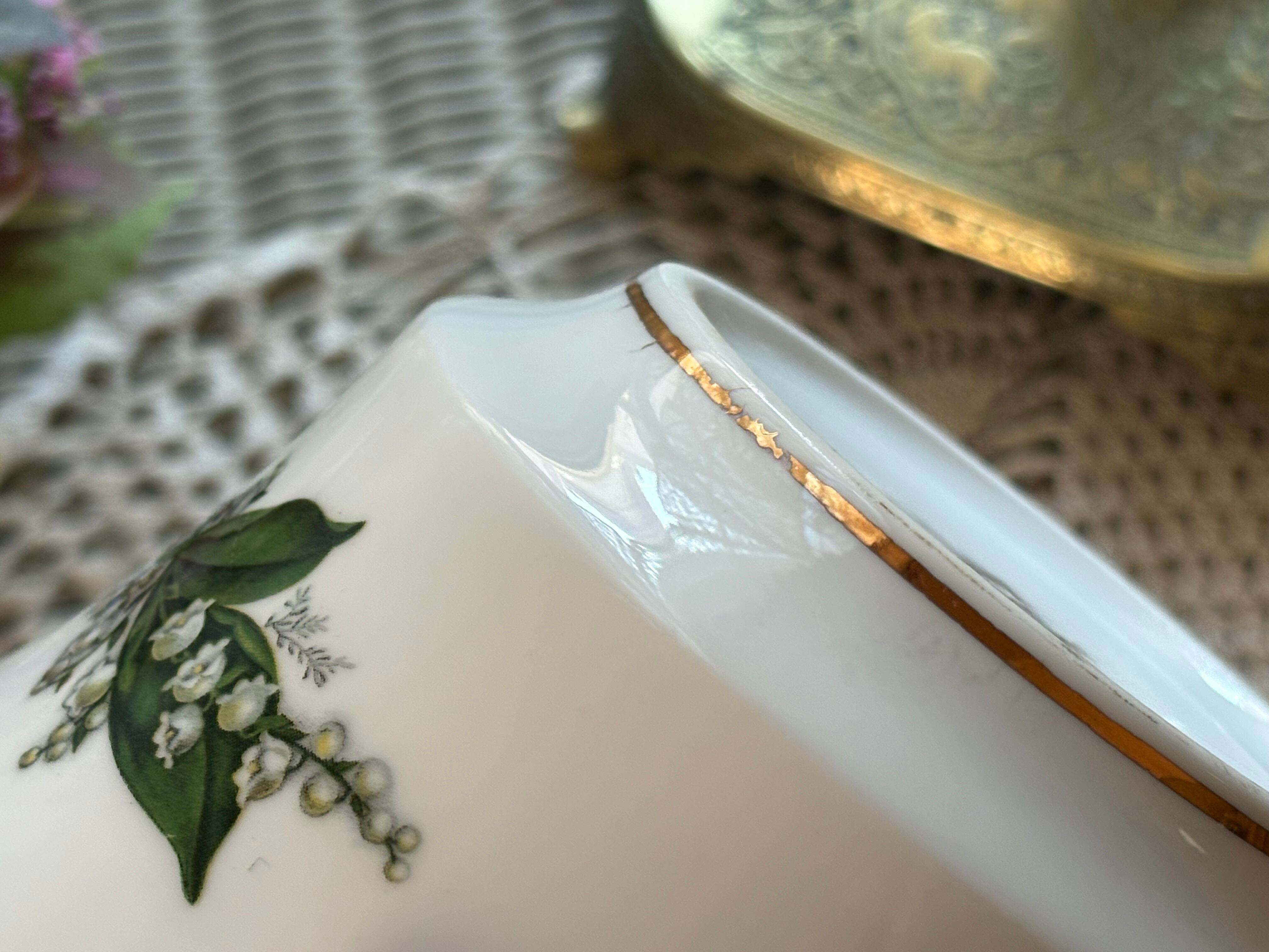 英国Vintage Muguet すずらん シュガーボウル 金彩 フラワーベース インテリア 小物入れ ディスプレイ 撮影小物