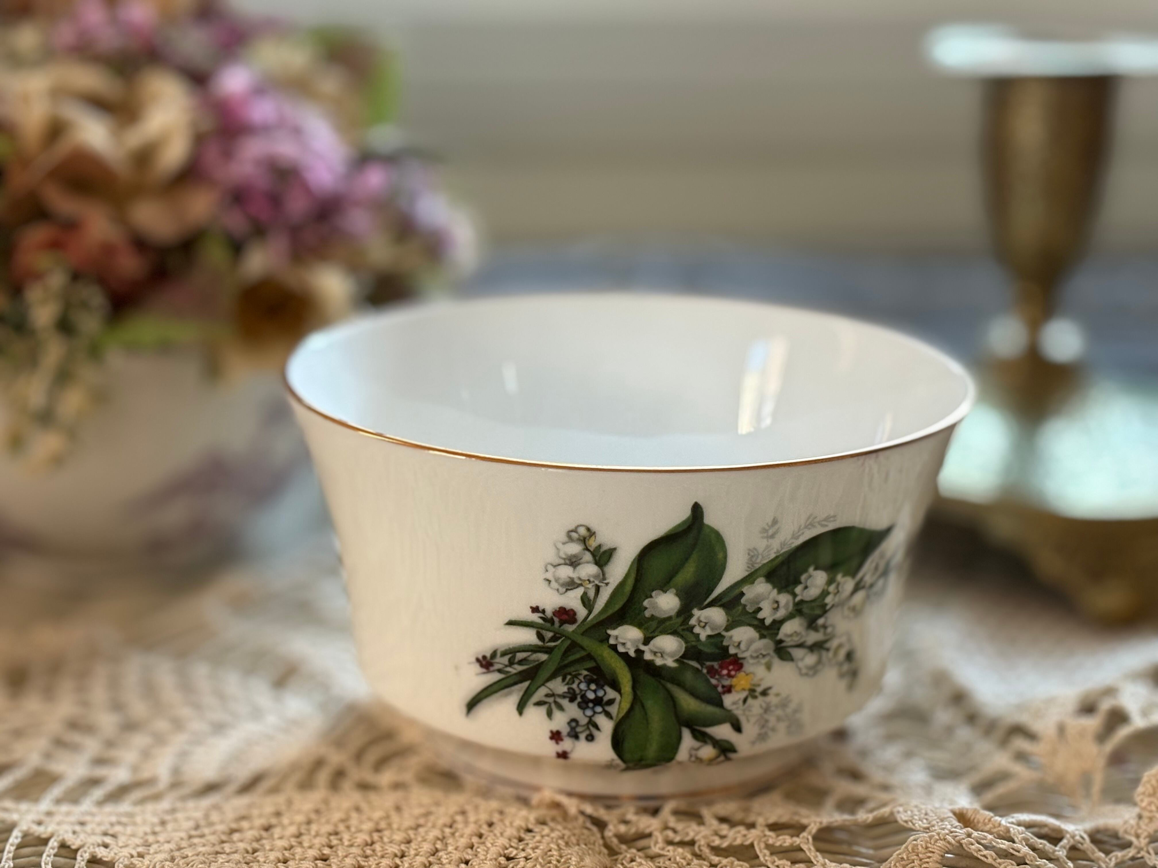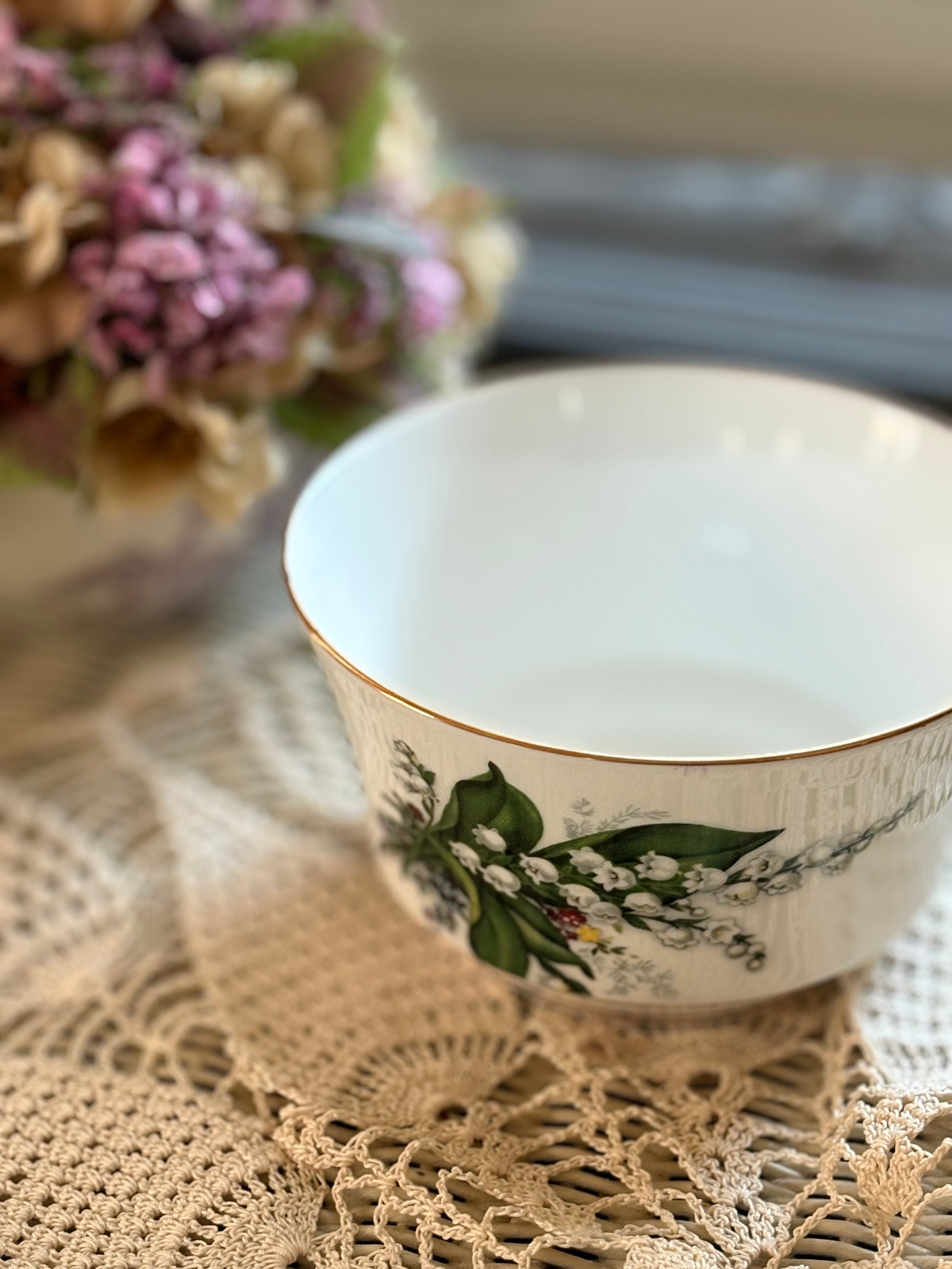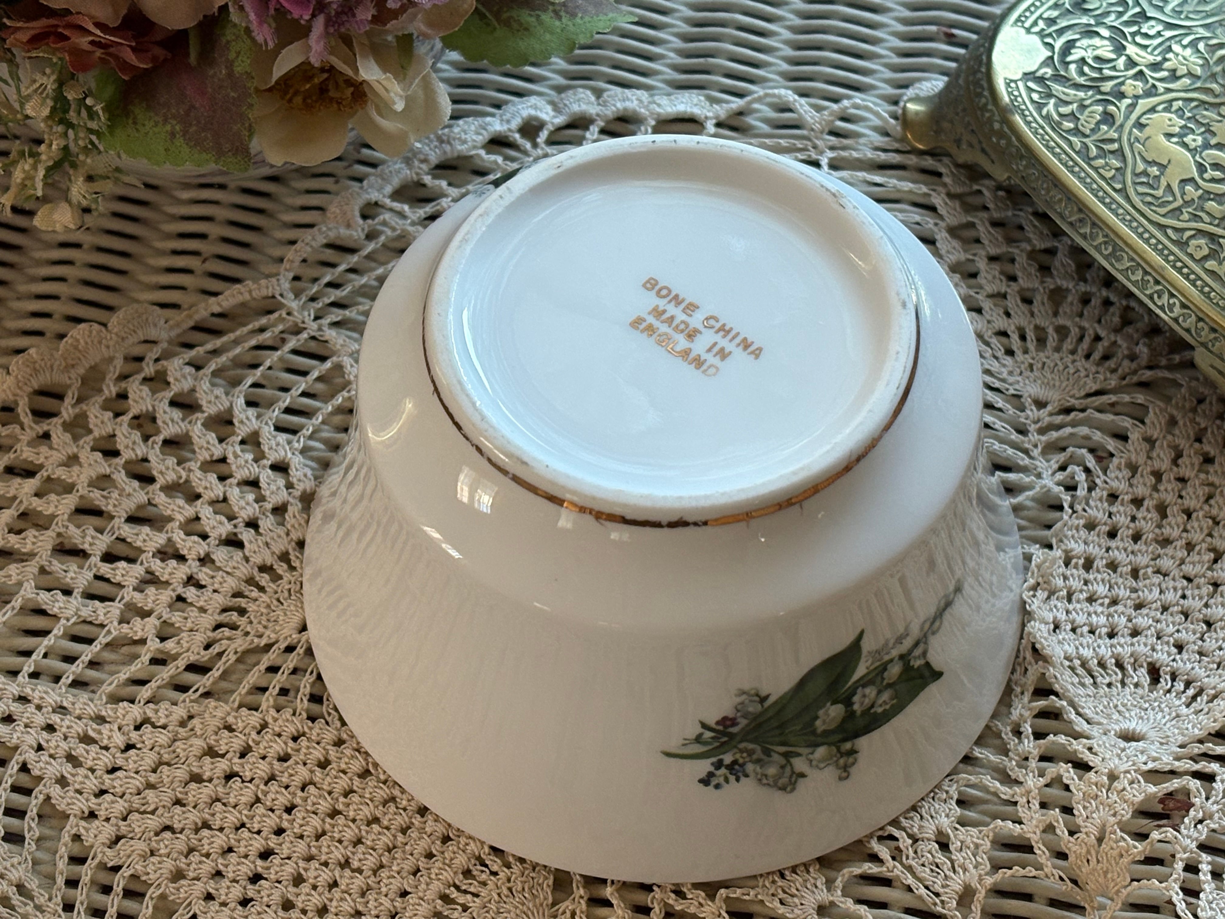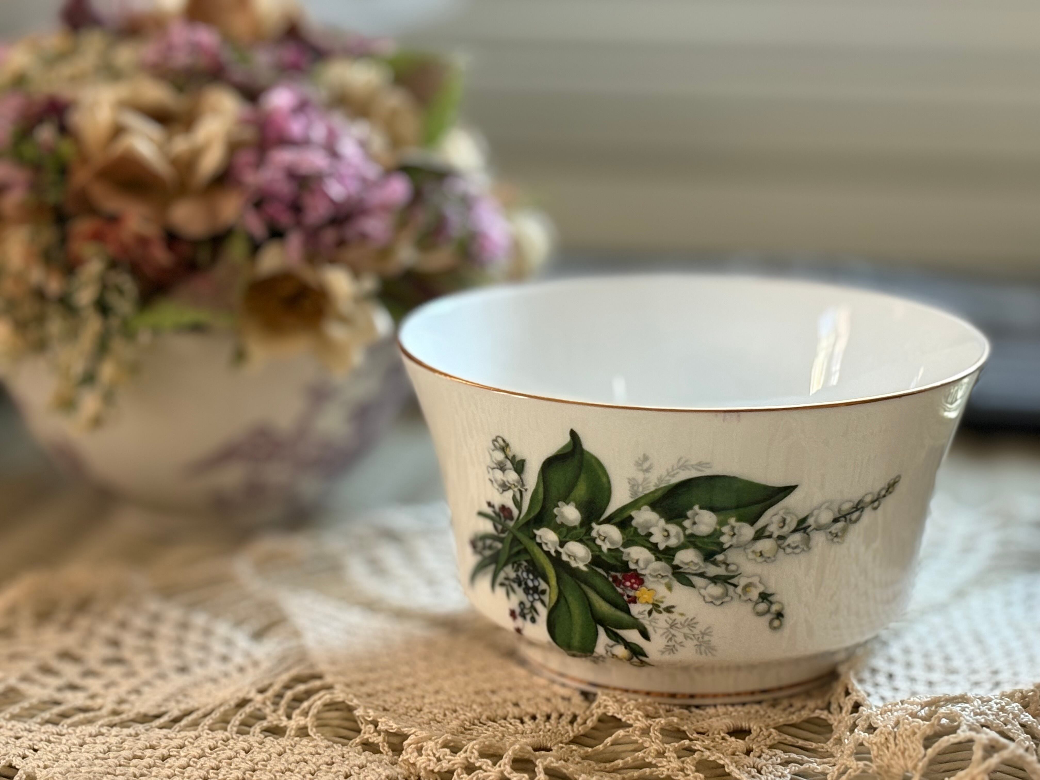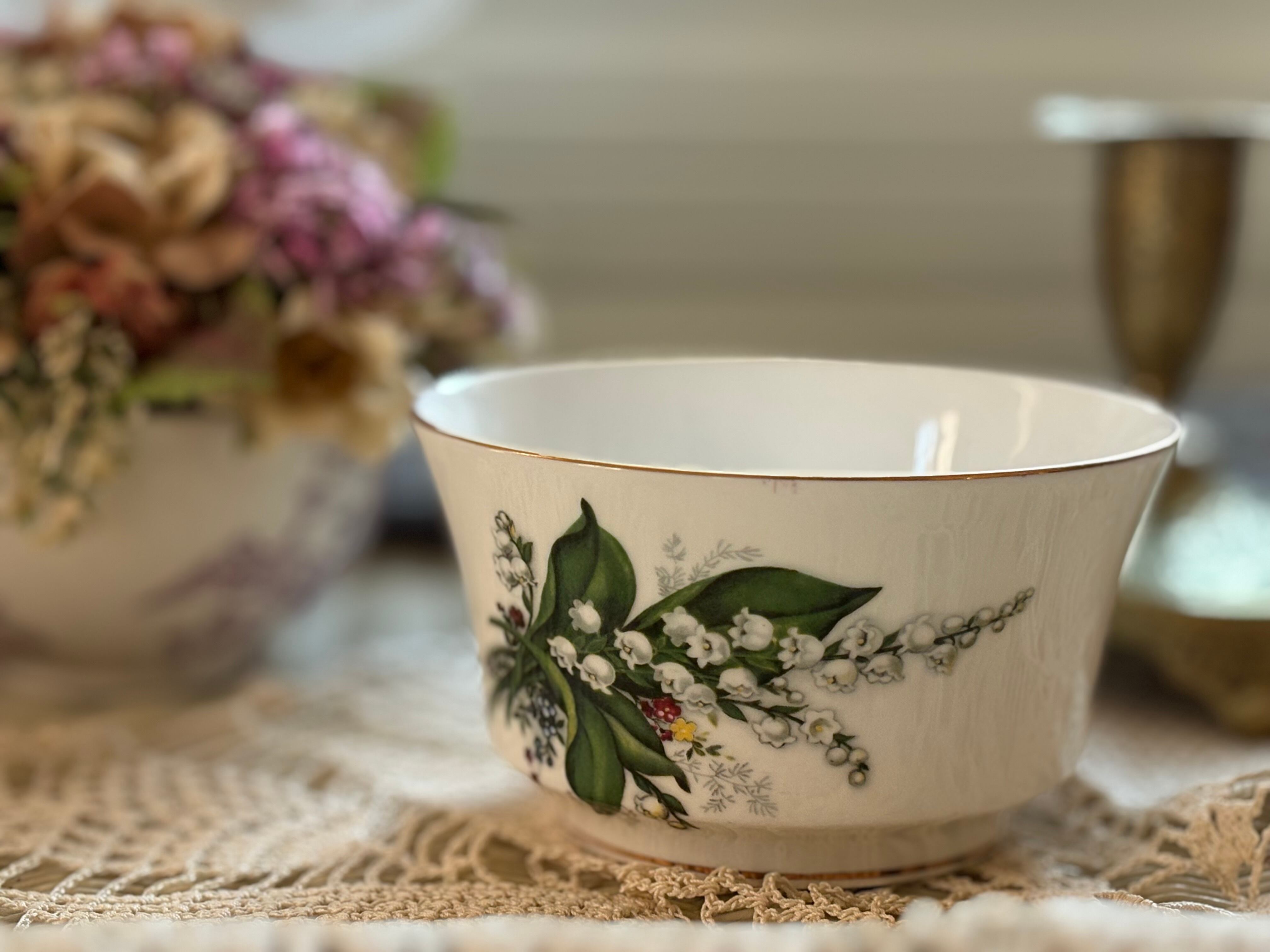 英国Vintage Muguet すずらん シュガーボウル 金彩 フラワーベース インテリア 小物入れ ディスプレイ 撮影小物