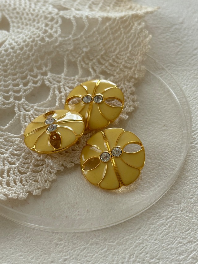 22mm Japanese ヴィンテージボタン メタルボタン イエロー×ゴールド ストーン アクセサリーパーツ 装飾材