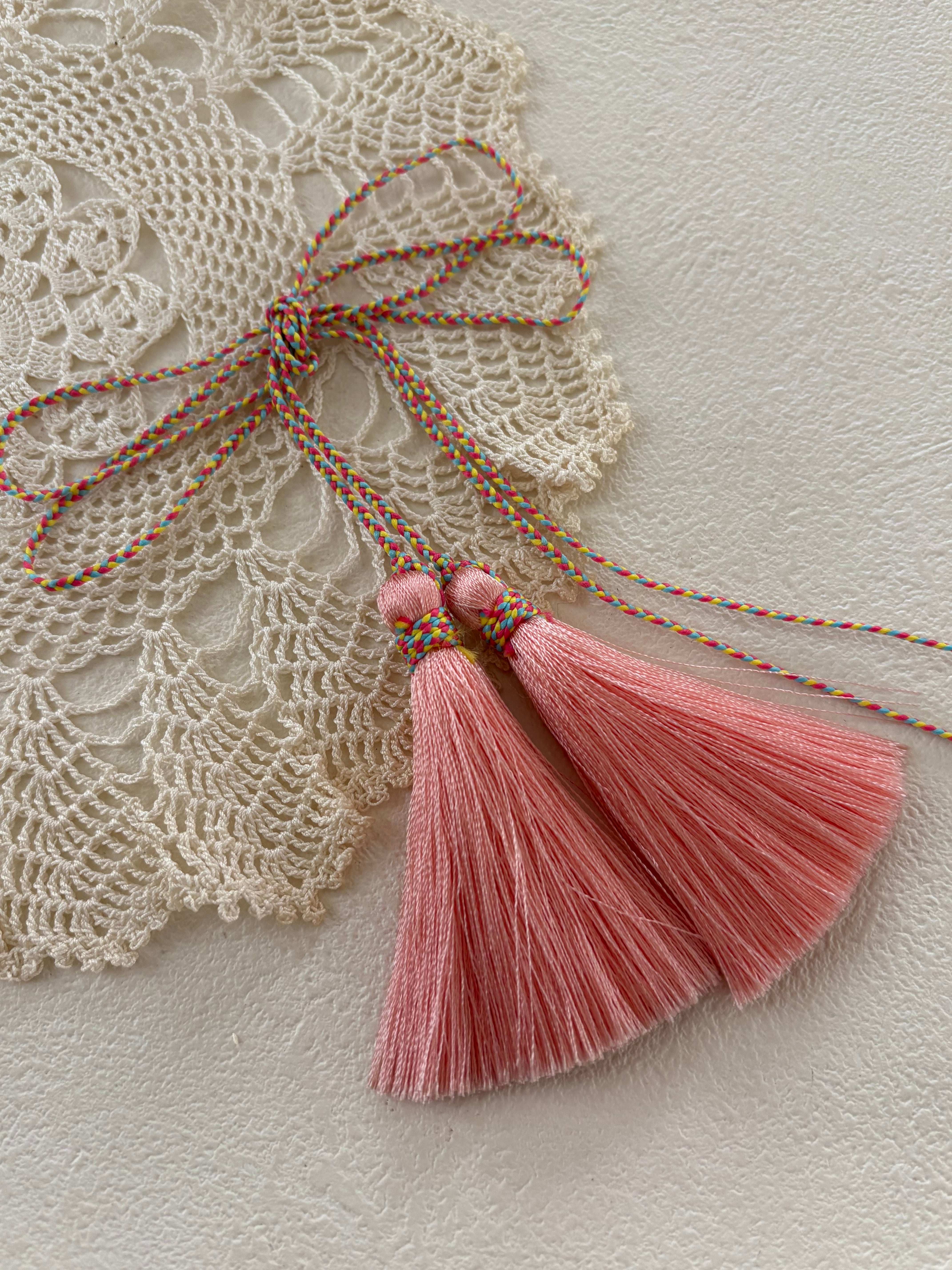 鮮やかで目をひく可愛いピンク色おnタッセル。