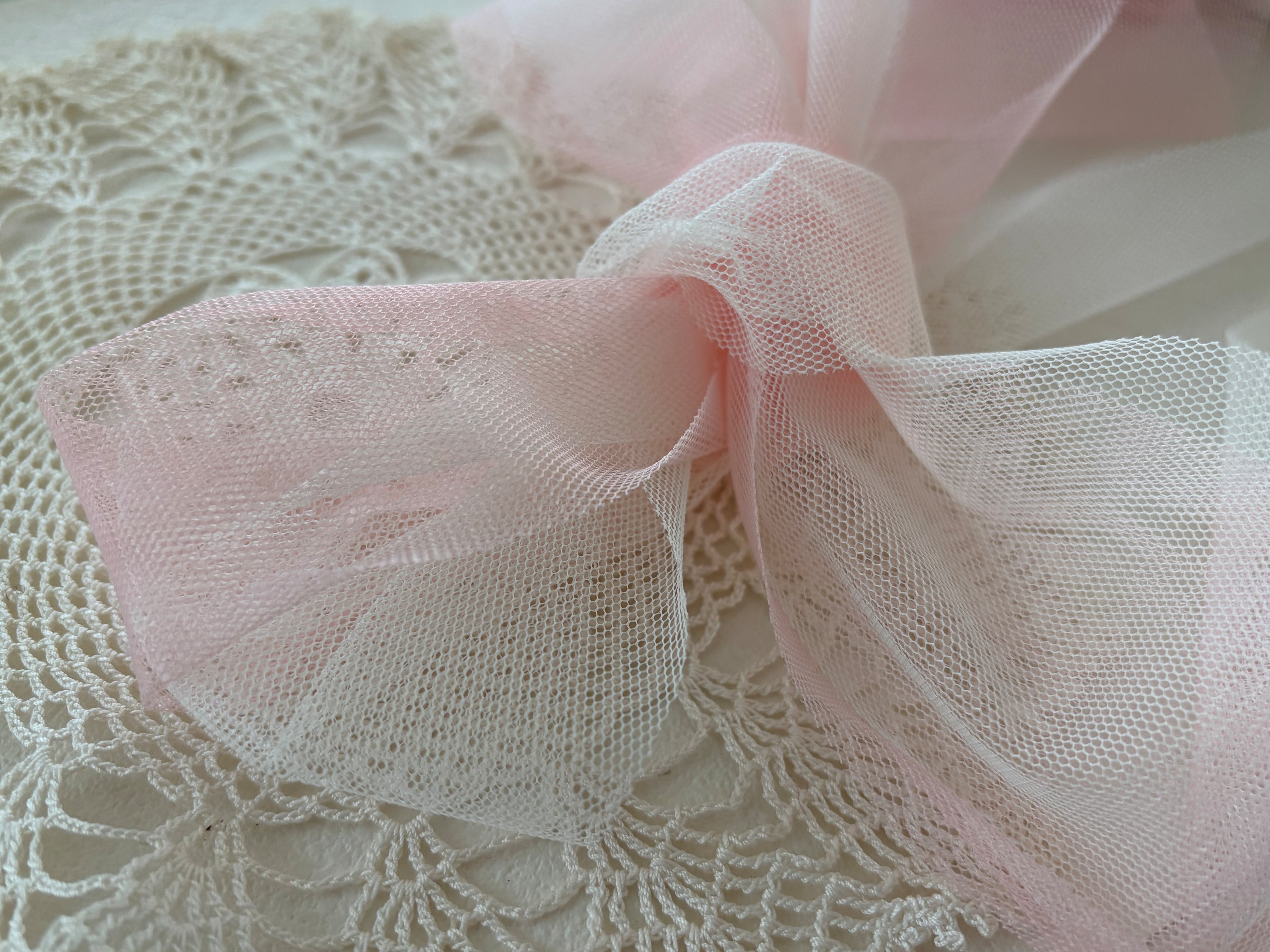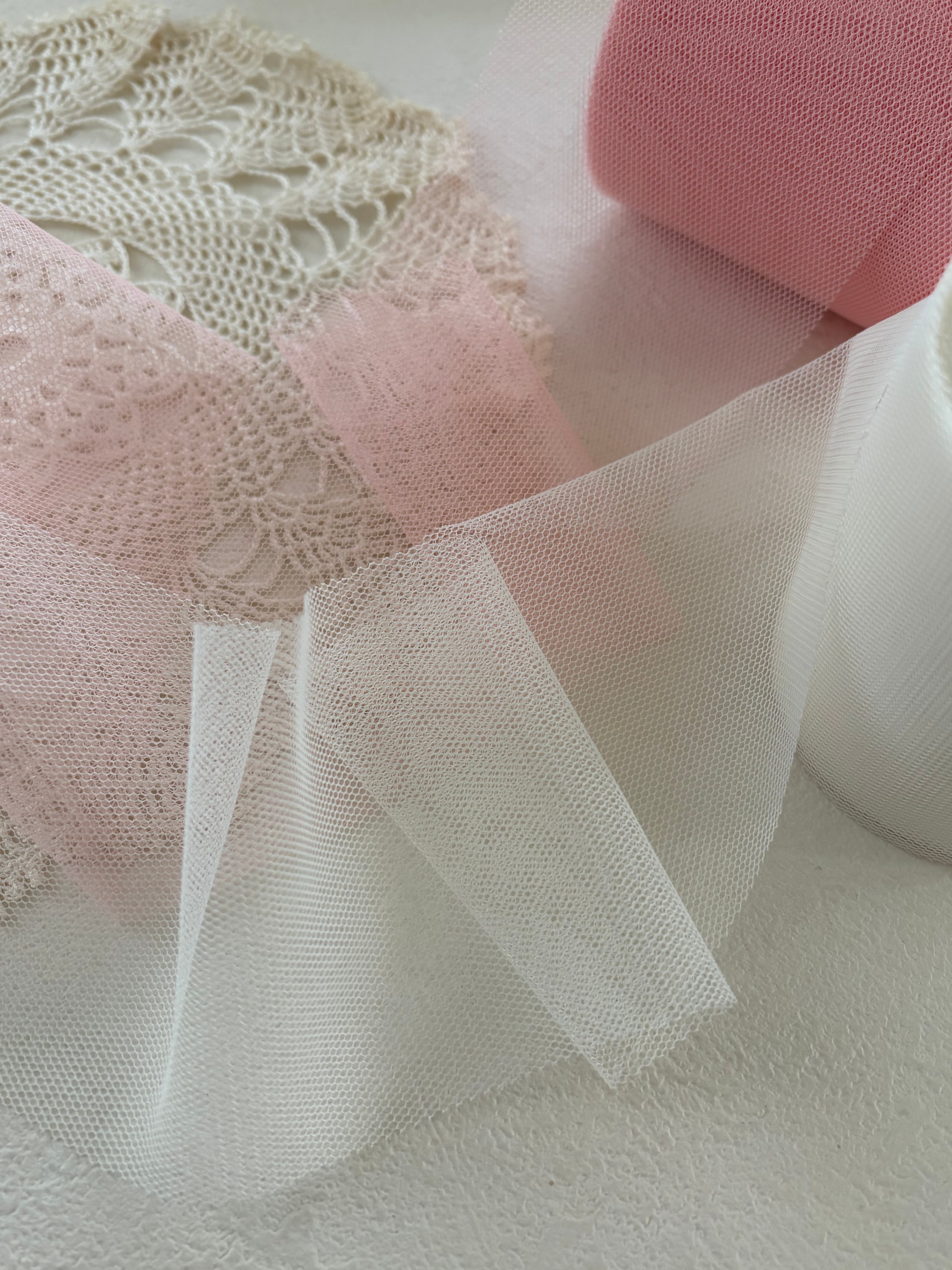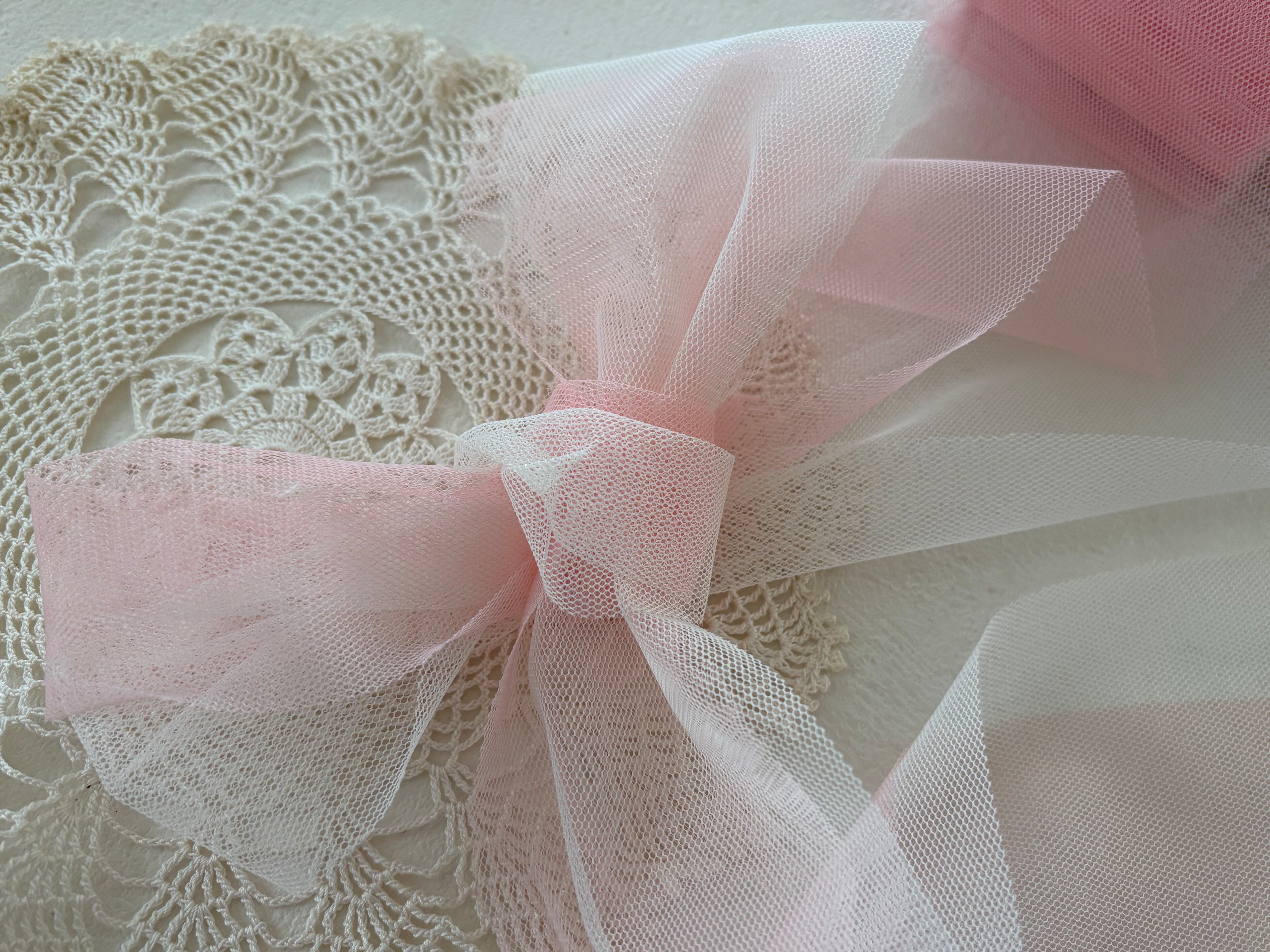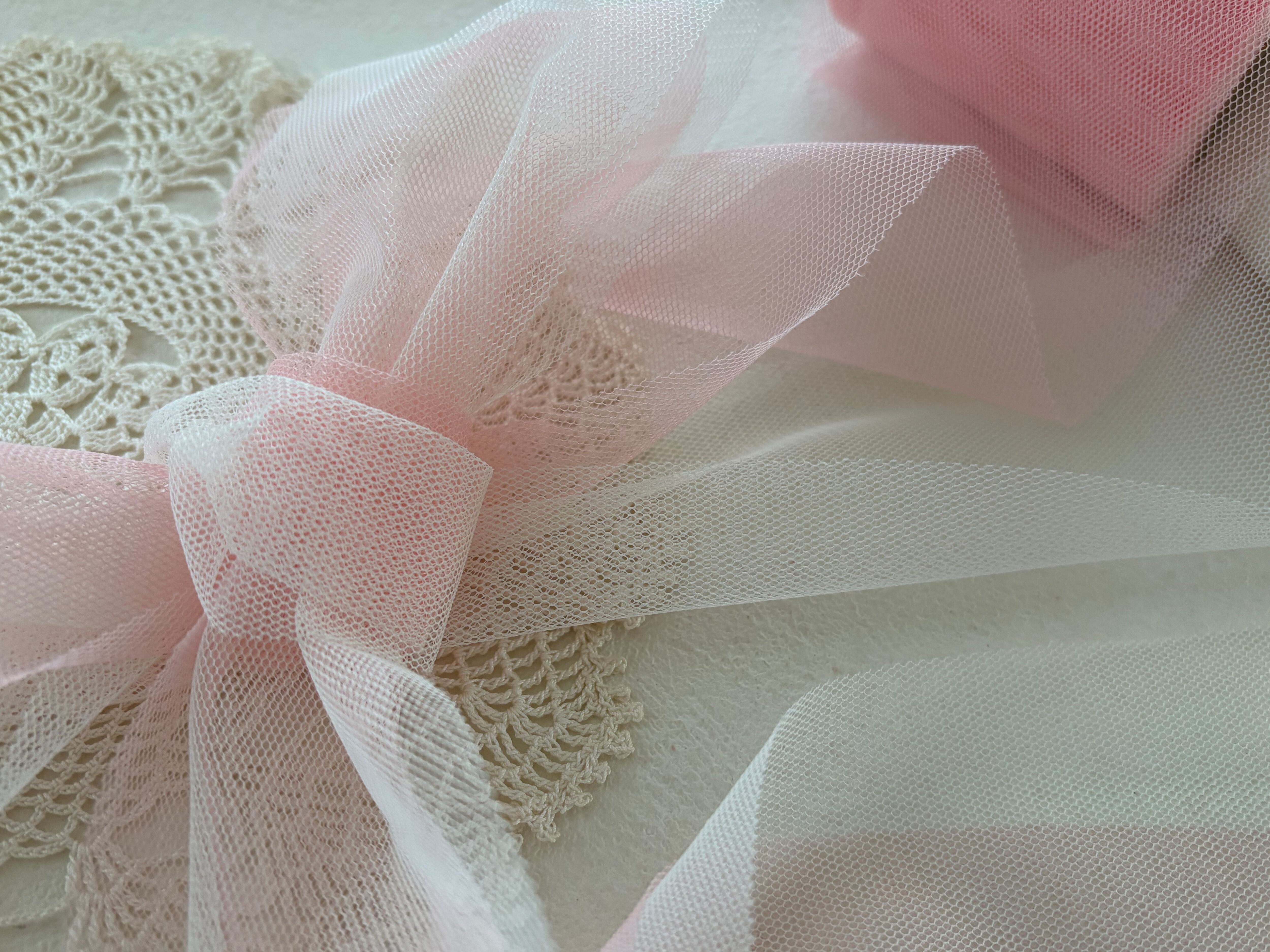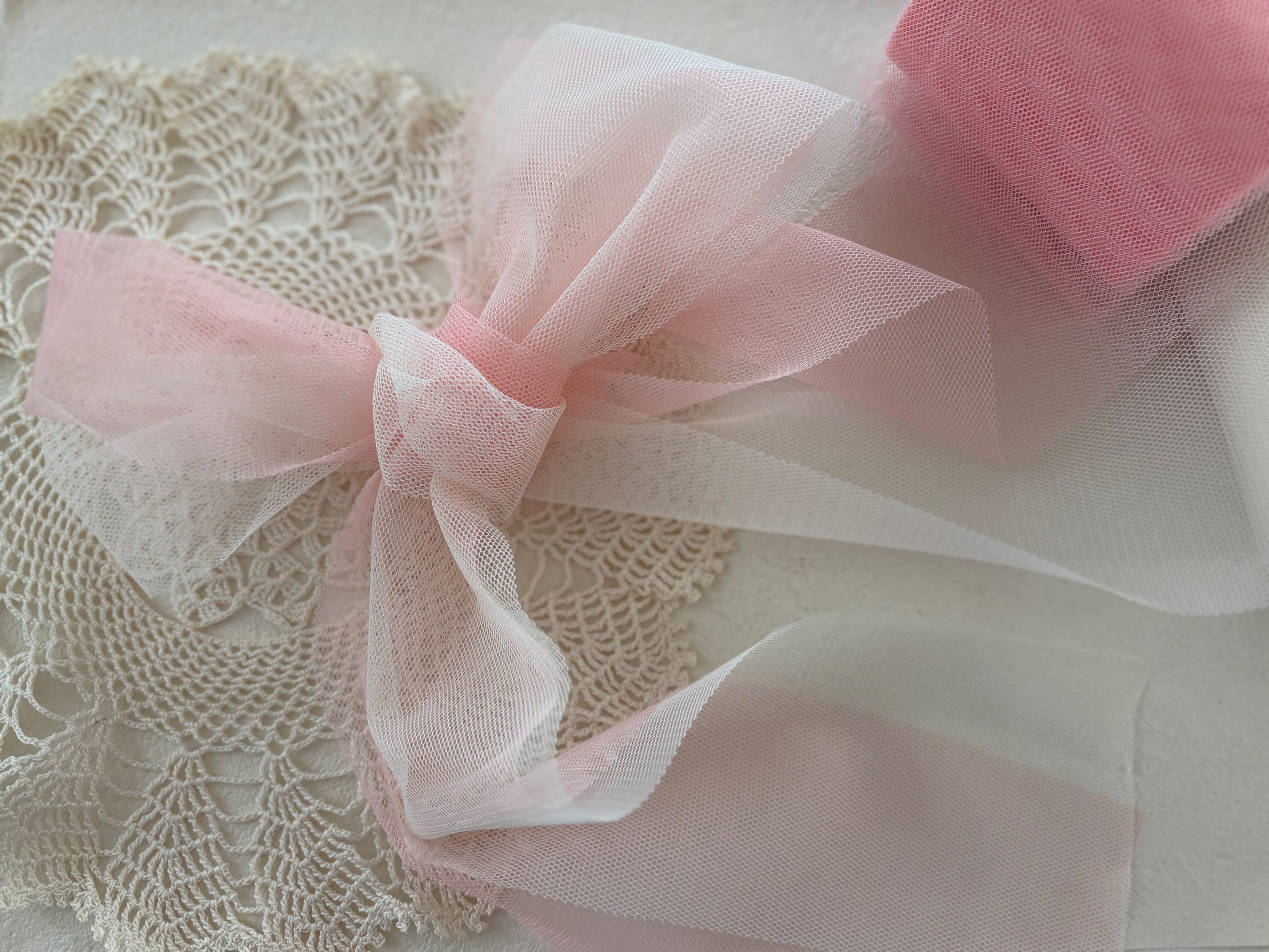 ロマンチックなアイボリーとピンクカラーのチュールリボンになります。