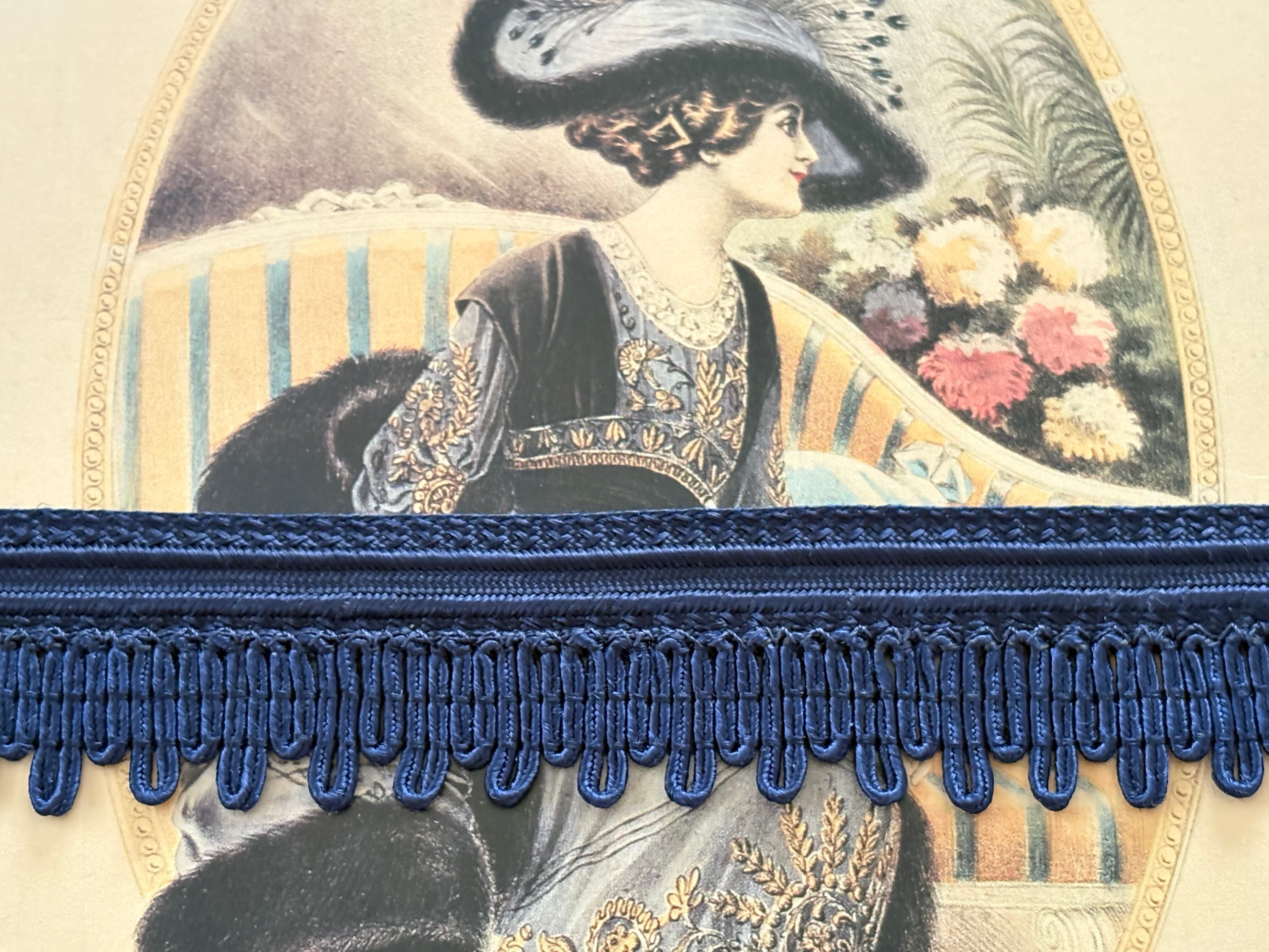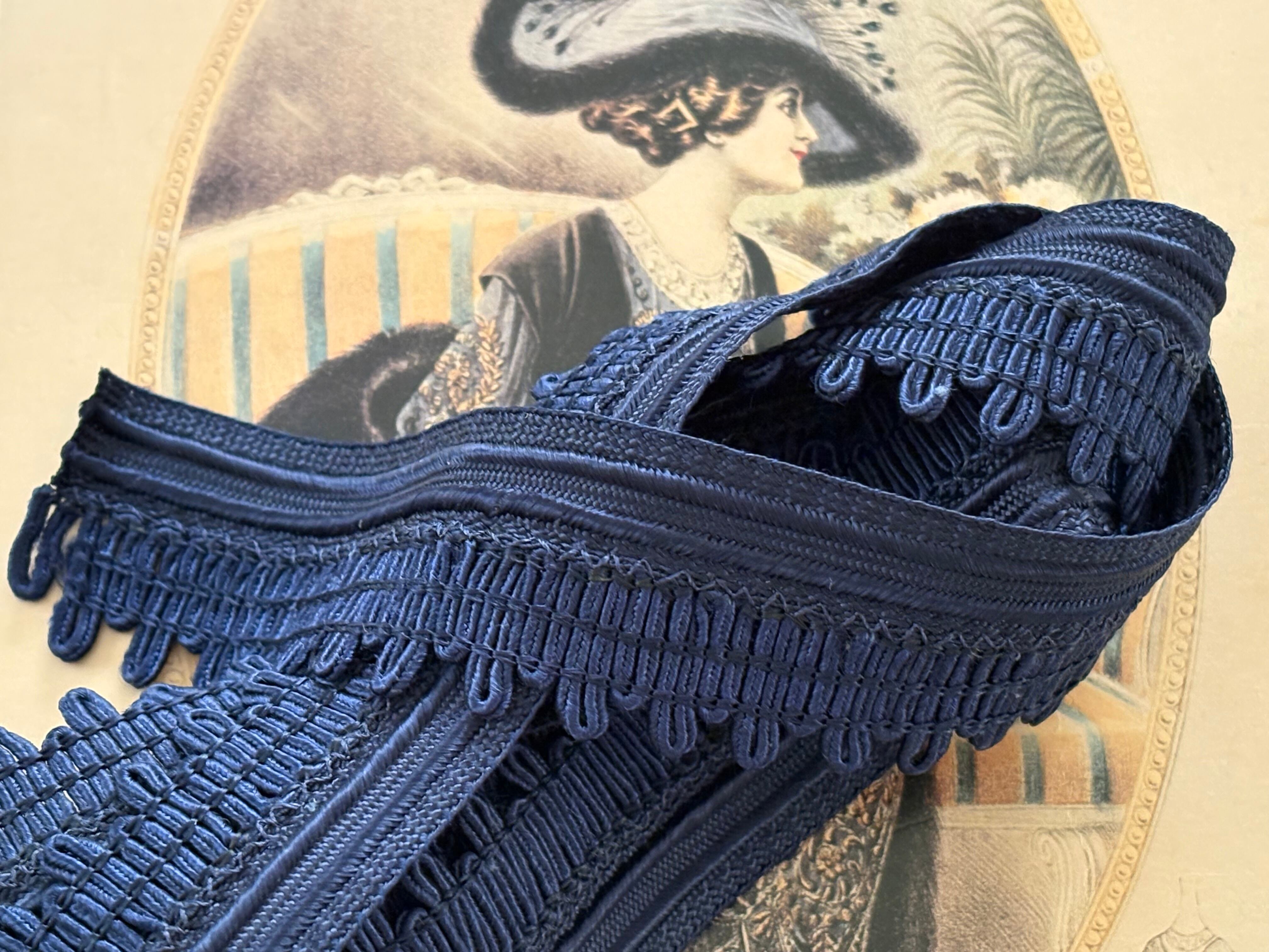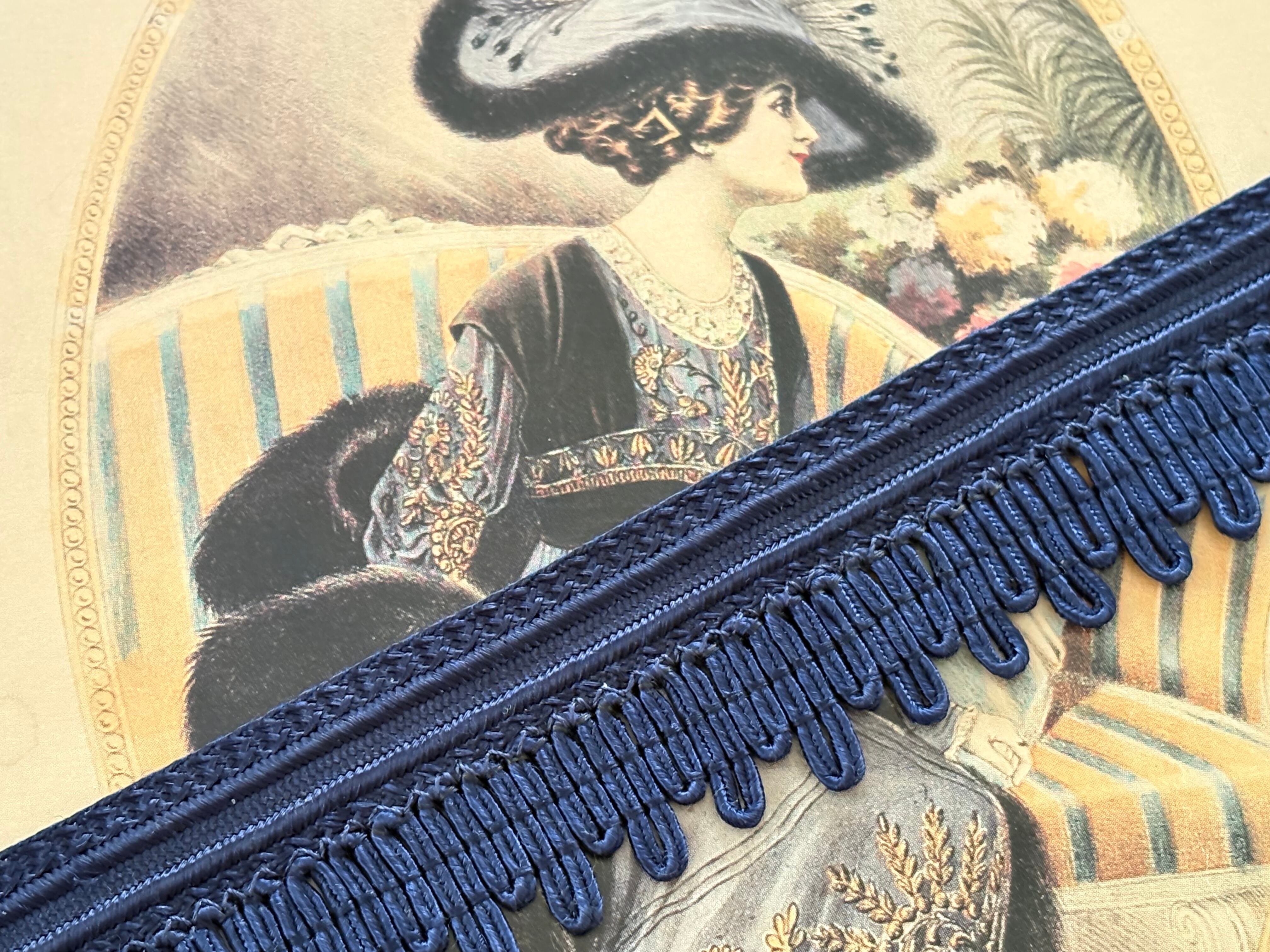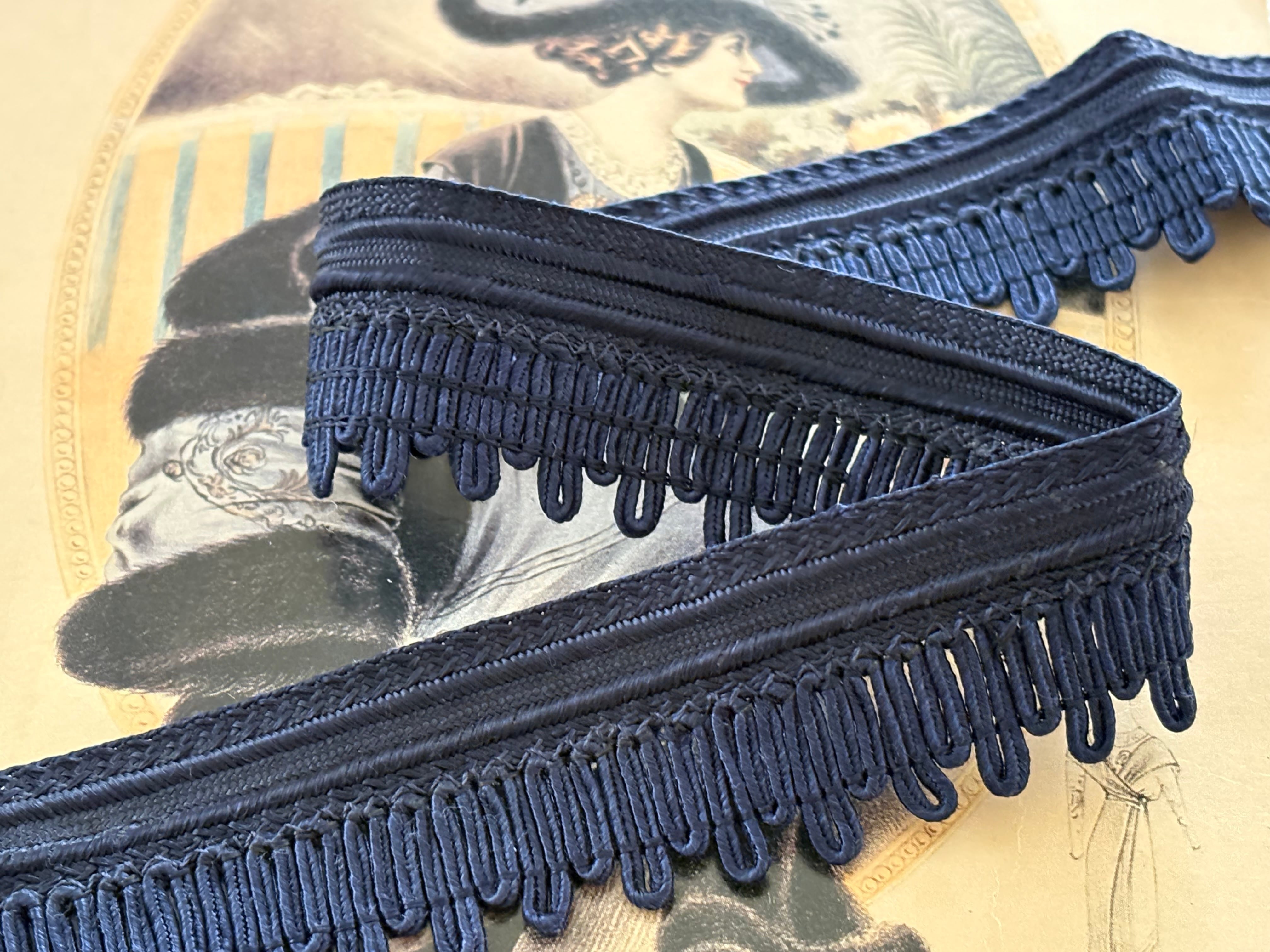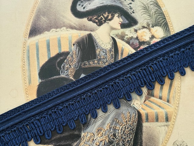 フランスVintage カットブレード フリンジブレード 最大幅3cm 100cmカット ネイビー カルトナージュ デコレーション材