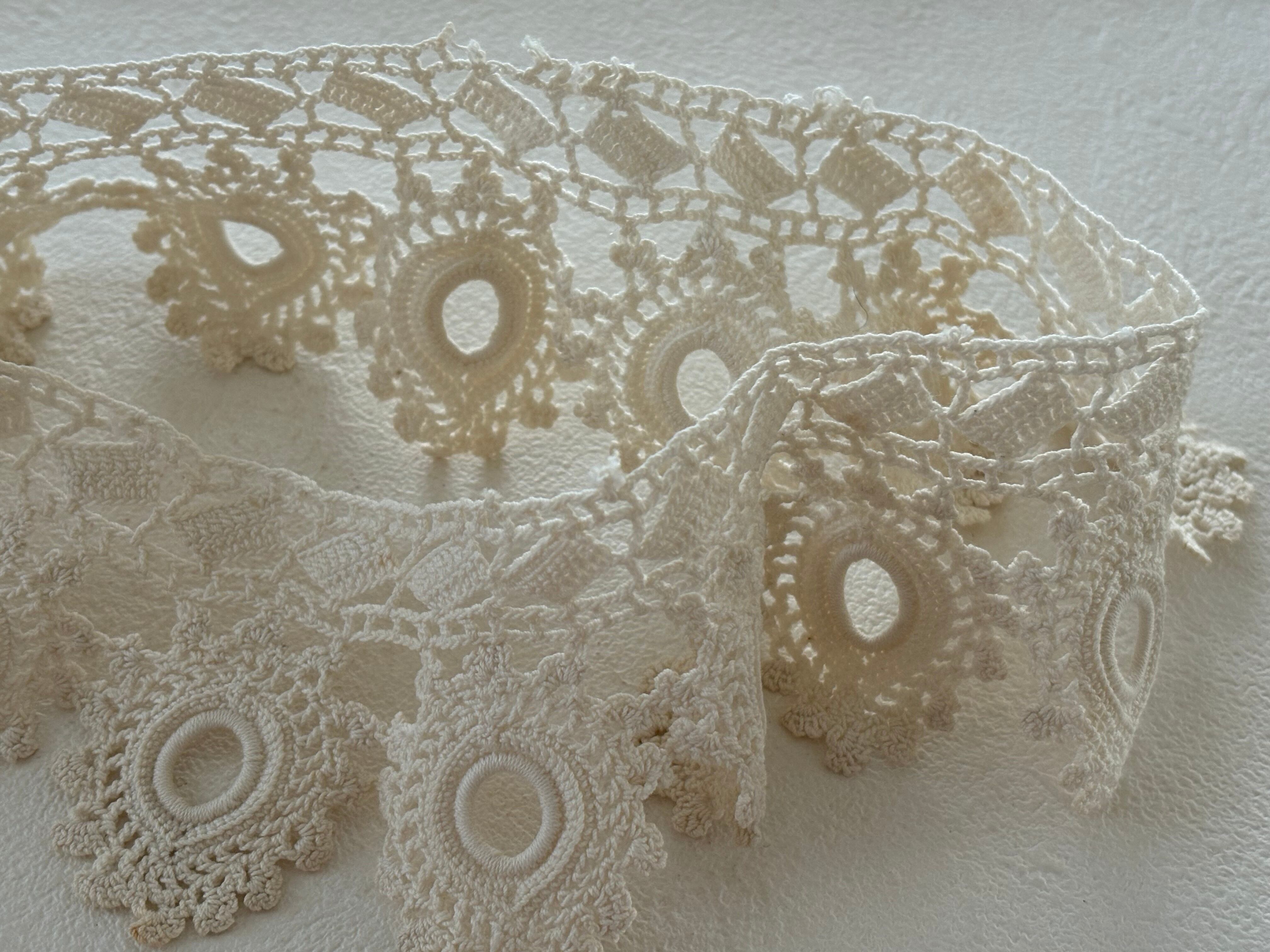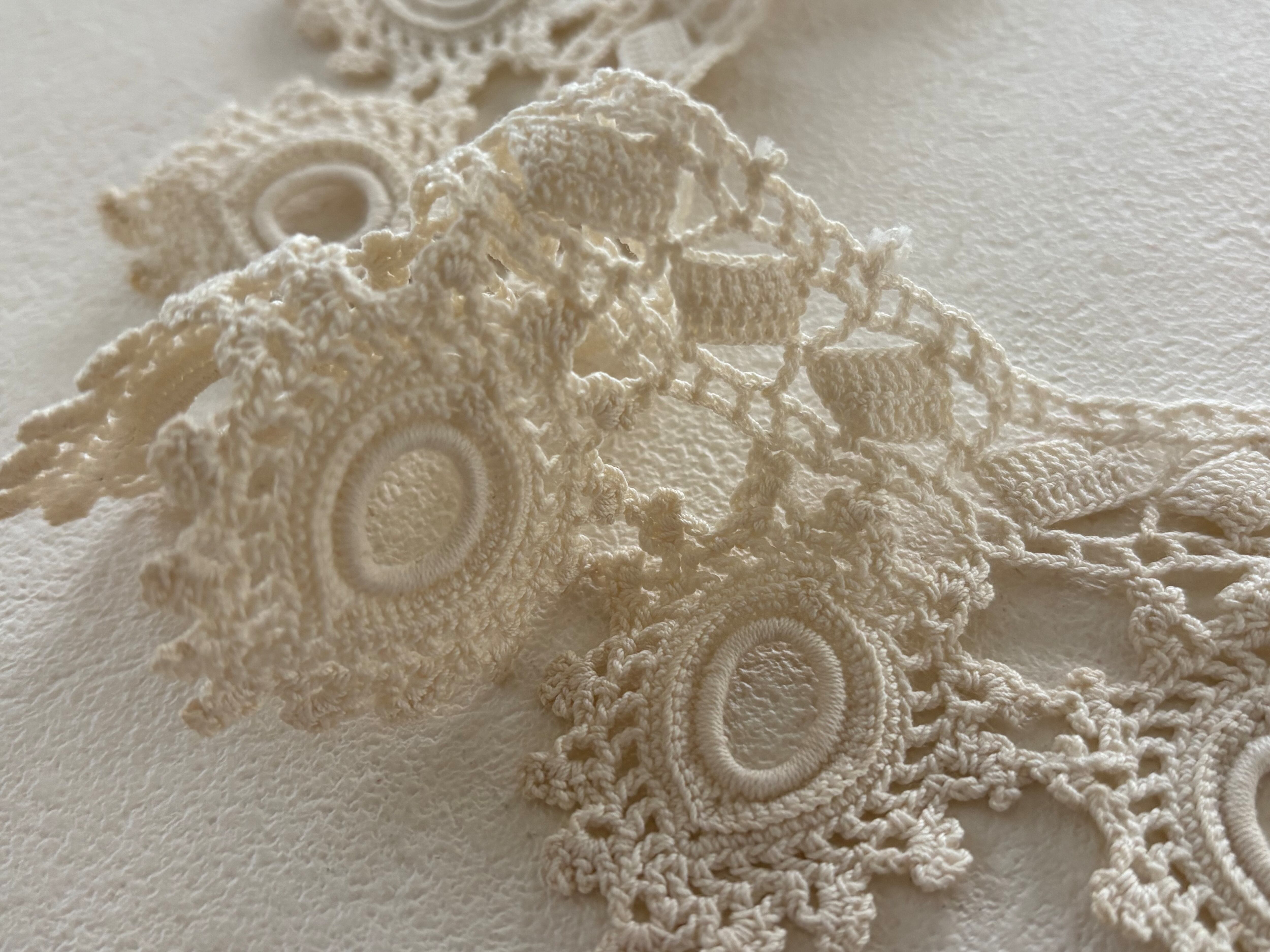 最大幅60mmと存在感のあるサイズ、時を経た味わい深い風合いが目をひくレースです。