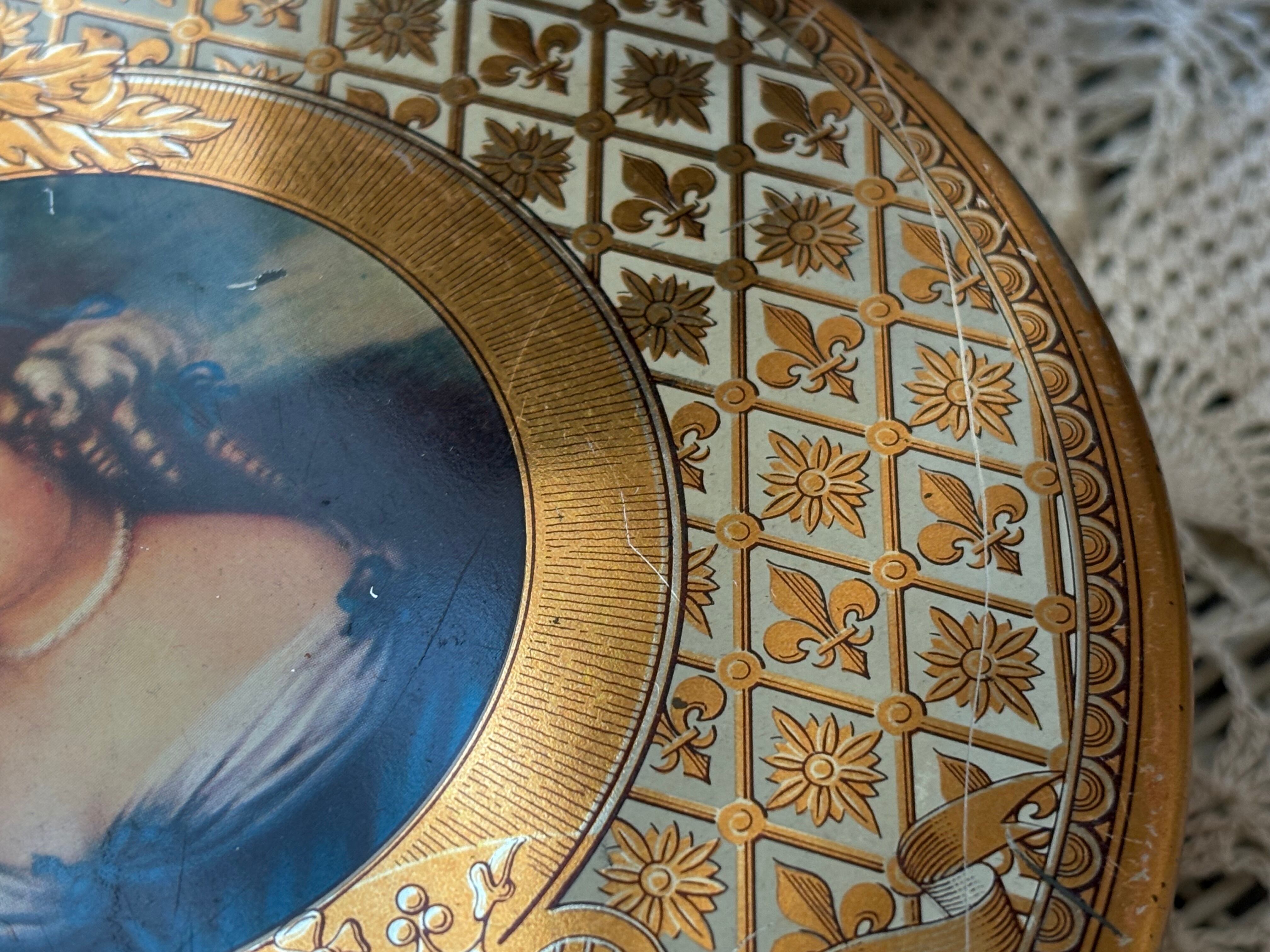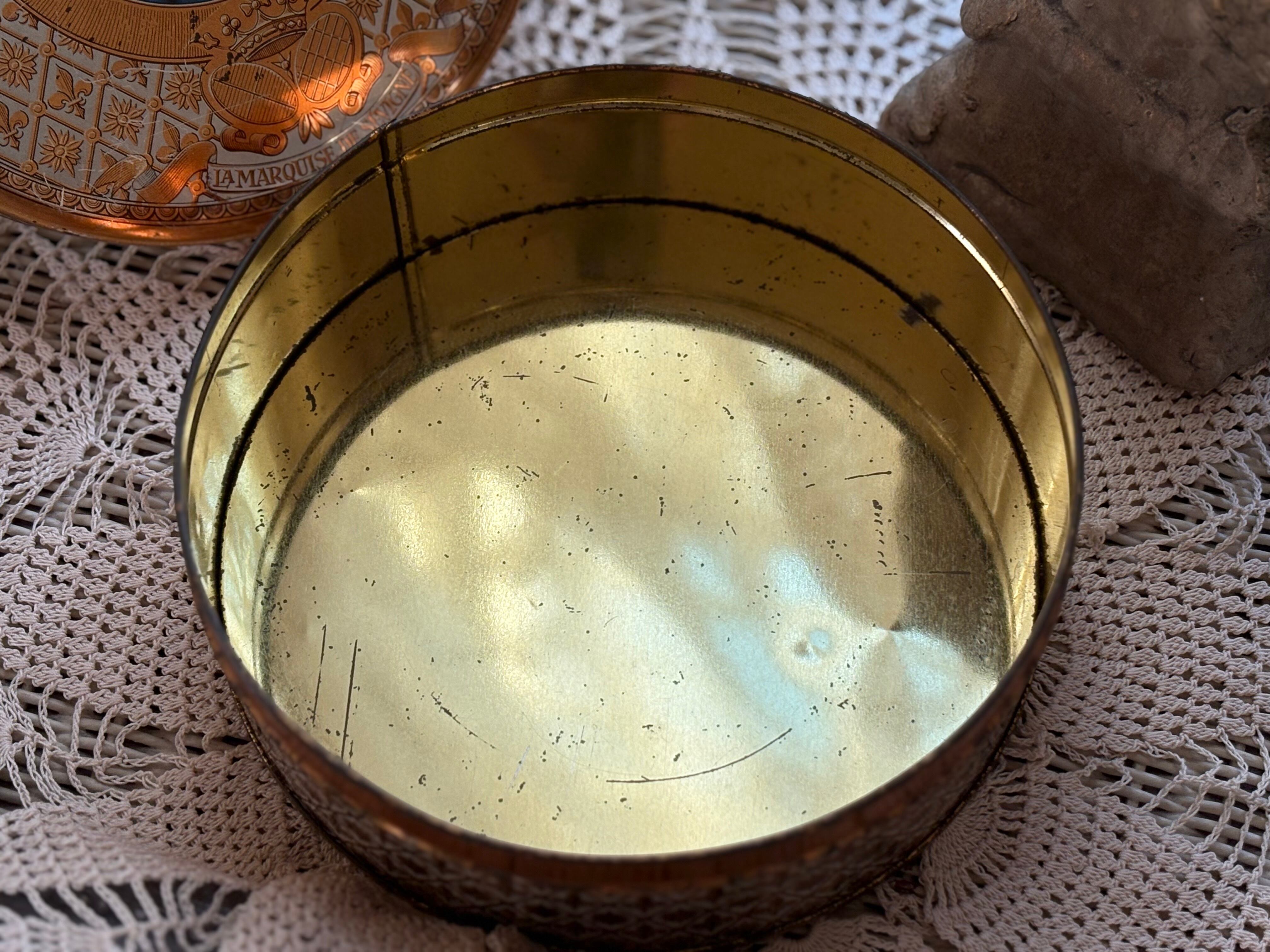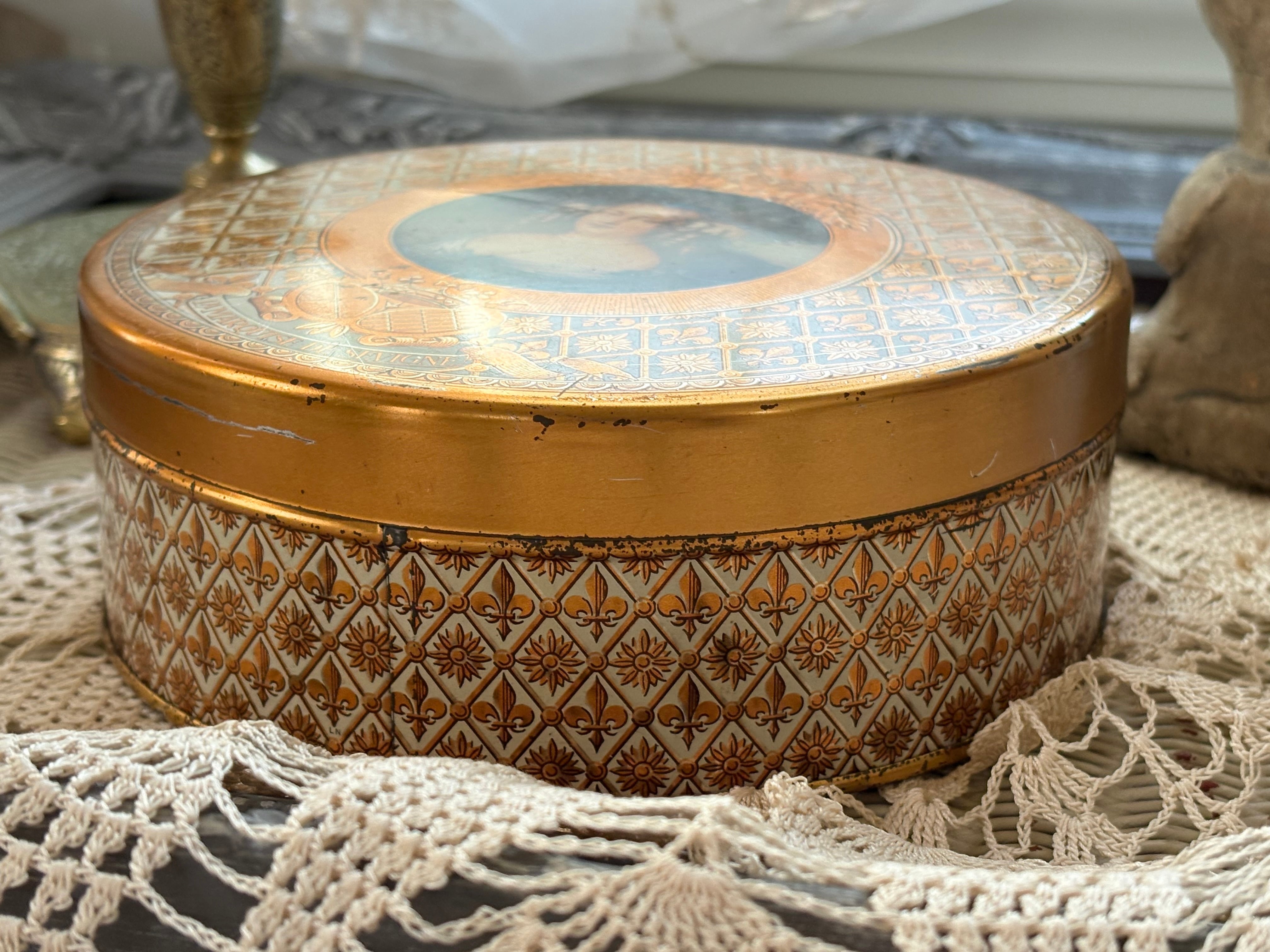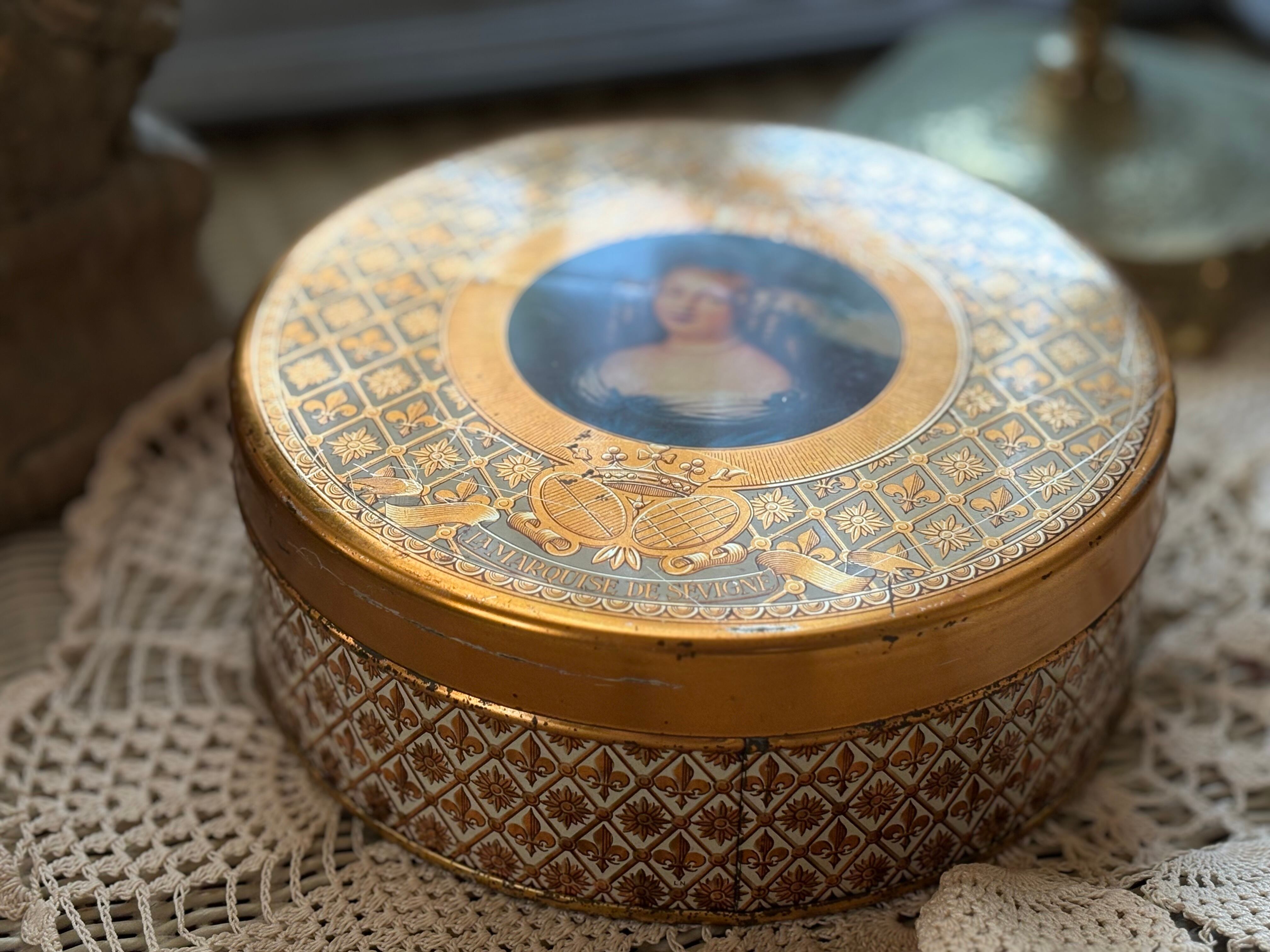 フランス Vintage トフィー缶 マルキーズ・ドゥ・セヴィニエ Marquise de Sevigne フラダリ 百合の紋章 インテリア 撮影小物