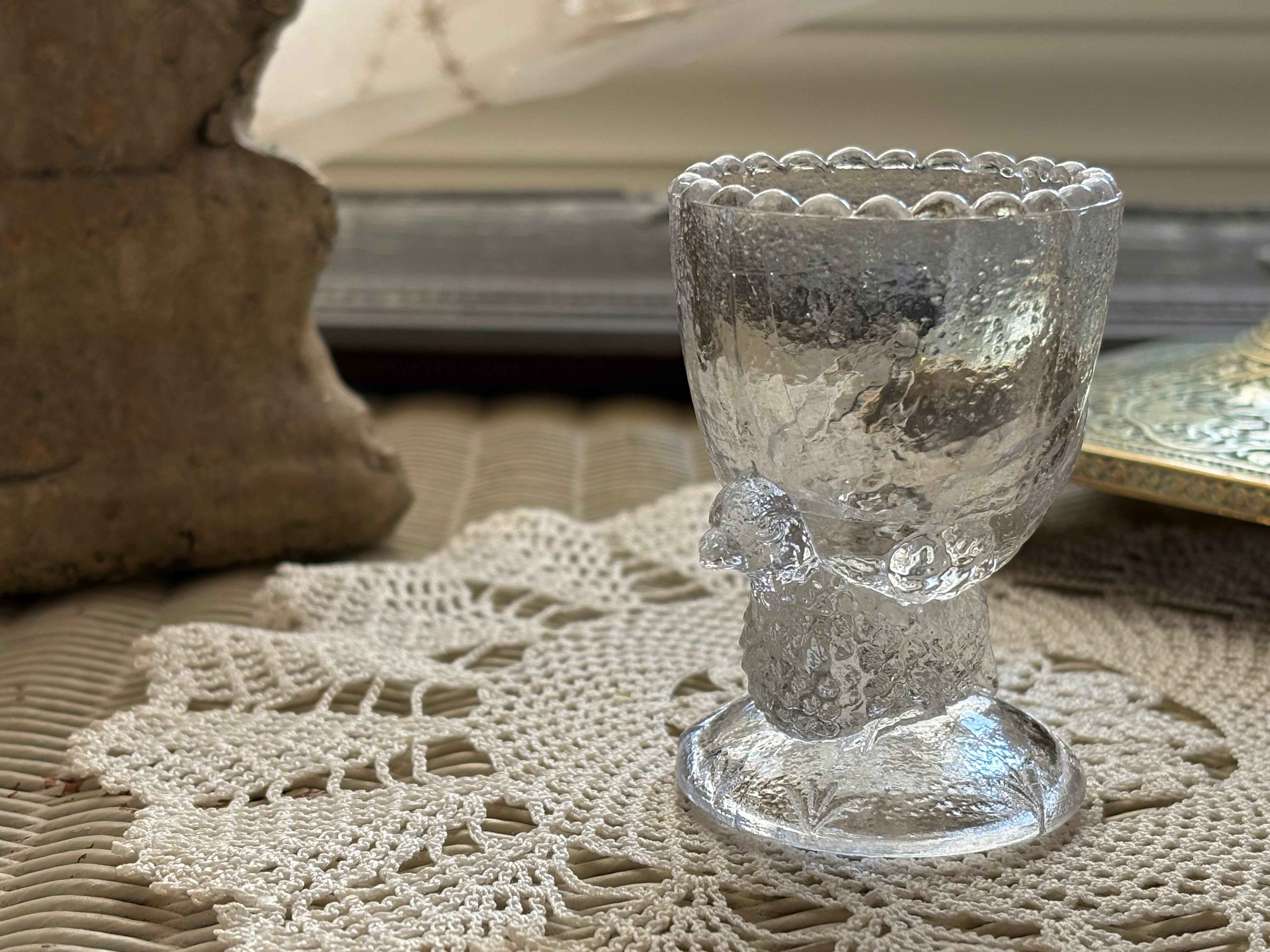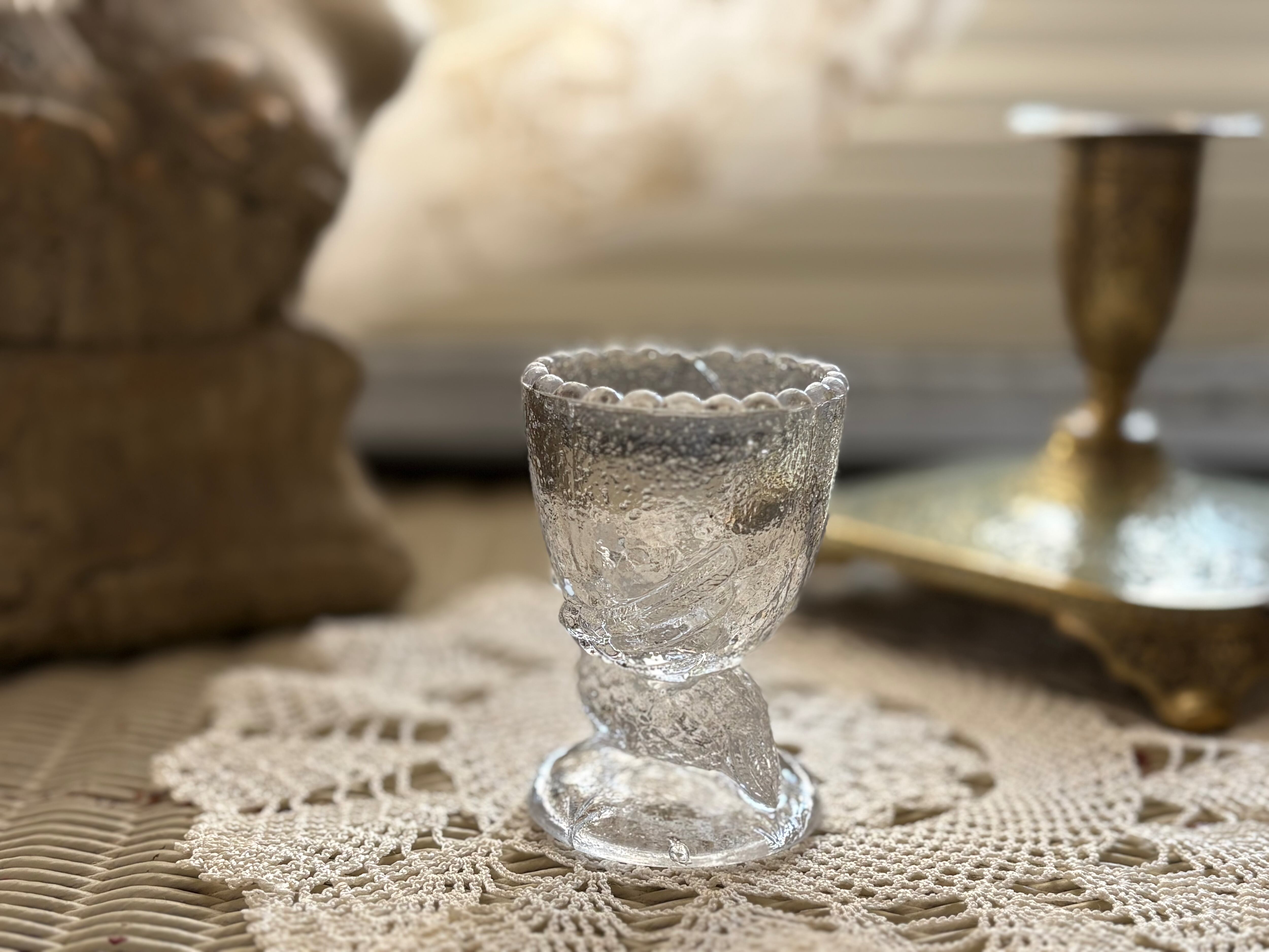 古いガラスのエッグスタンドになります。