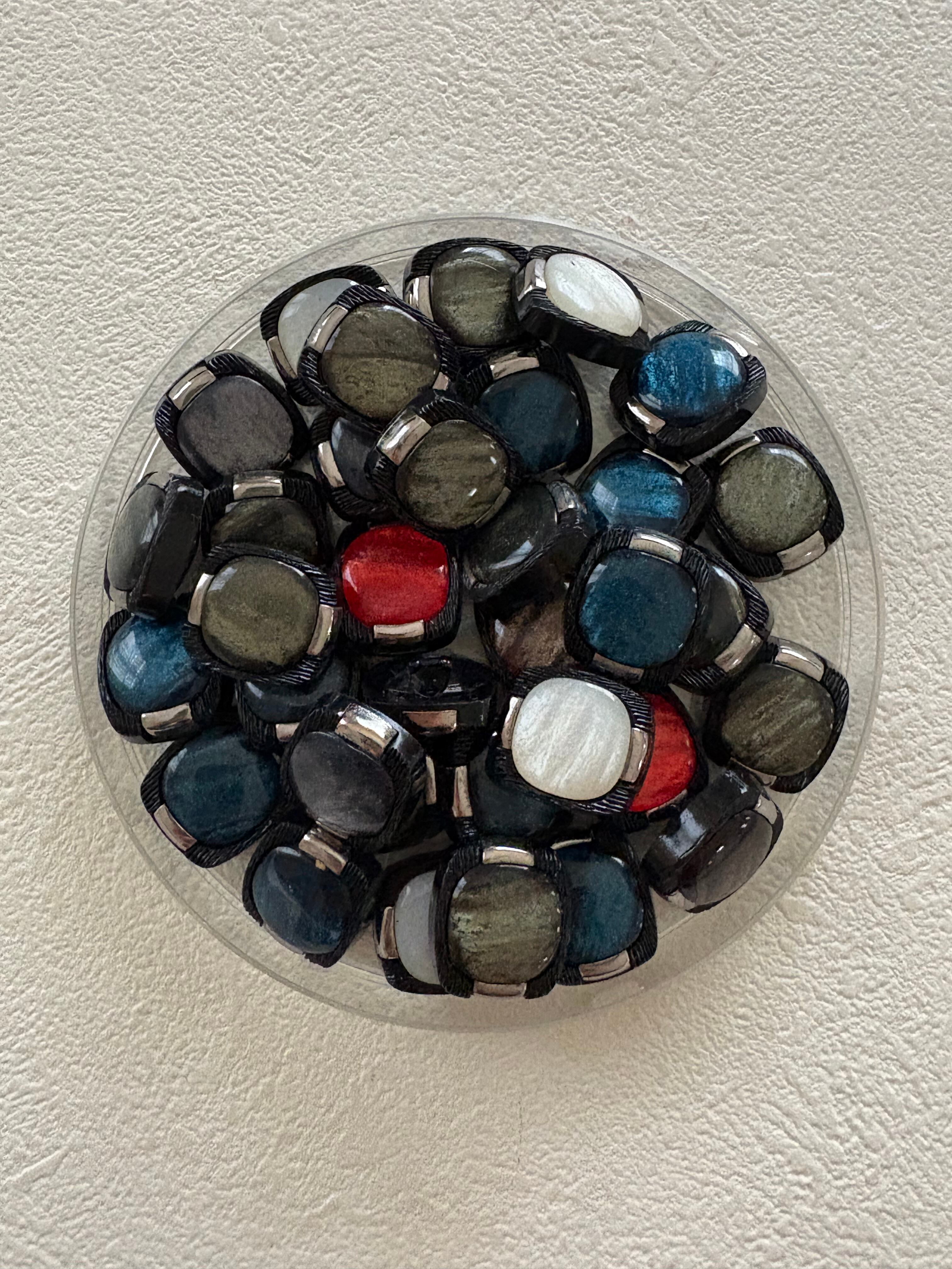 16mm×14mm Japanese ヴィンテージボタン プラスチック×カボション マーブル調 アクセサリーパーツ