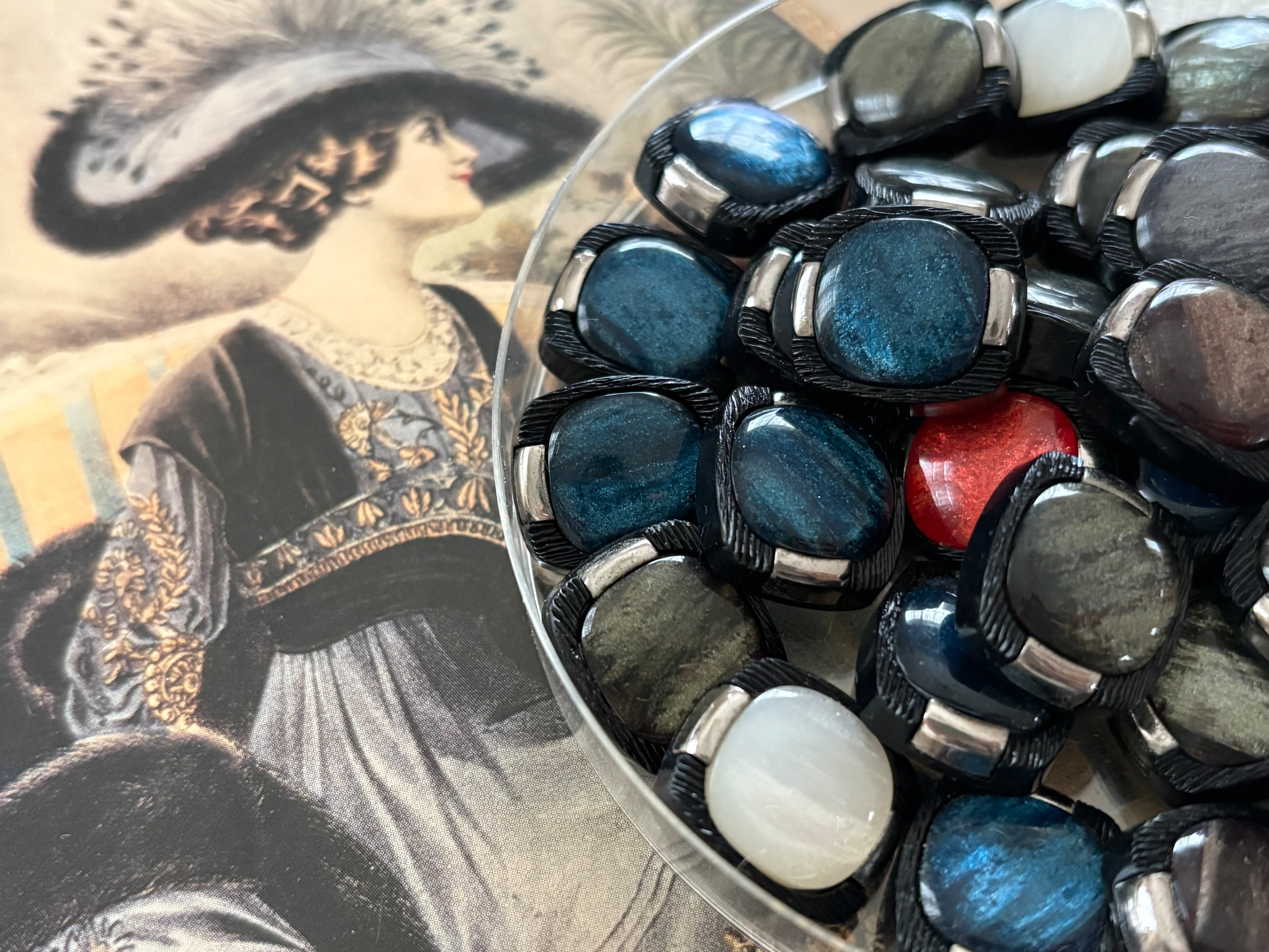 飾りボタンとしては勿論のことアクセサリーパーツとして、カルトナージュのデコレーション材になど様々な用途でお役立て下さいませ。