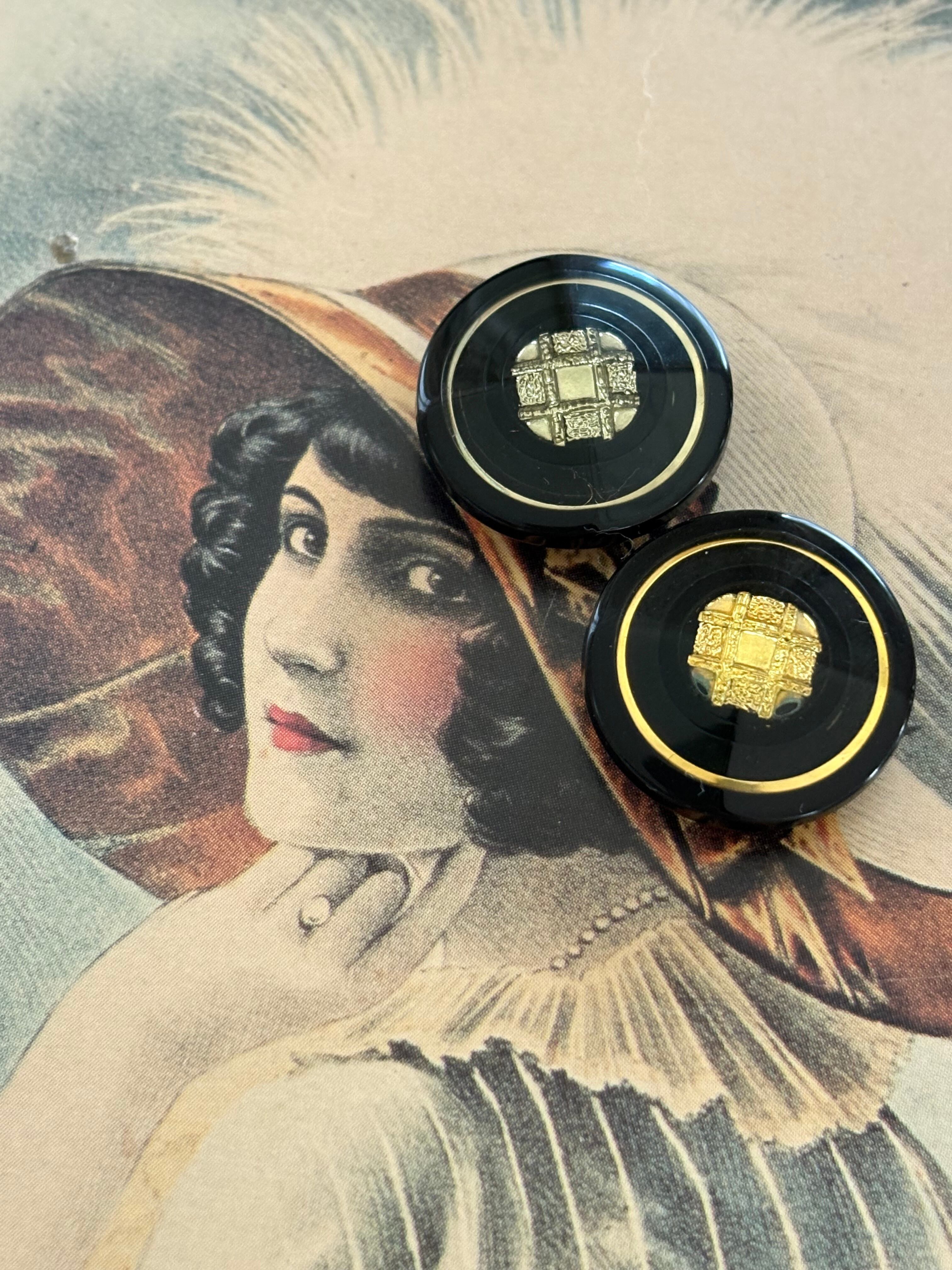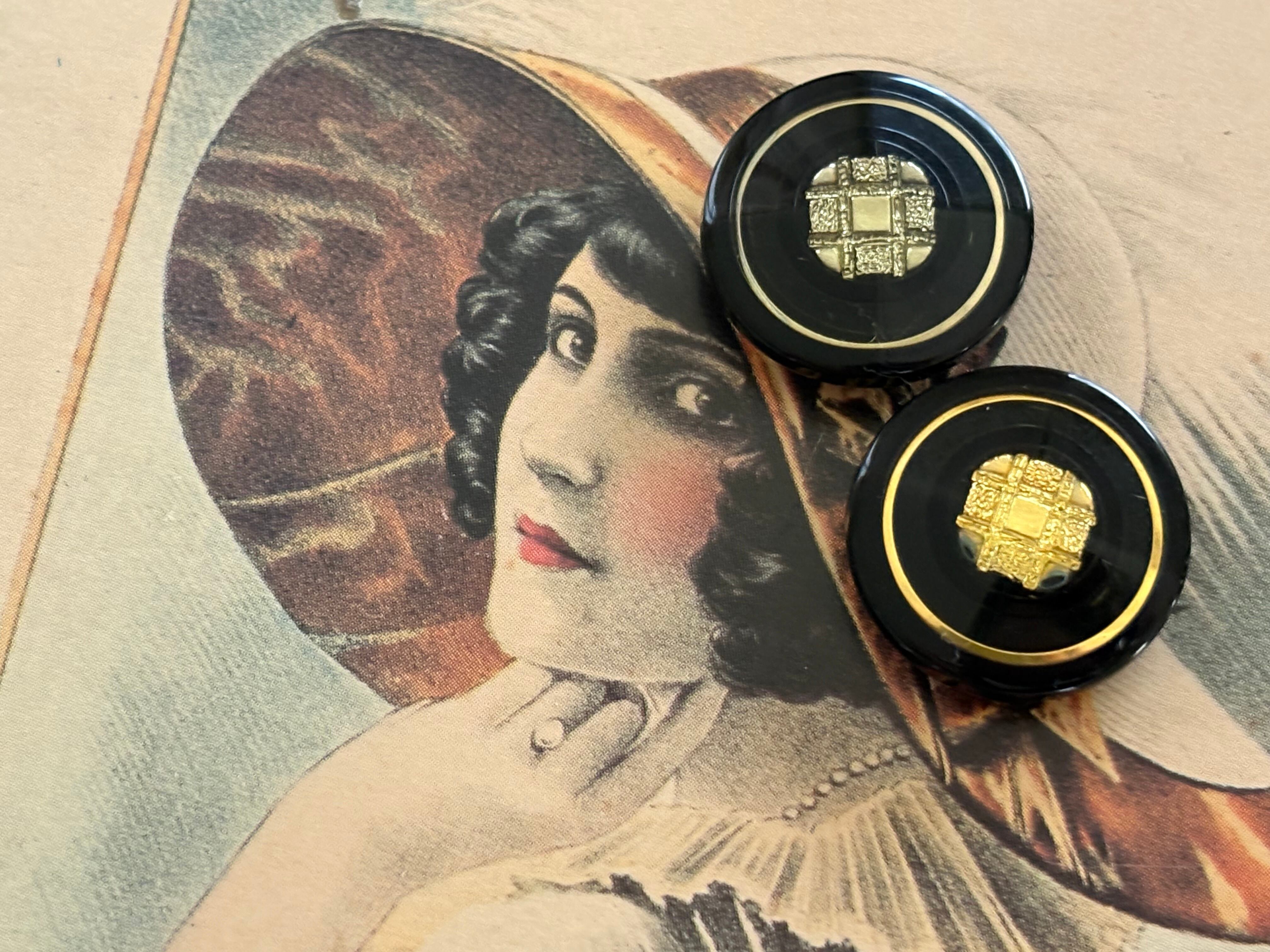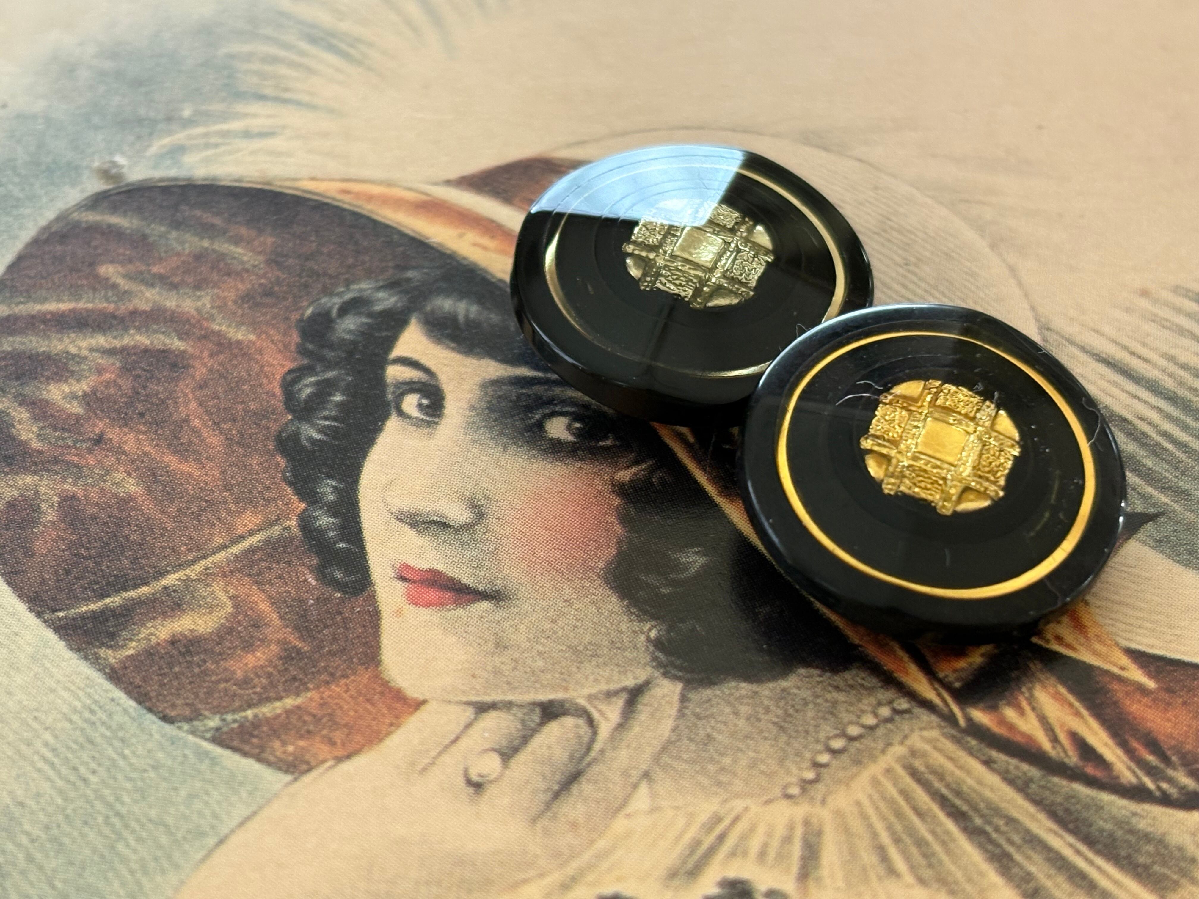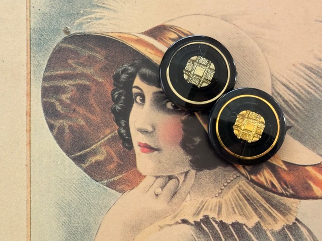 20mm Japaneseヴィンテージボタン レトロ ブラック×ゴールド/シルバー アクセサリーパーツ デコレーション材 レトロボタン